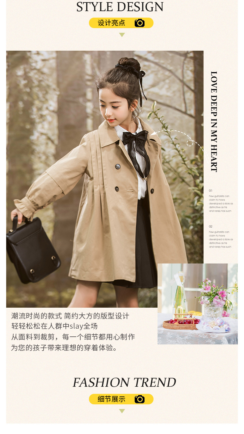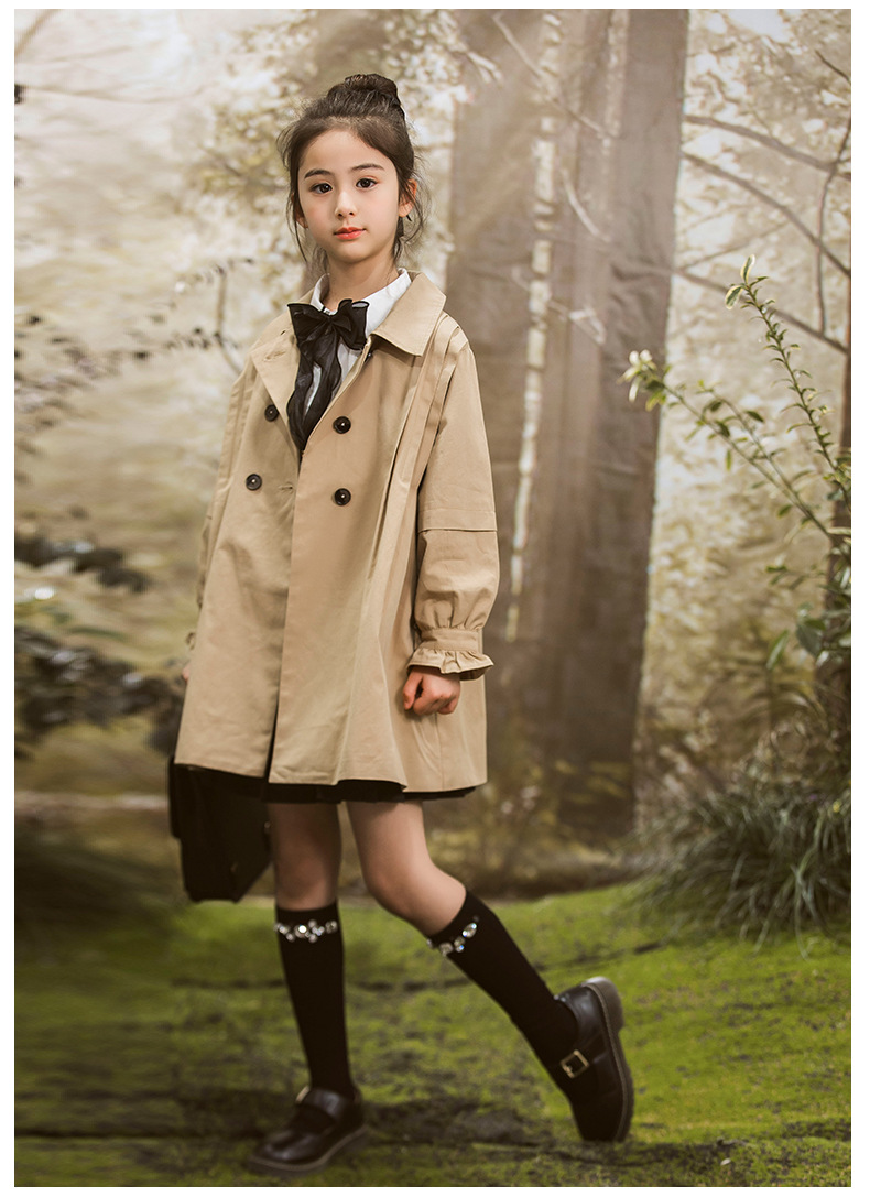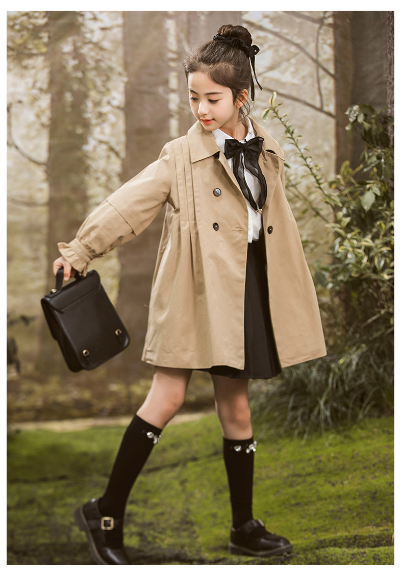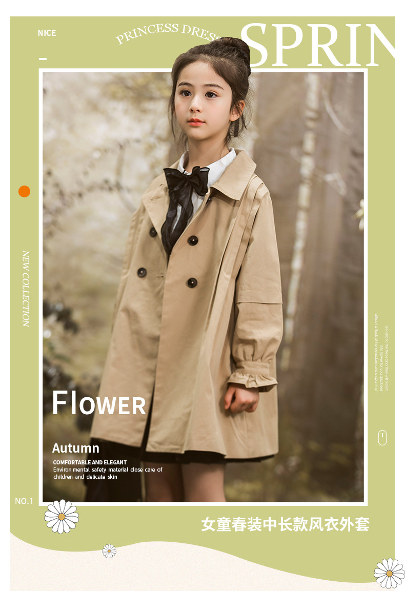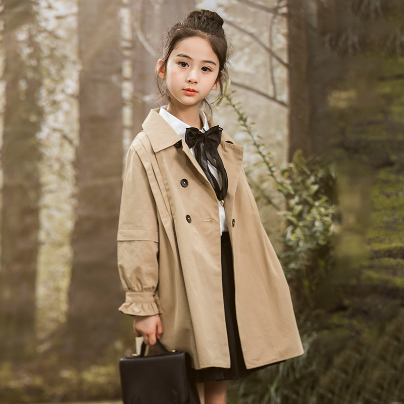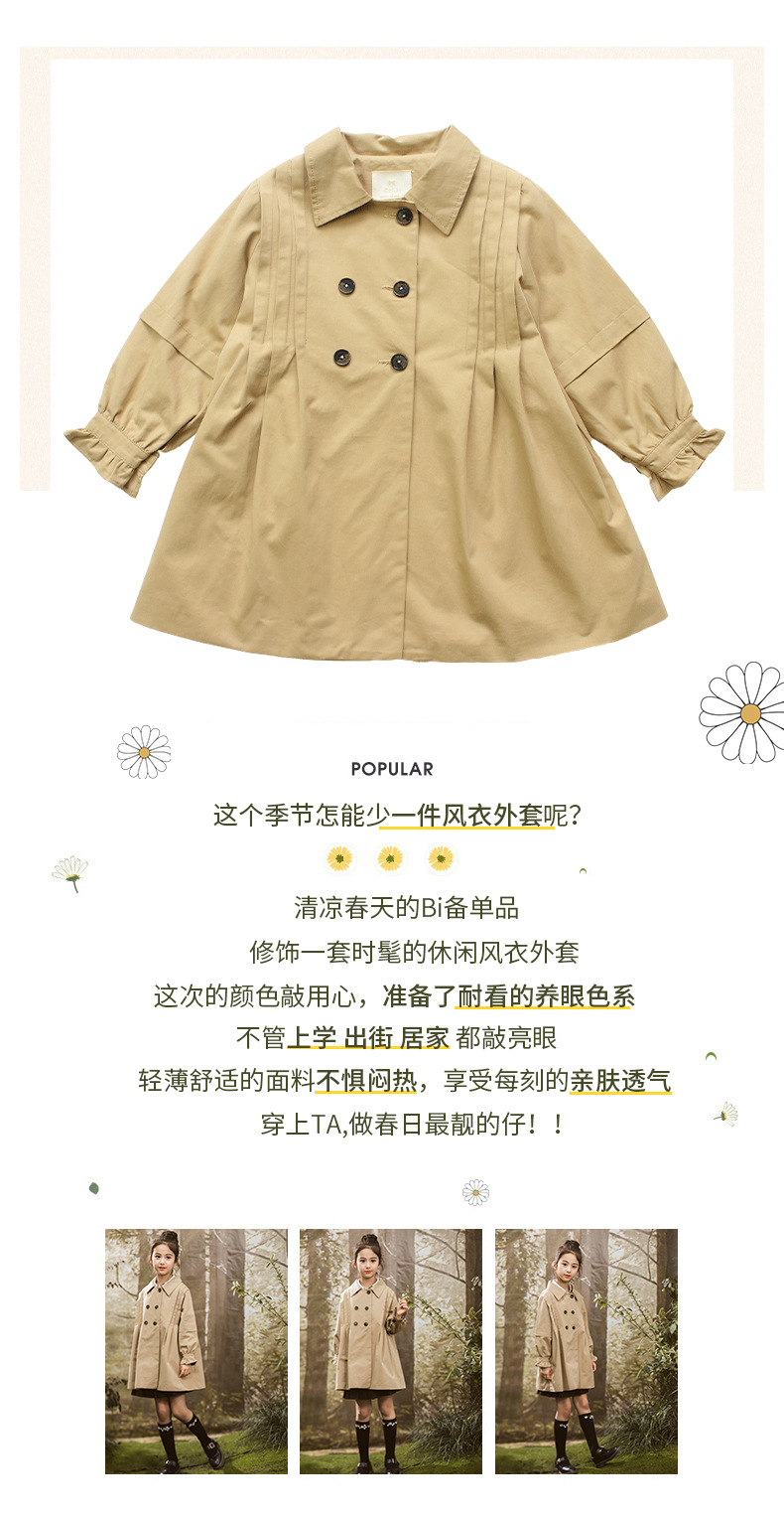 女童风衣外套2024年春秋装新韩版中大童外套女孩中长款儿童风衣