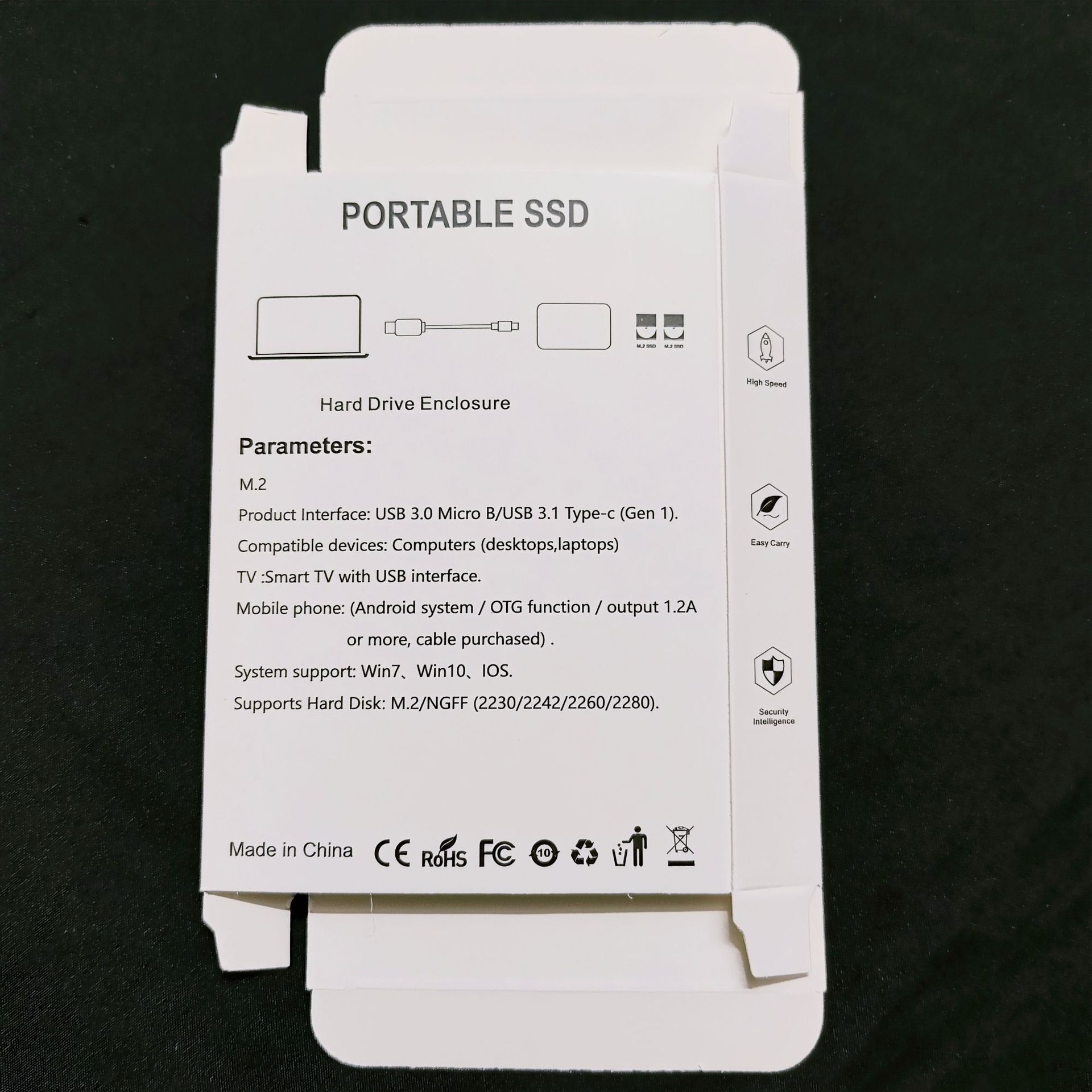 솔리드 스테이트 드라이브 포장 저장 금속 케이스 M.2SSD 물집 종이 상자 휴대용 SSD 유형-c