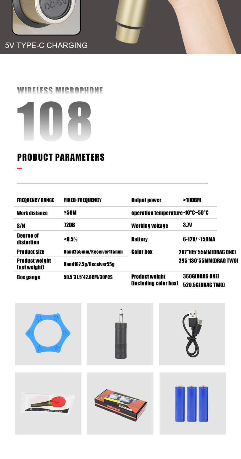 58종 038 마이크 108 무선 마이크 듀얼 스테이지 가정용 노래방 야외 오디오 블루투스 라디오