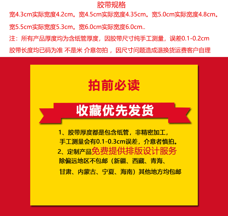 • 노란색 바탕에 빨간색 글씨, 폭 4.5, 두께 2.3/길이 150(48롤 한 박스)