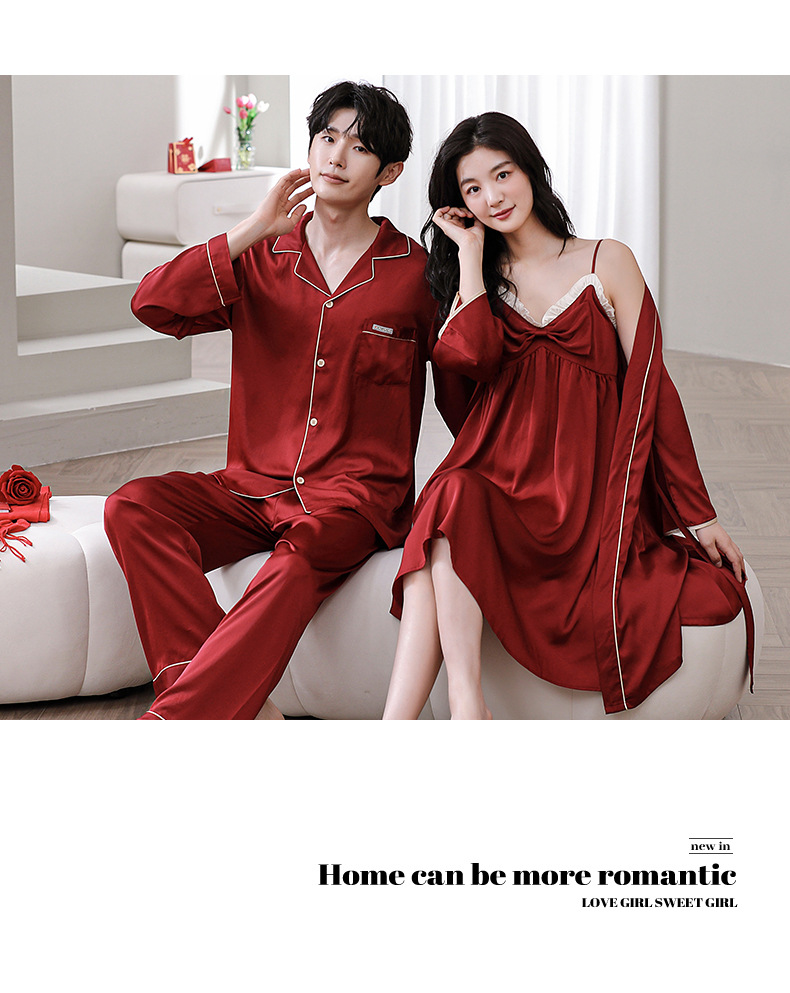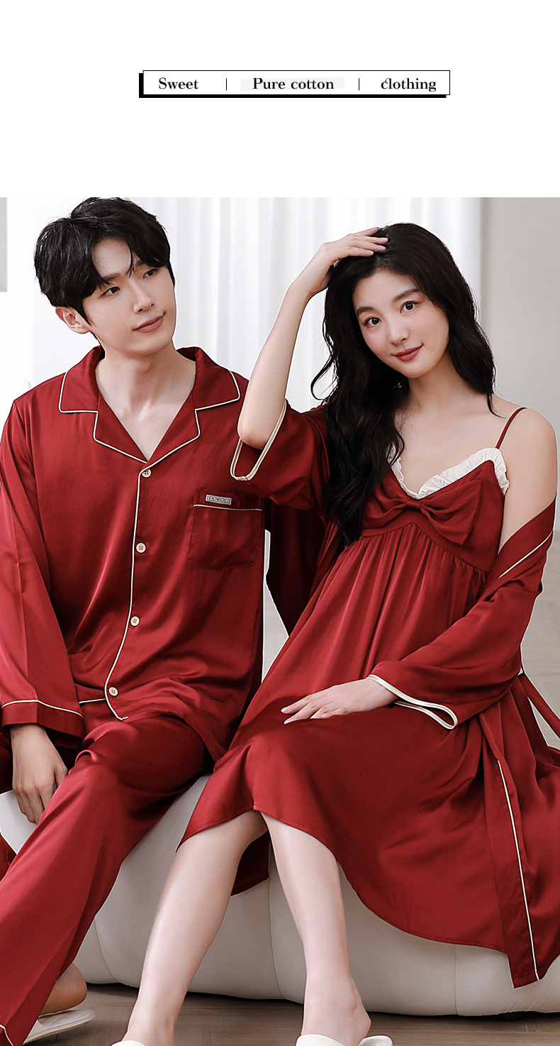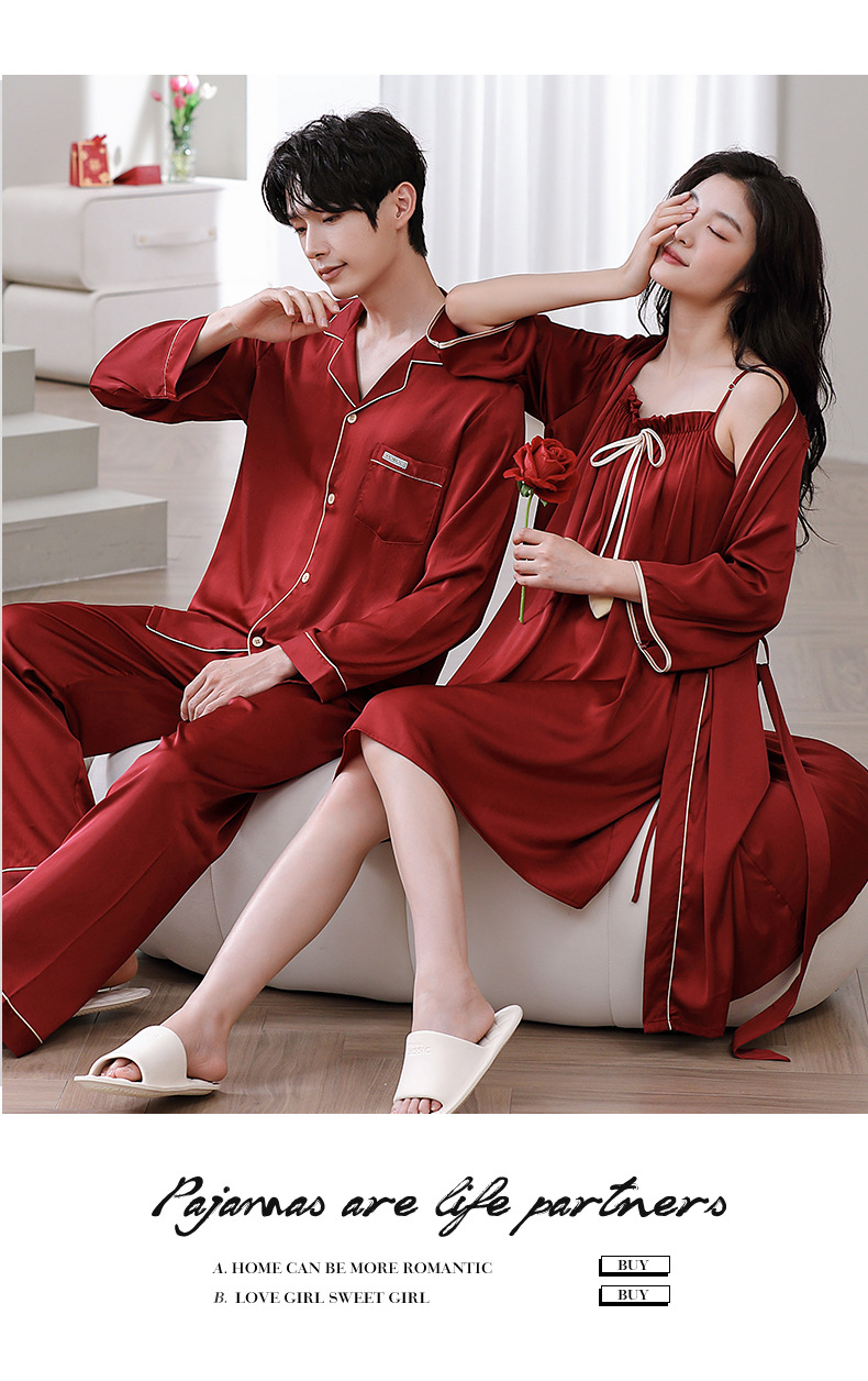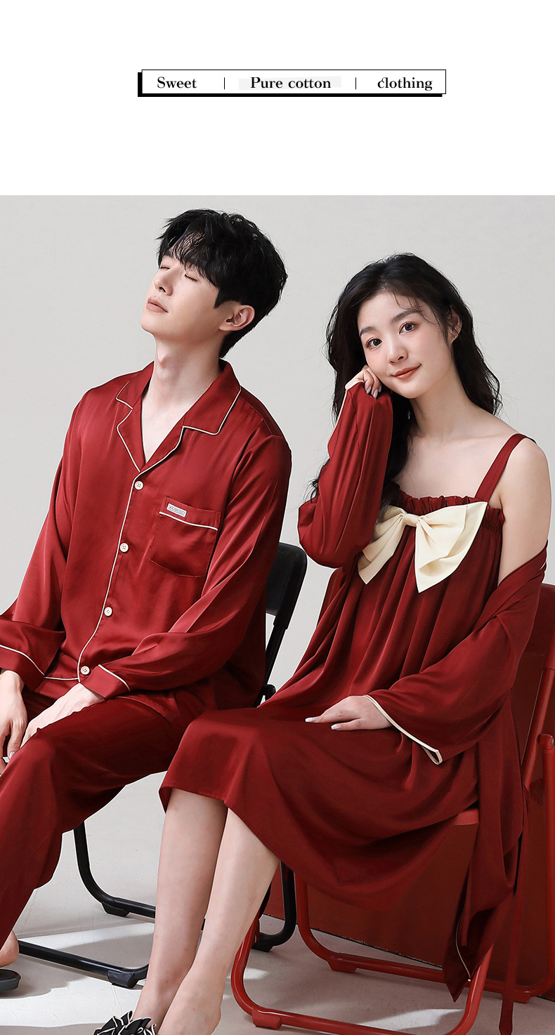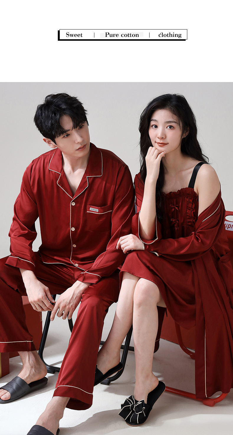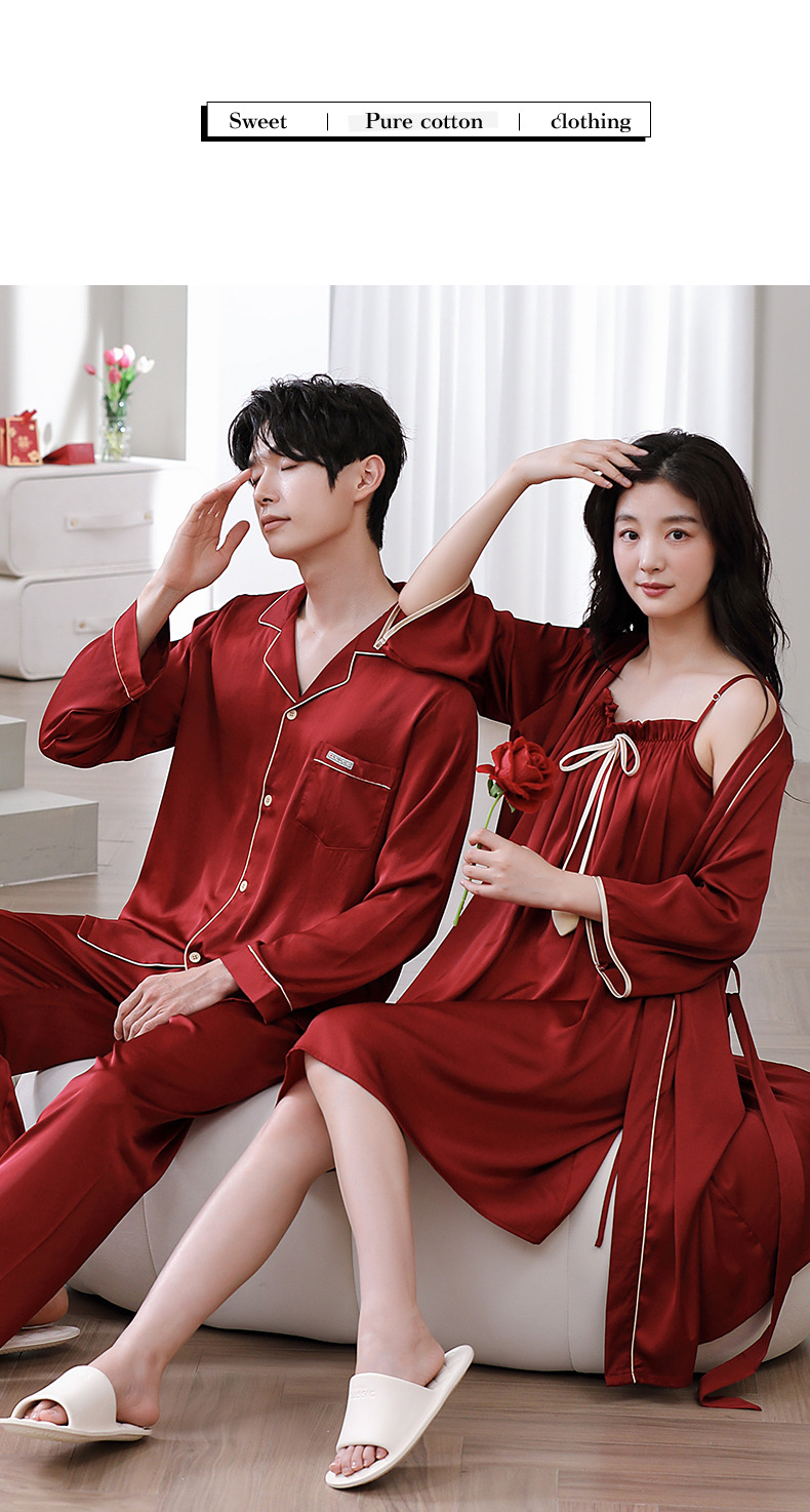 커플의 얼음 실크 잠옷 여름 빨간 결혼식 년 슬링 원피스 잠옷 투피스 홈웨어스토어 가기