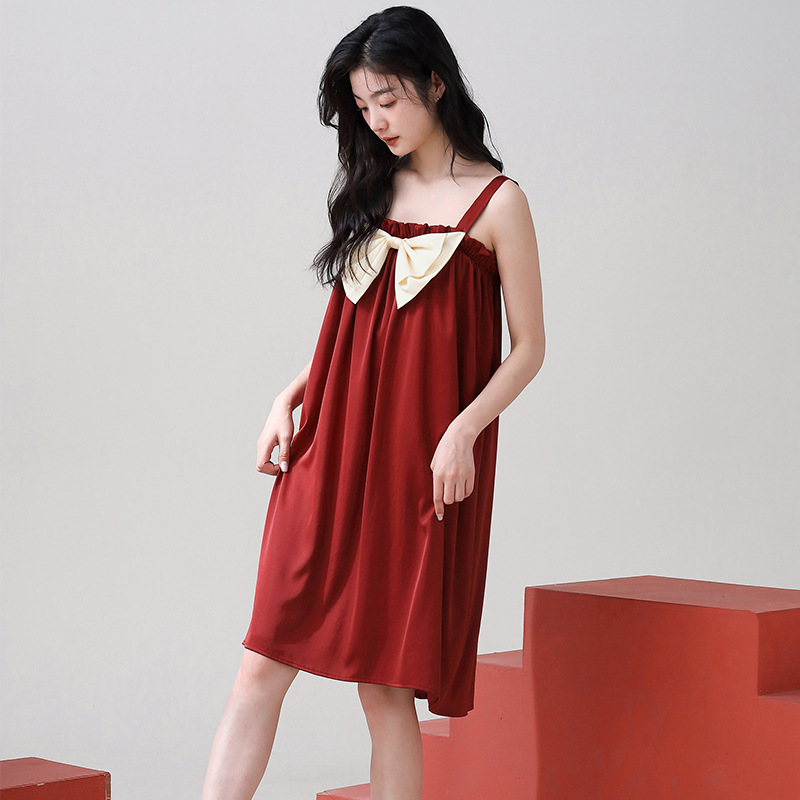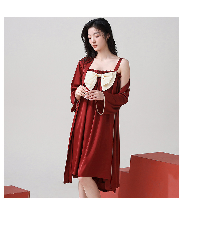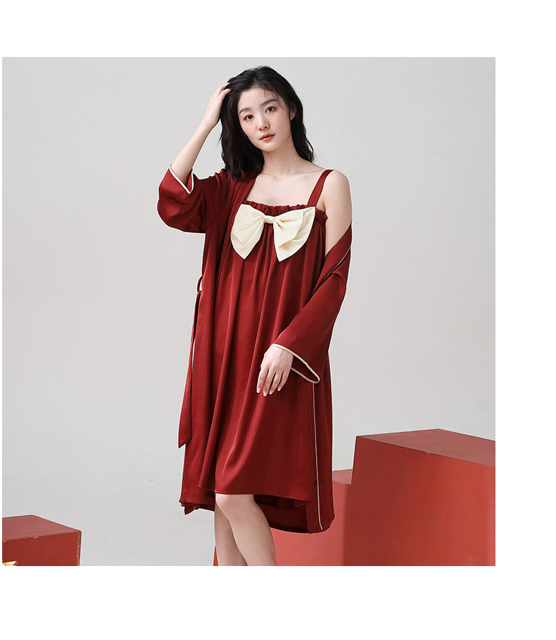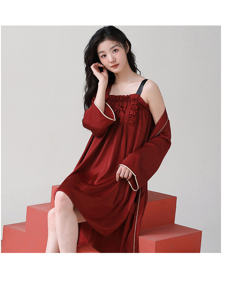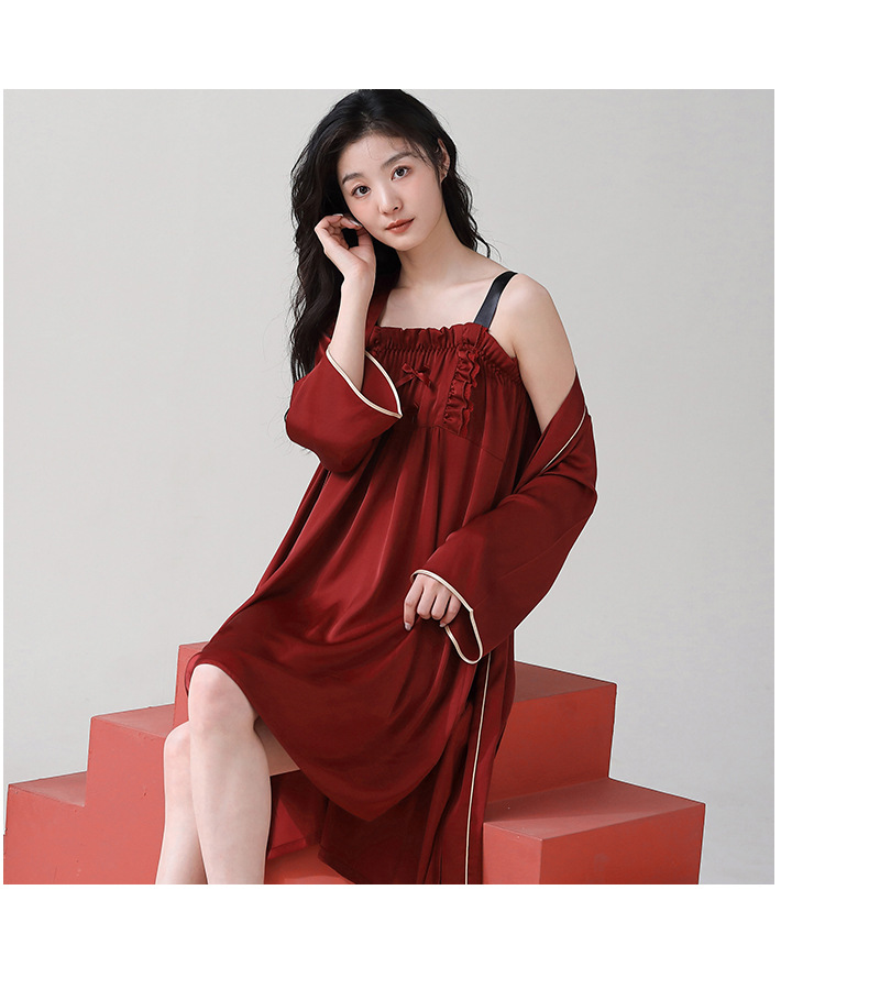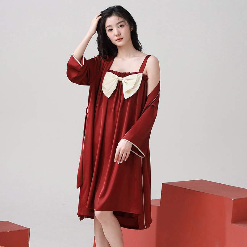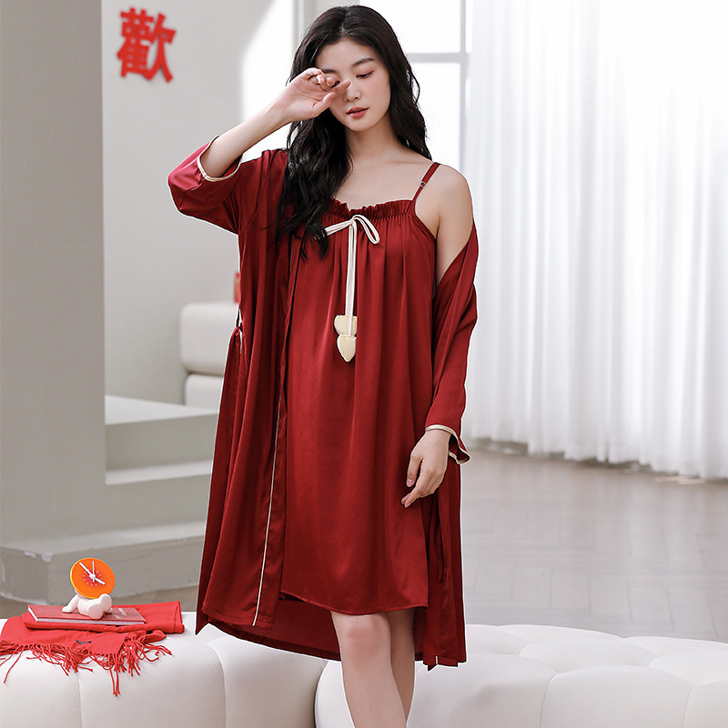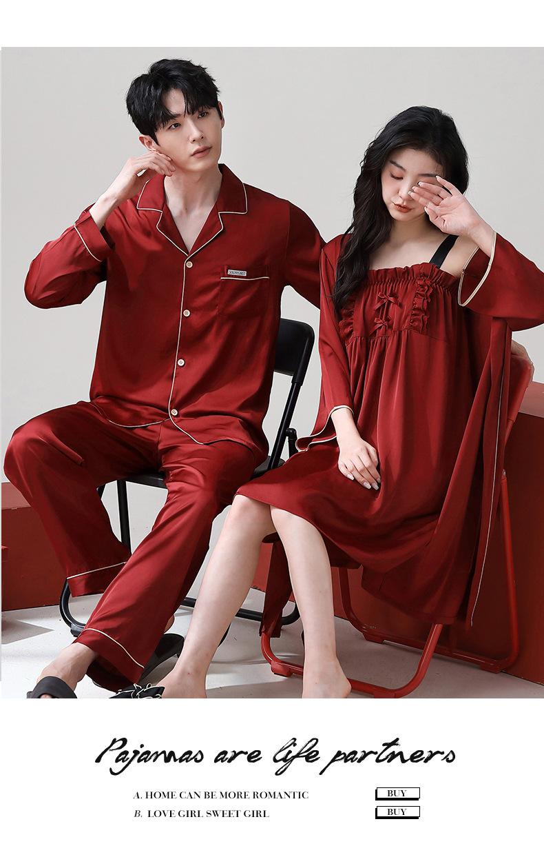 커플의 얼음 실크 잠옷 여름 빨간 결혼식 년 슬링 원피스 잠옷 투피스 홈웨어스토어 가기