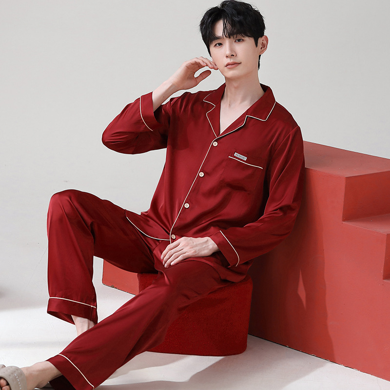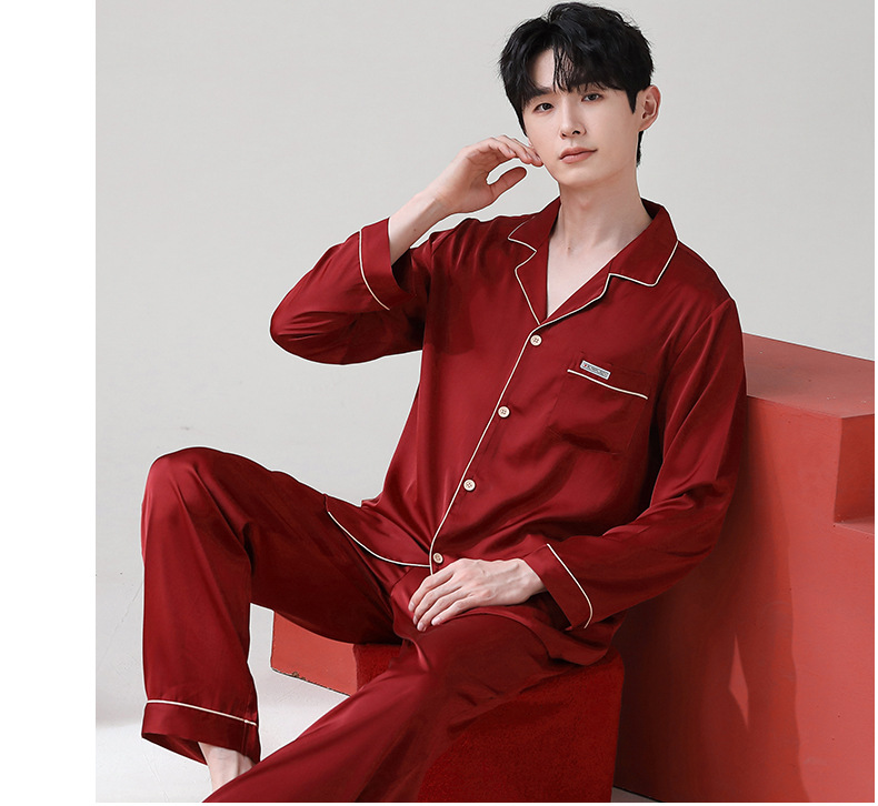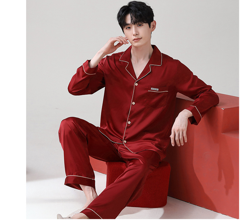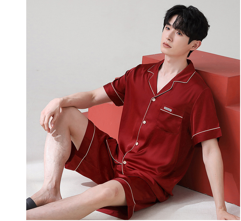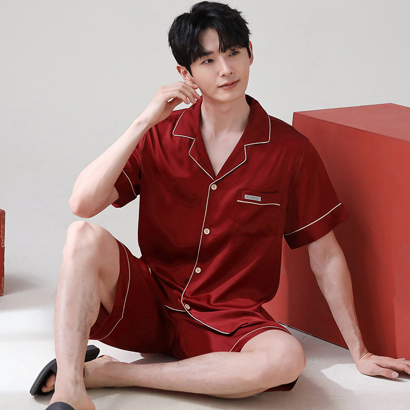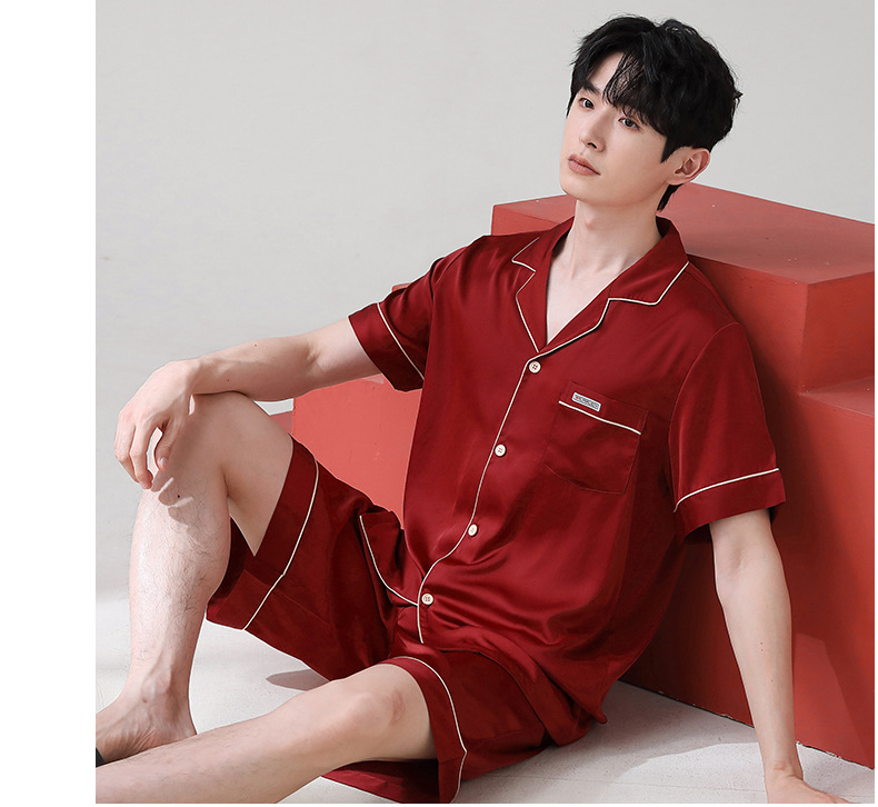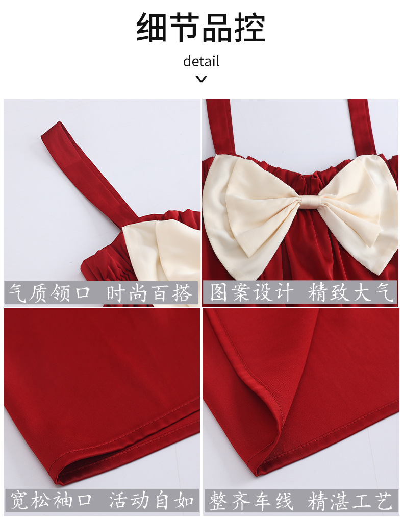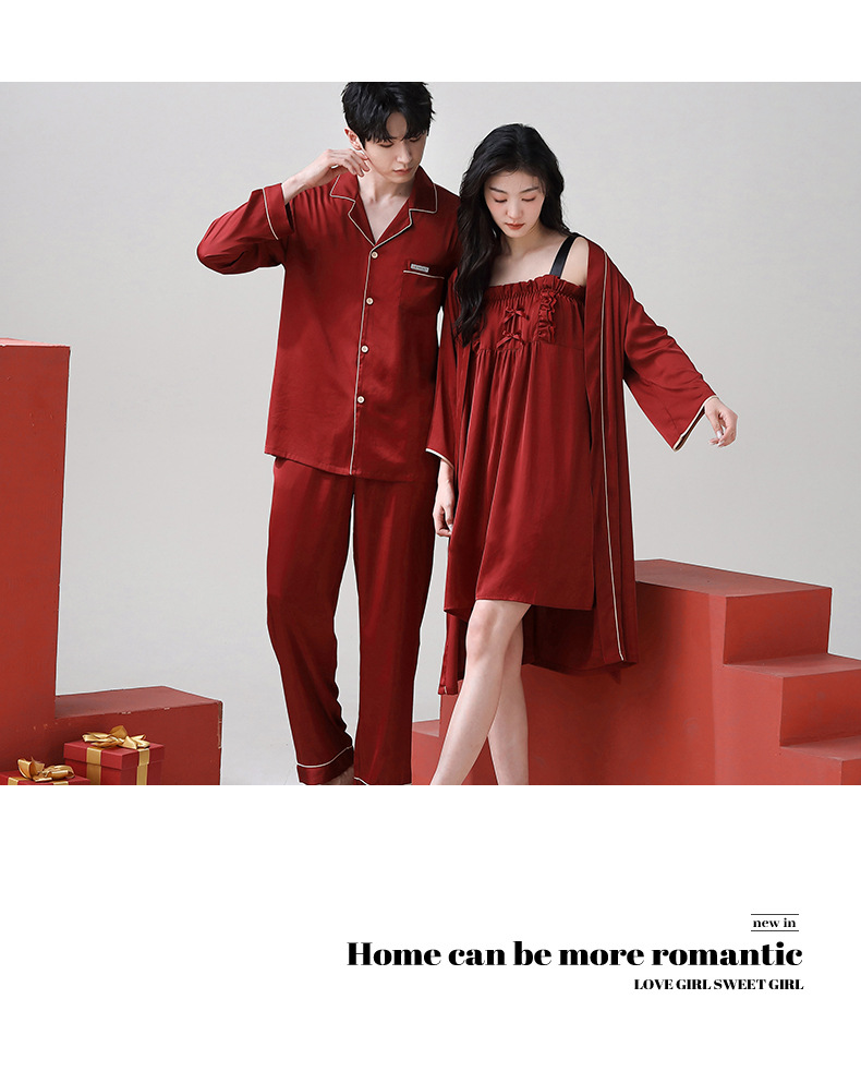 커플의 얼음 실크 잠옷 여름 빨간 결혼식 년 슬링 원피스 잠옷 투피스 홈웨어