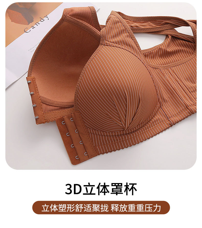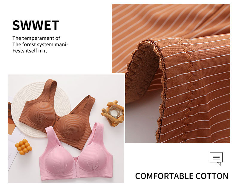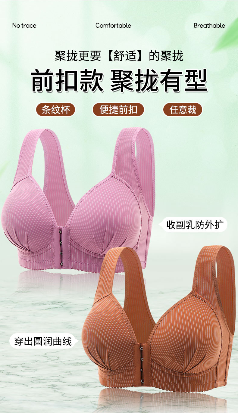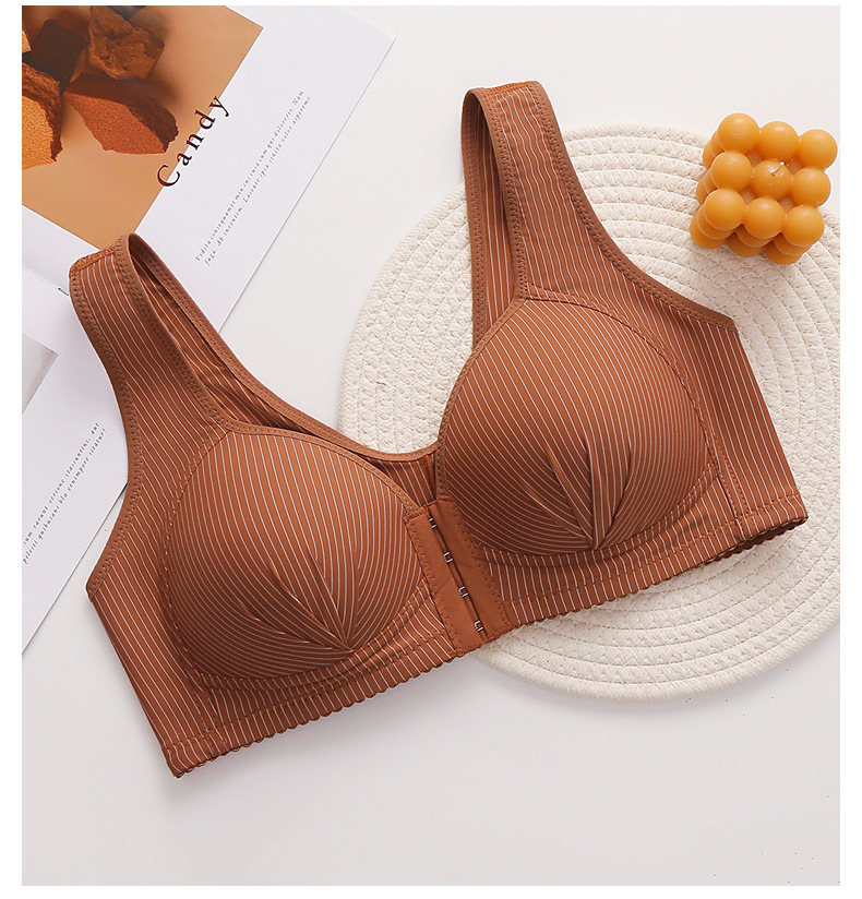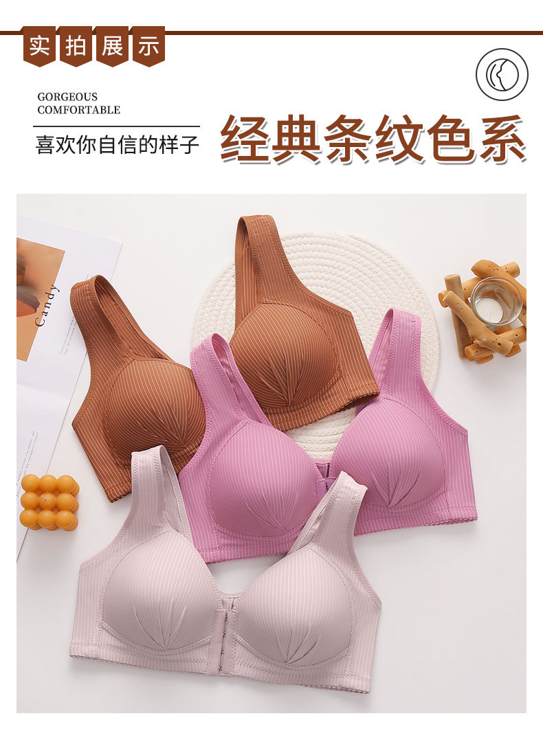 재고 직접 헤어 공장 직접 판매 전면 버튼 유형 무선 얇은 큰 가슴 작은 가슴 줄무늬 속옷 여성용 브래지어