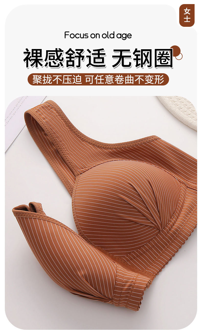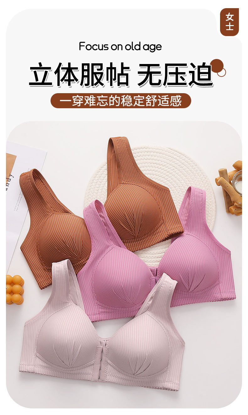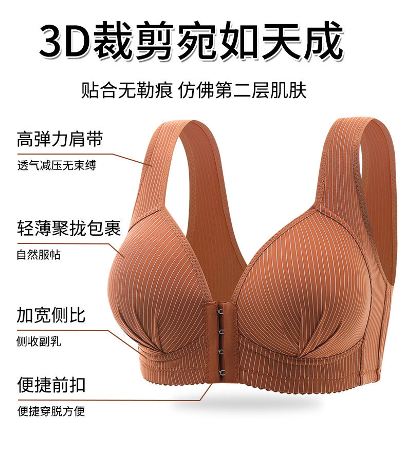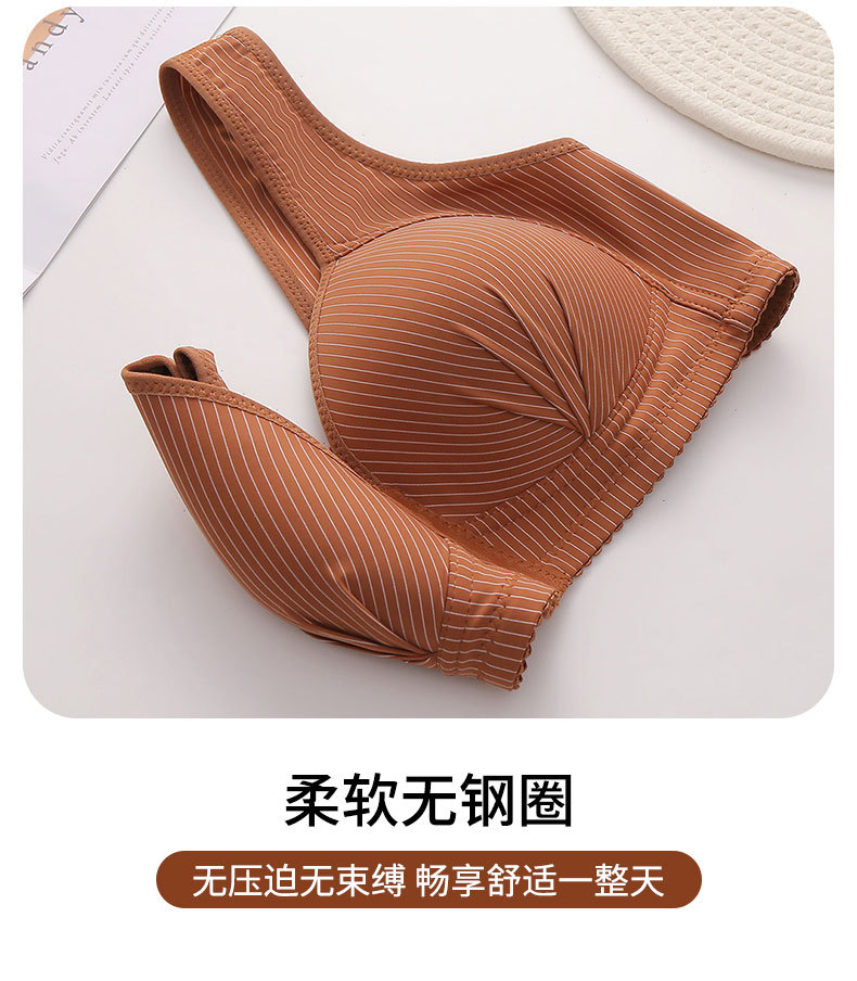 재고 직접 헤어 공장 직접 판매 전면 버튼 유형 무선 얇은 큰 가슴 작은 가슴 줄무늬 속옷 여성용 브래지어