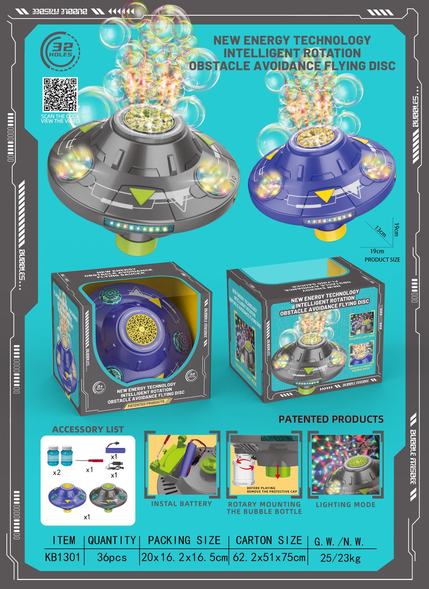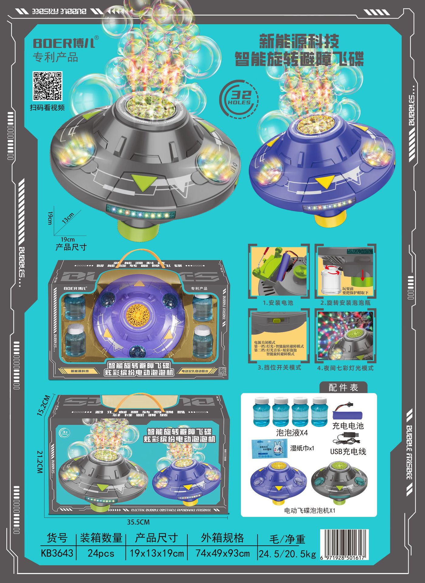 국경 간 전자 상거래 새로운 어린이 UFO 거품 기계 지능형 회전 장애물 회피 불꽃 화려한 불꽃 놀이 전기 거품 기계