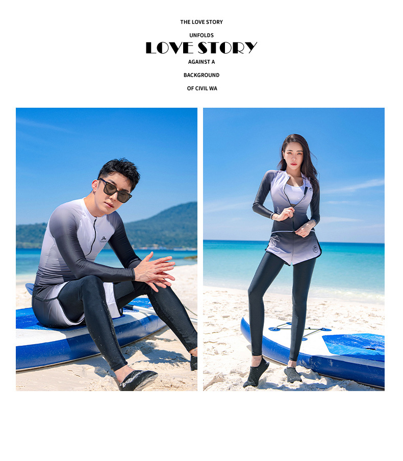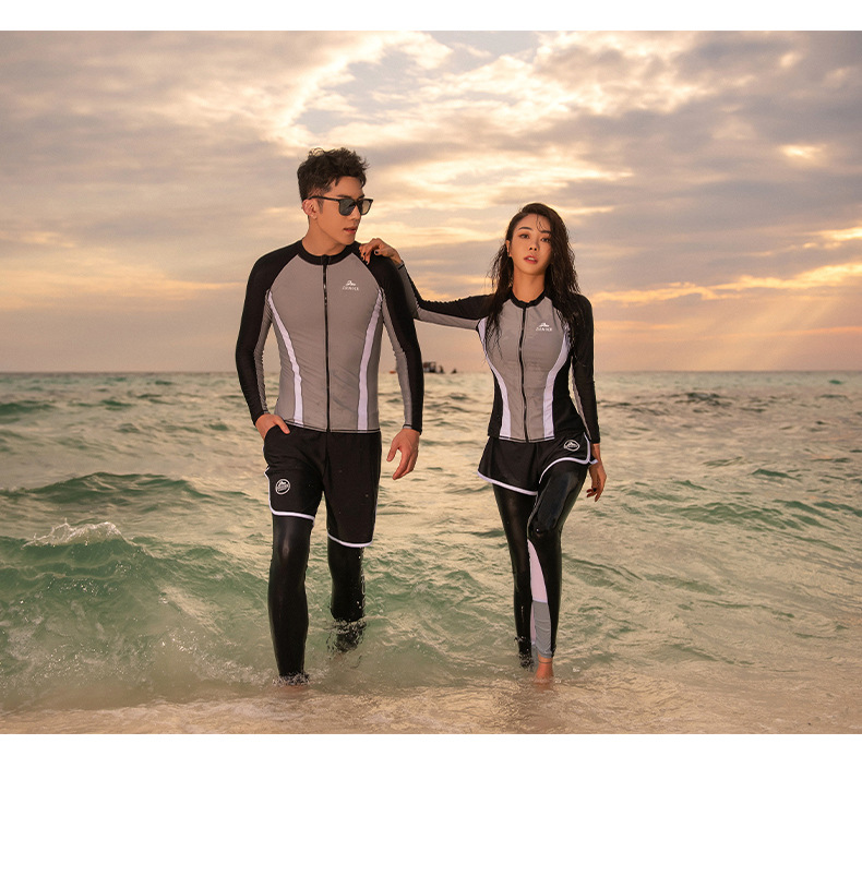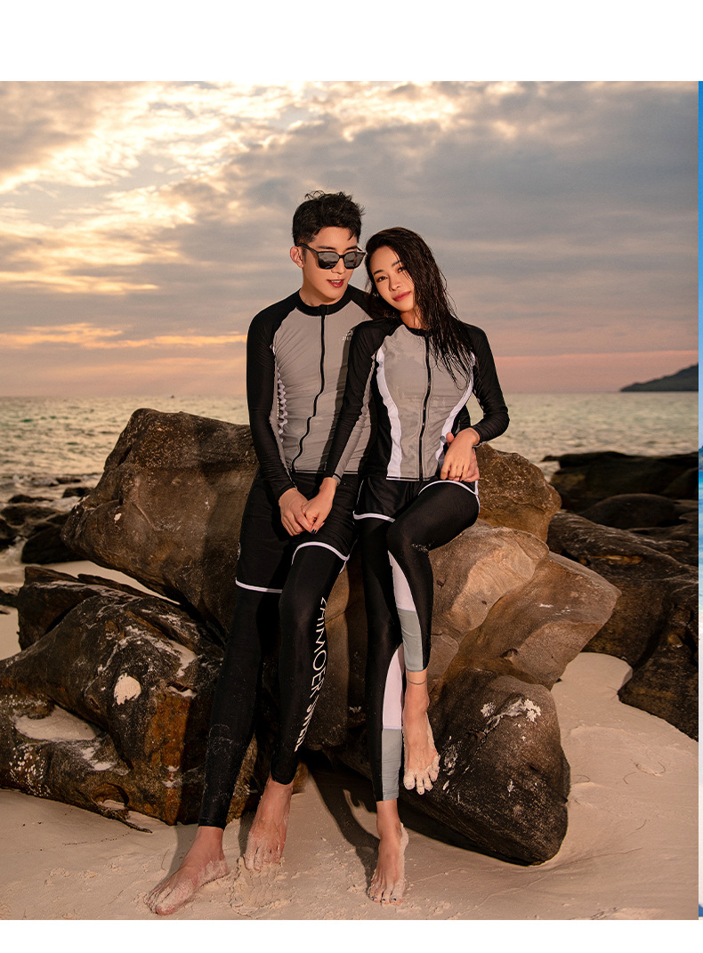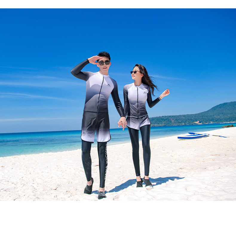 한국 커플 다이빙 세트 2024 여름 패션 새로운 긴 소매 분할 스포츠 수영복 보수 서핑 수영복