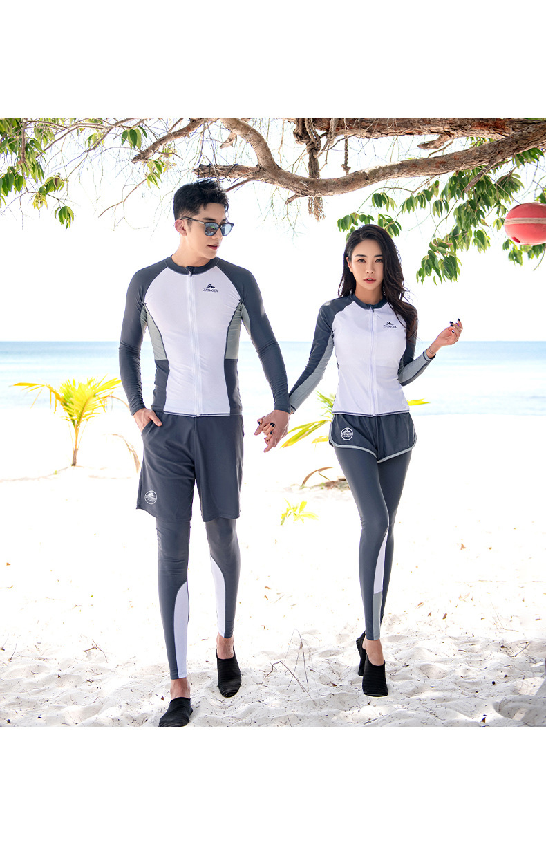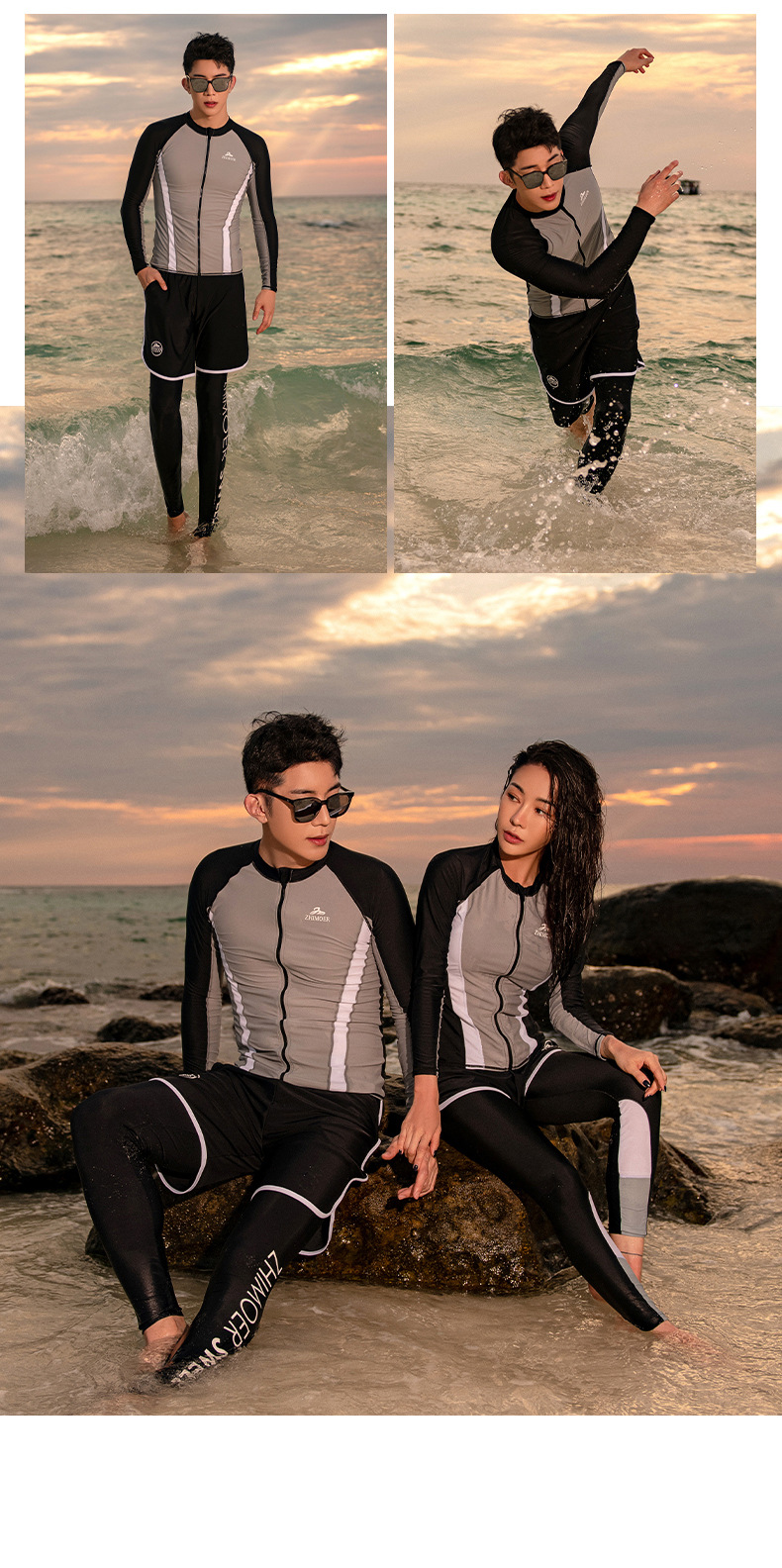 한국 커플 다이빙 세트 2024 여름 패션 새로운 긴 소매 분할 스포츠 수영복 보수 서핑 수영복스토어 가기