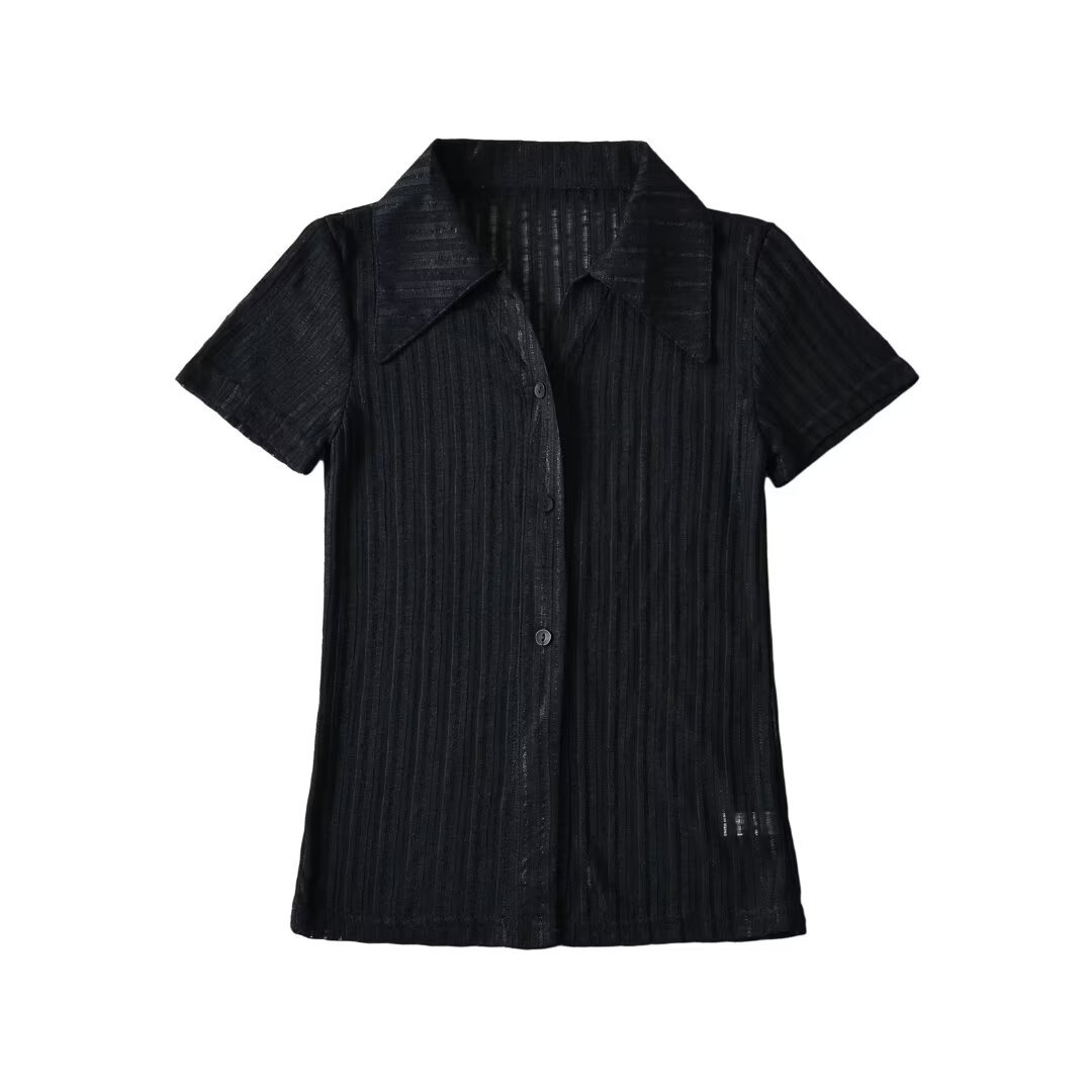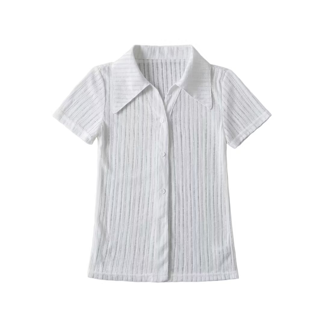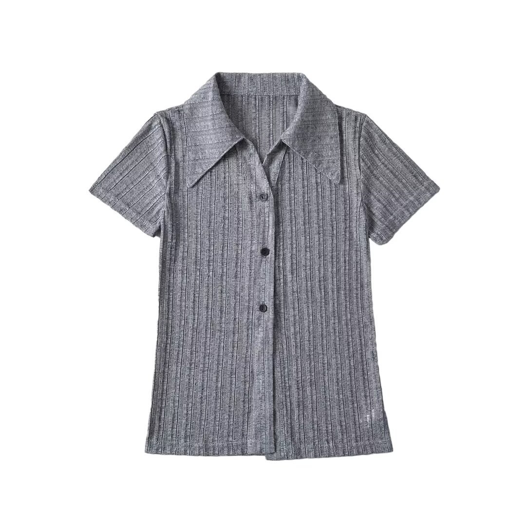 여름 유럽과 미국의 뜨거운 여자 슬림 핏 핏 슬리밍 카디건 탑을 2024 여성을위한 폴로 칼라 싱글 브레스트 반팔 셔츠