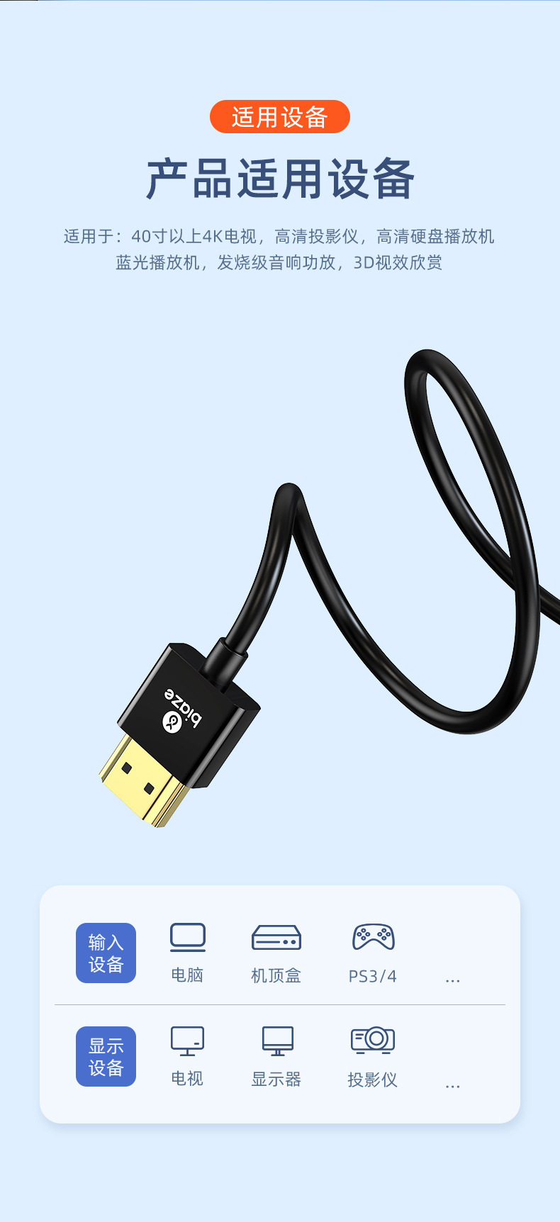 모니터 어댑터 케이블이있는 비아즈 HDMI 케이블 2.0 버전 4K 디지털 HD 비디오 컴퓨터 TV 프로젝터스토어 가기