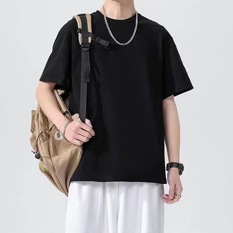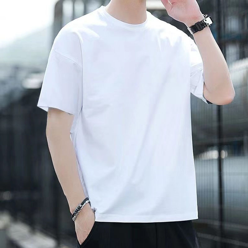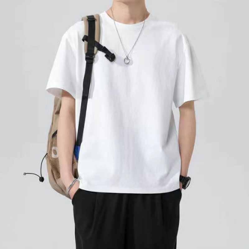 더블 원사 40 정밀 물리적 항균면 짧은 소매 남성 여름 느슨한 플러스 사이즈 둥근 목 반 소매 단색 바닥 셔츠스토어 가기