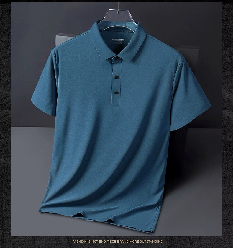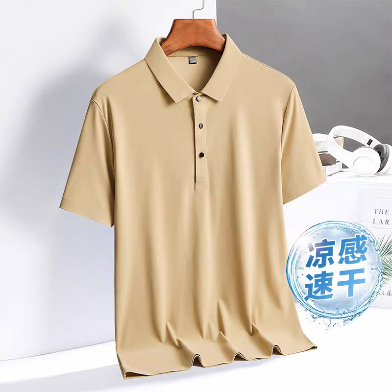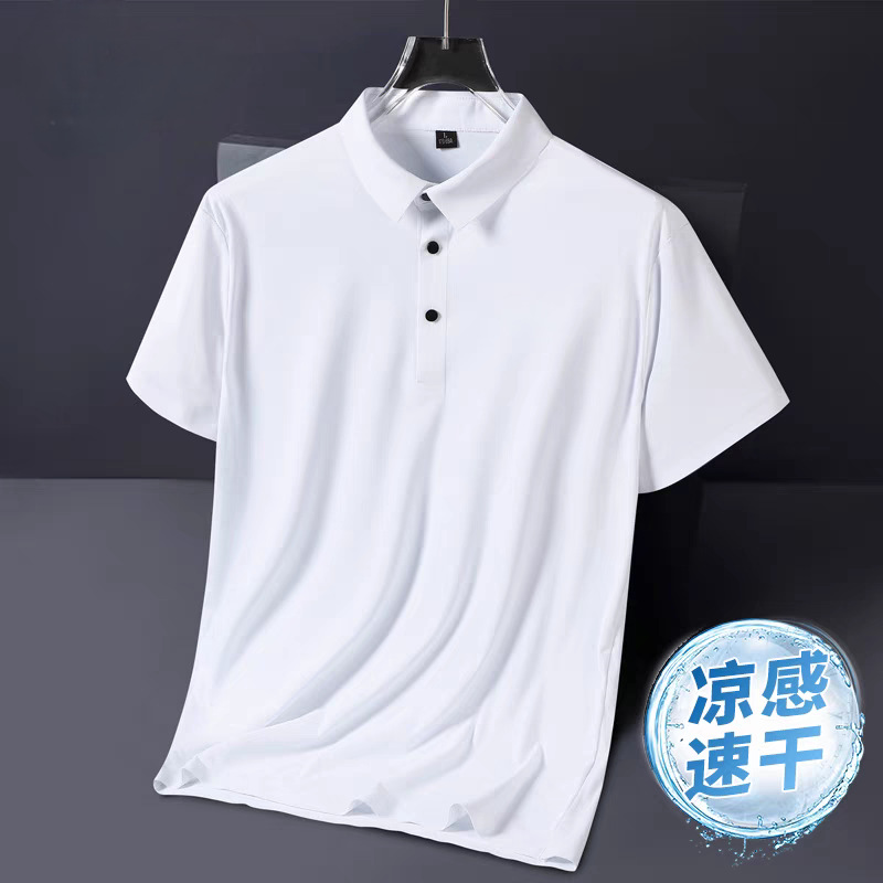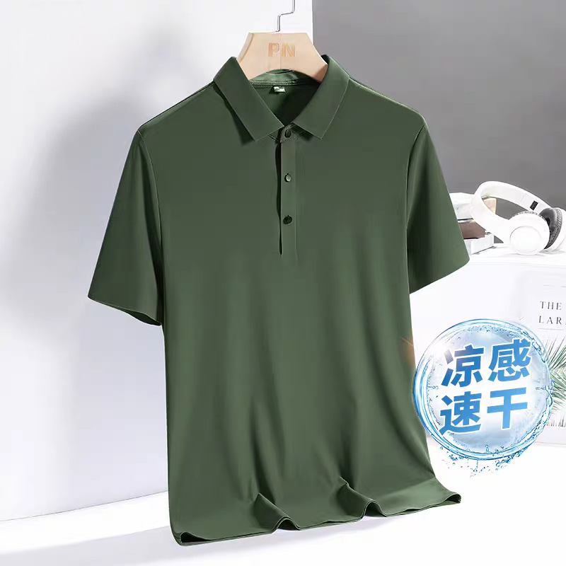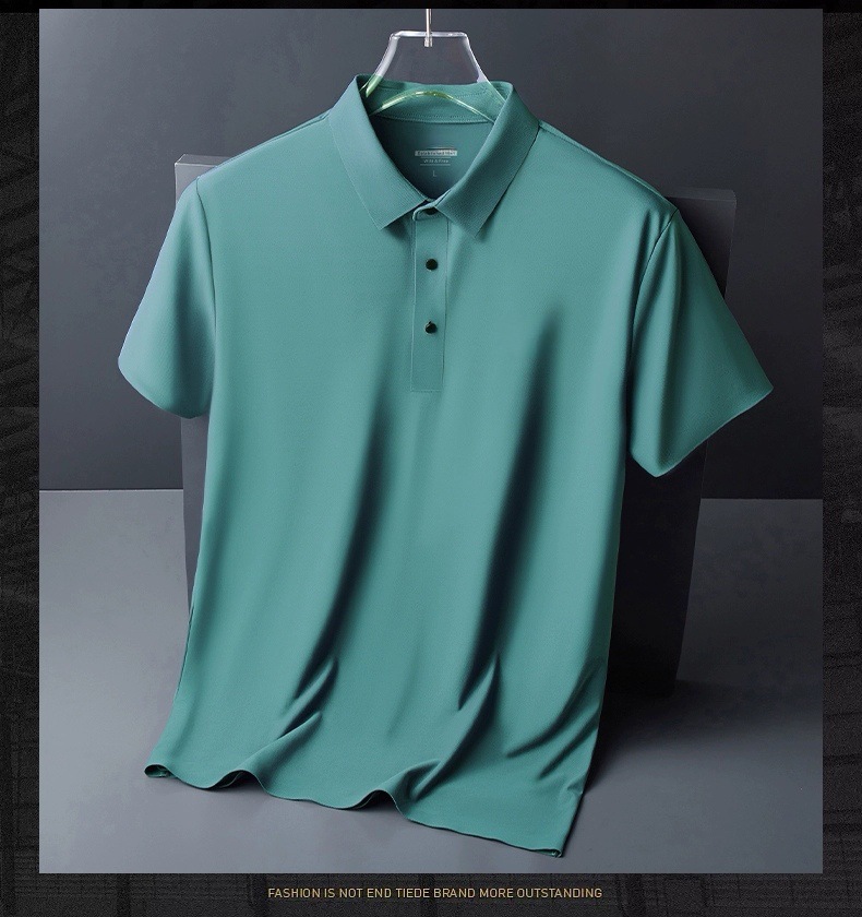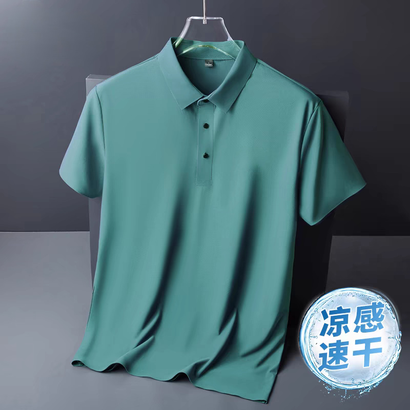 아이스 실크 폴로 셔츠 남성용 반팔 여름 얇은 남성용 하이 엔드 비즈니스 라펠 티셔츠 아빠 캐주얼 탑 남성용