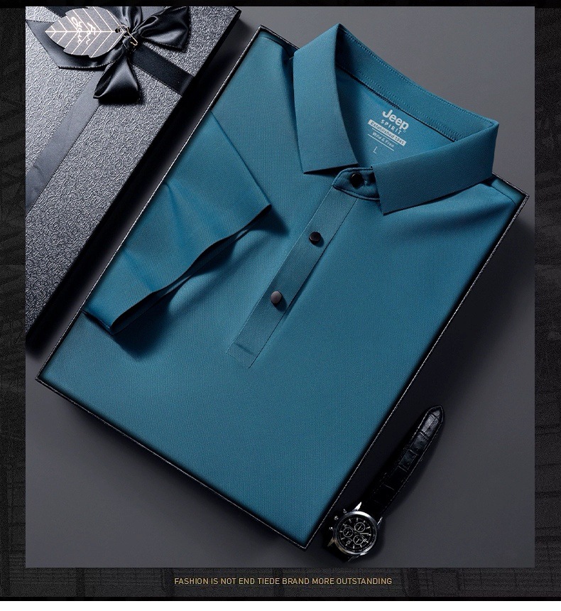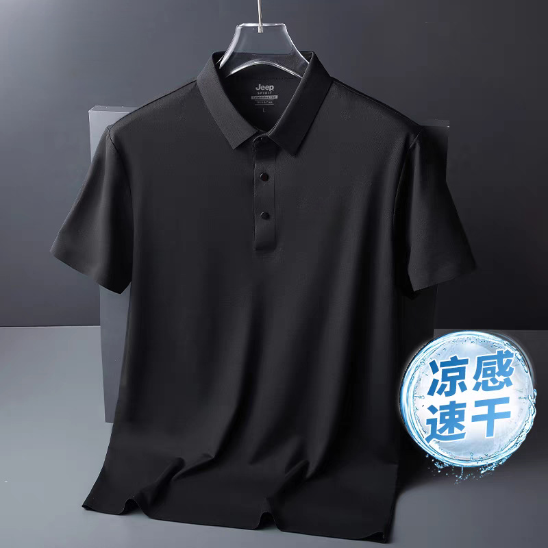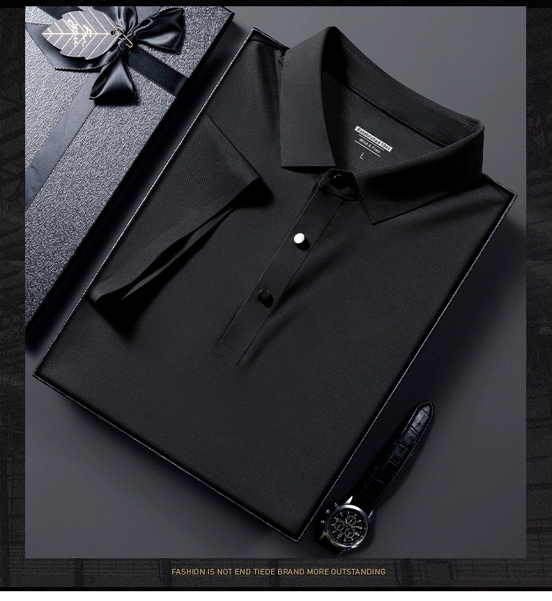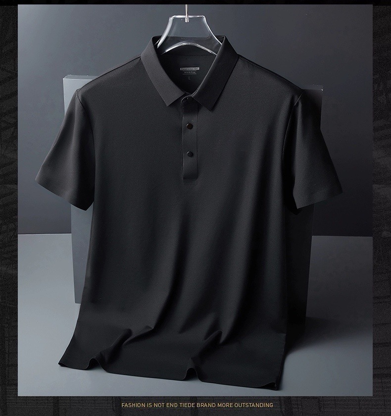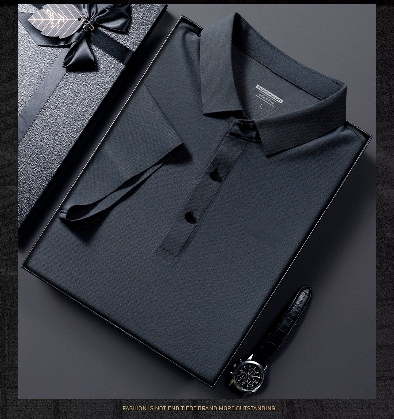 아이스 실크 폴로 셔츠 남성용 반팔 여름 얇은 남성용 하이 엔드 비즈니스 라펠 티셔츠 아빠 캐주얼 탑 남성용