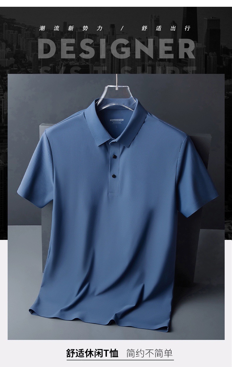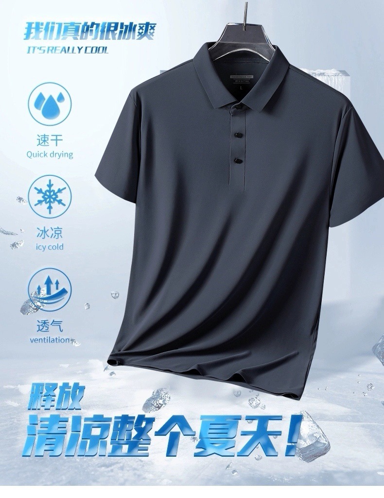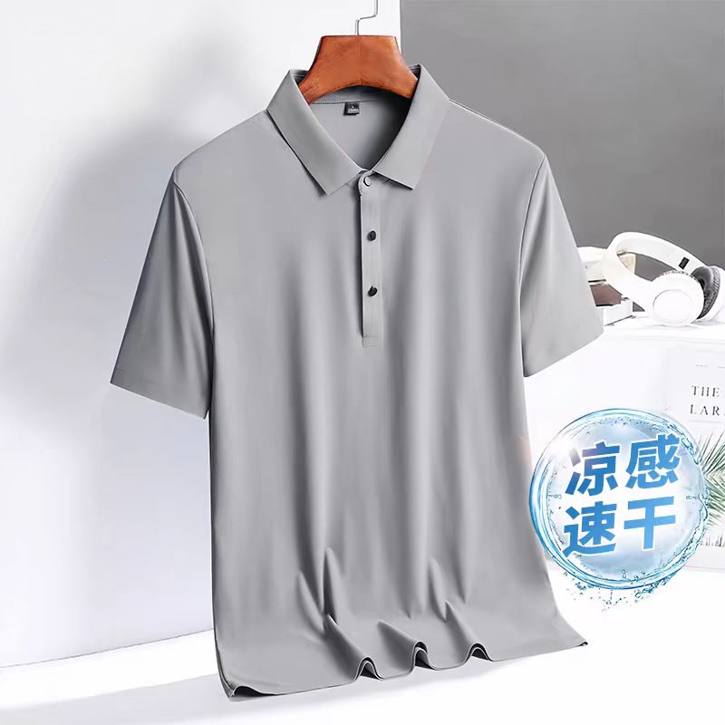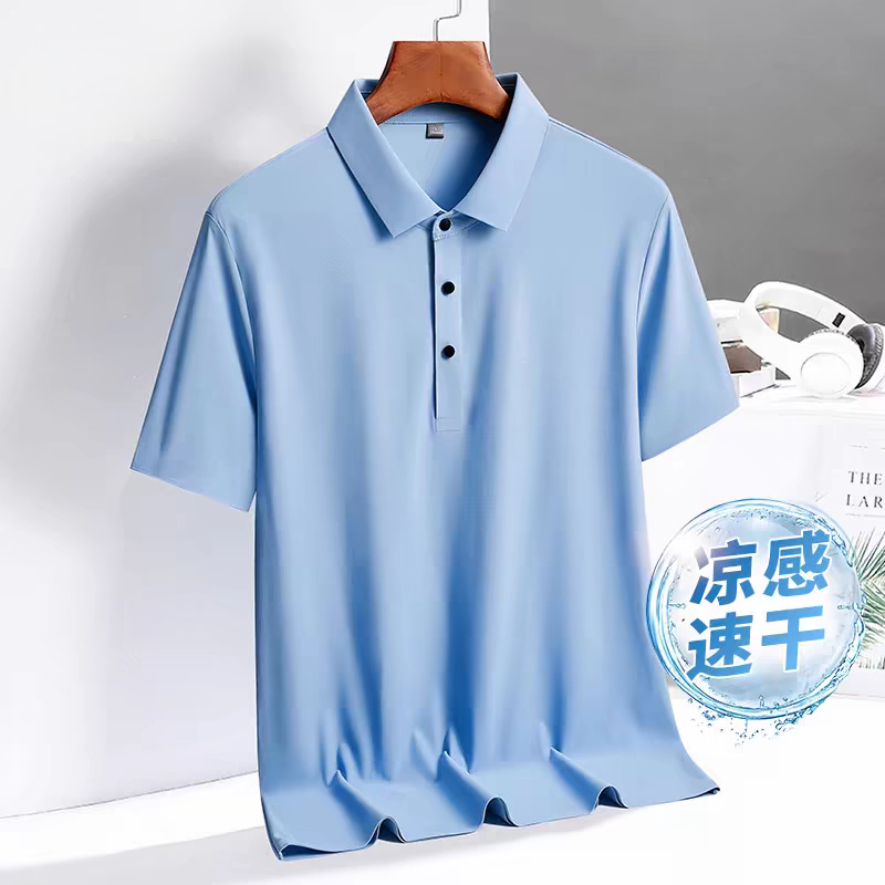 아이스 실크 폴로 셔츠 남성용 반팔 여름 얇은 남성용 하이 엔드 비즈니스 라펠 티셔츠 아빠 캐주얼 탑 남성용스토어 가기