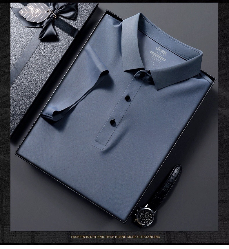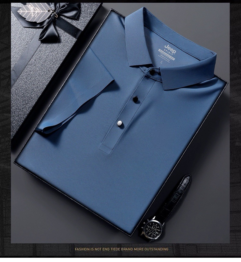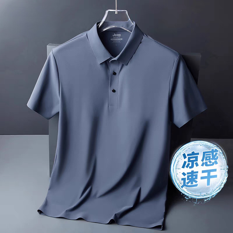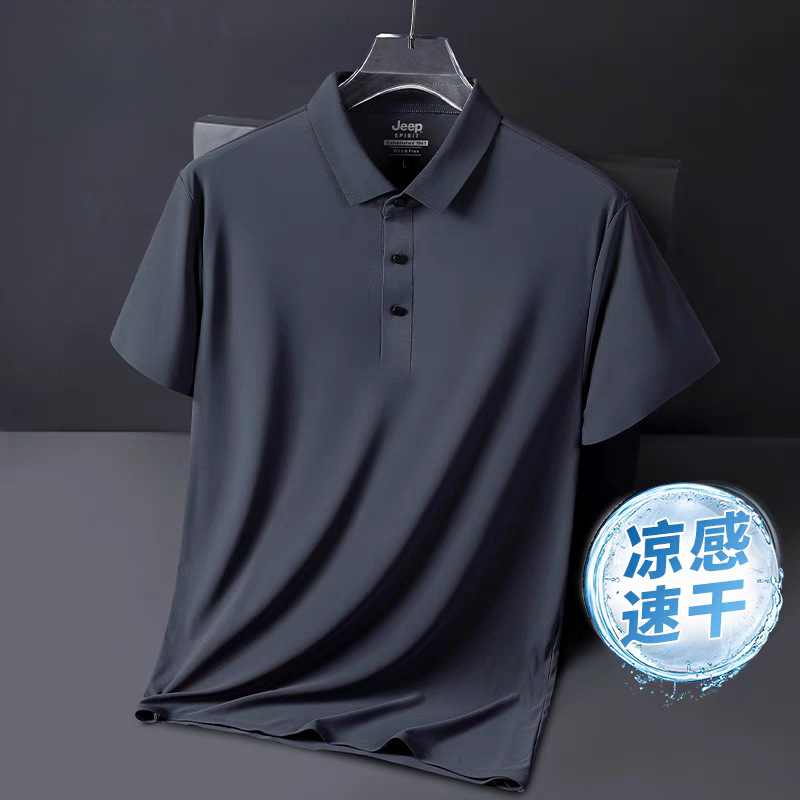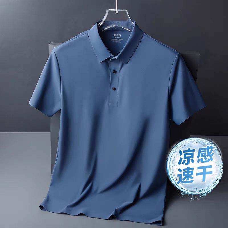 아이스 실크 폴로 셔츠 남성용 반팔 여름 얇은 남성용 하이 엔드 비즈니스 라펠 티셔츠 아빠 캐주얼 탑 남성용스토어 가기