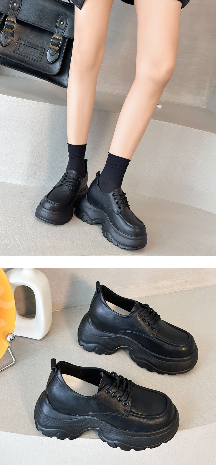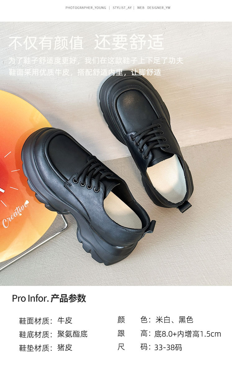 재고 영국 스타일 가죽 신발 2024 봄 새로운 정품 가죽 하이힐 작은 싱글 레이어 신발 숨겨진 높이 여성 신발 10cm스토어 가기