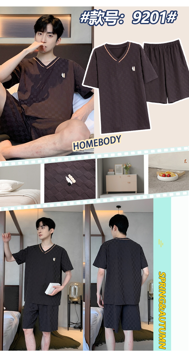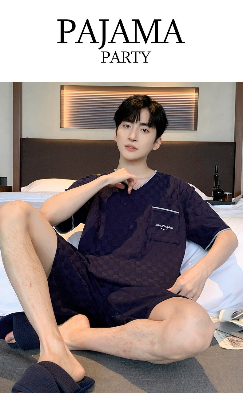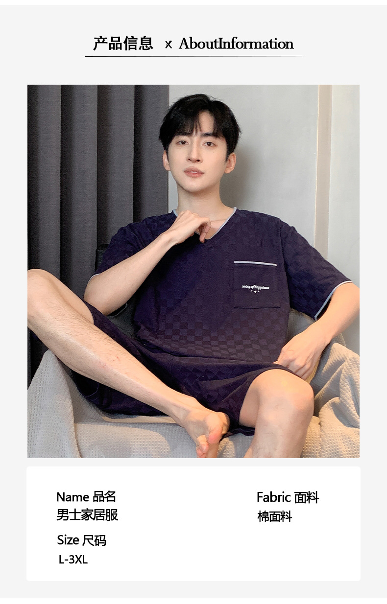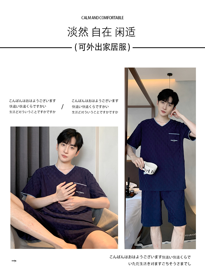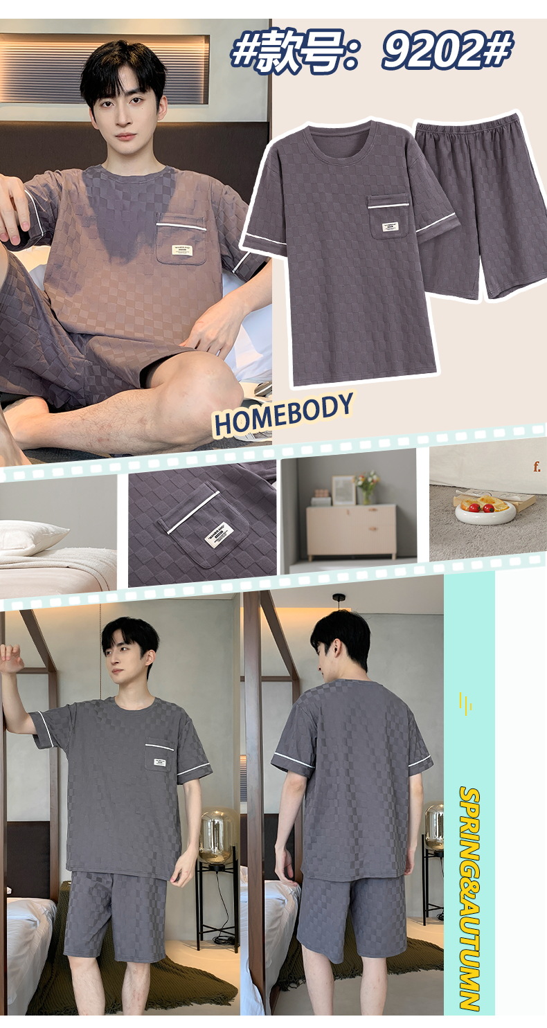 단색면 잠옷 남자 여름 둥근 목 반바지 얇은 자카드 겉옷 소년 홈웨어 세트스토어 가기