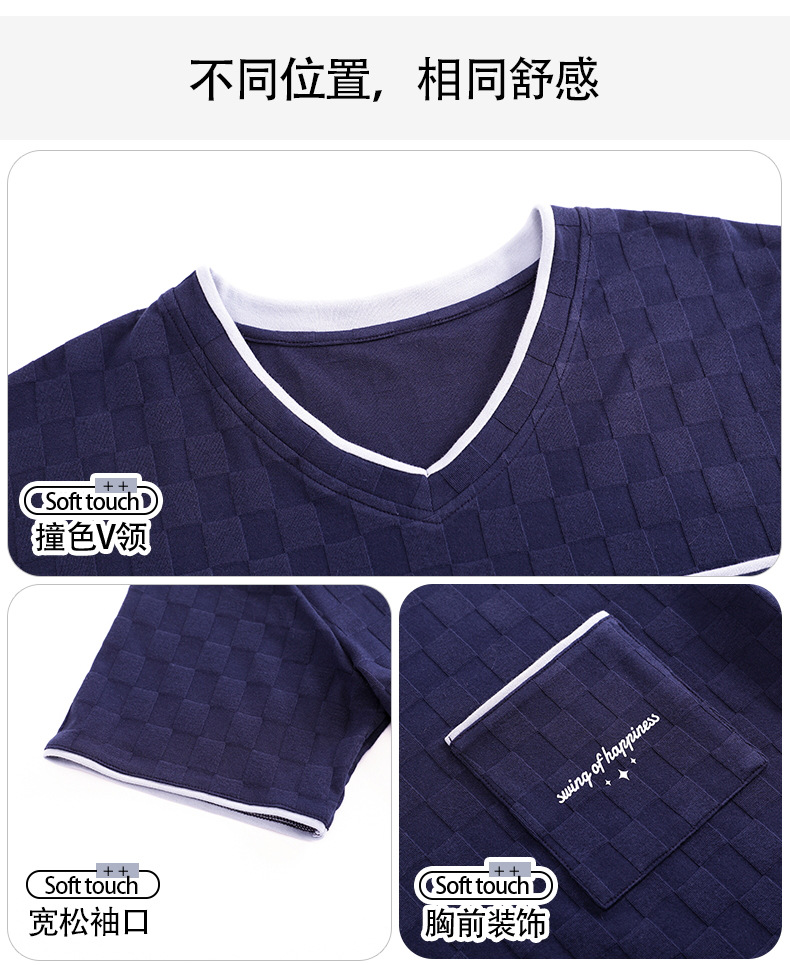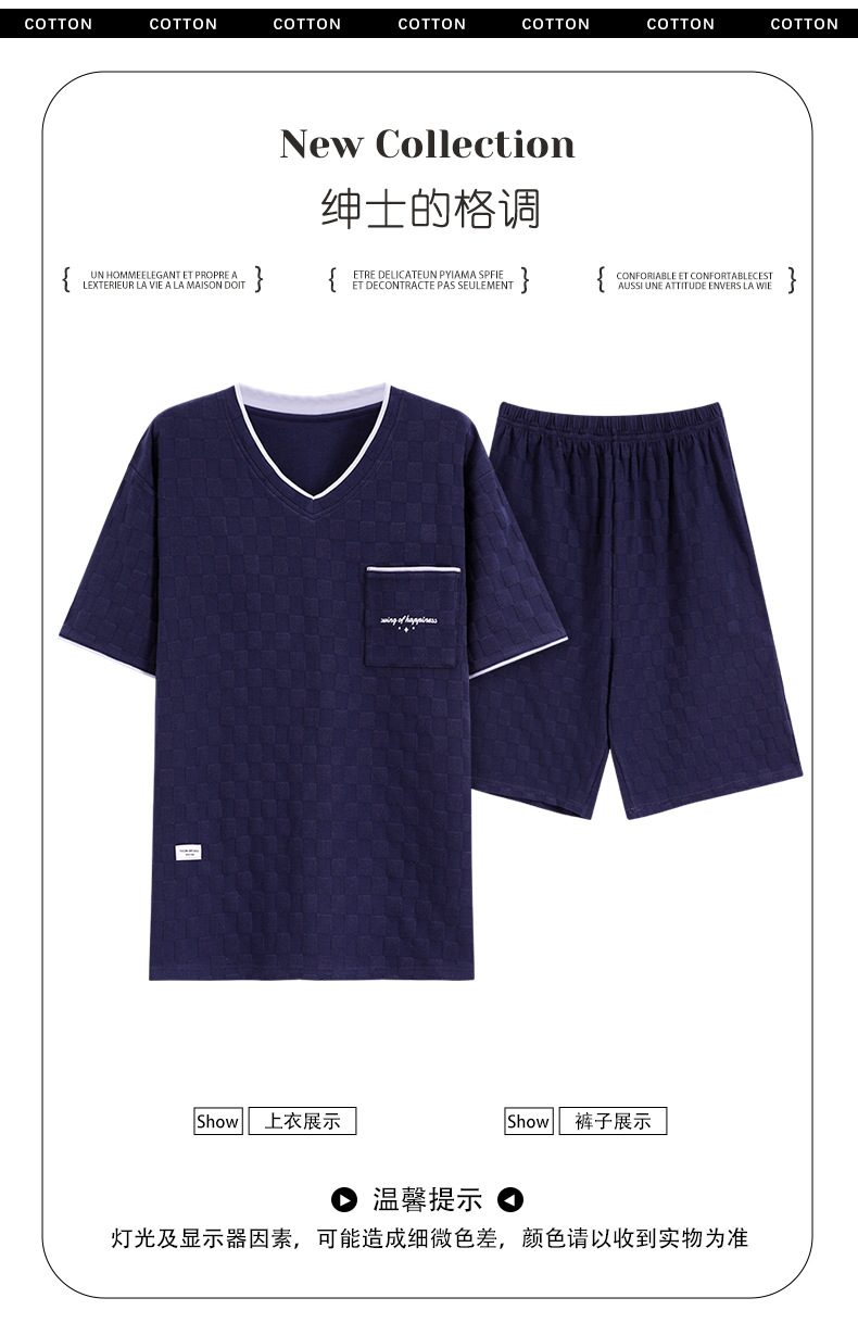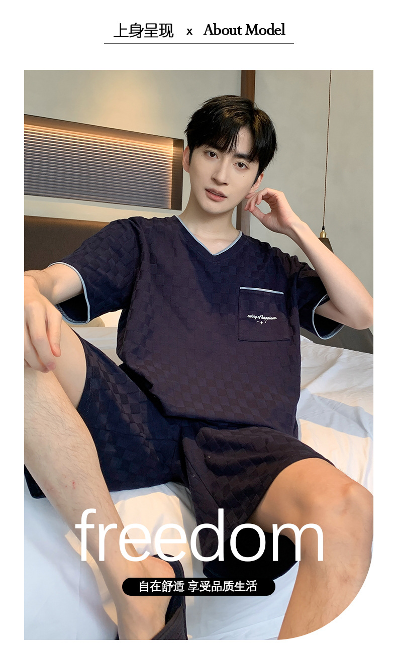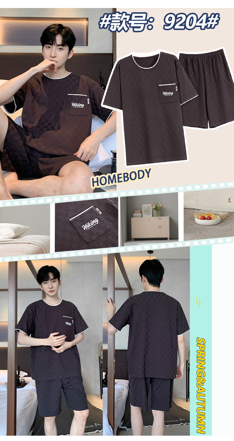 단색면 잠옷 남자 여름 둥근 목 반바지 얇은 자카드 겉옷 소년 홈웨어 세트스토어 가기