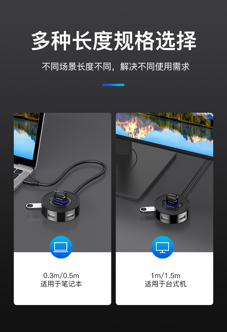 USB2.0 허브 1대4 포트 HUB 분배기 노트북 호스트 확장기 전원 공급 기능 포함 USB 확장 도크스토어 가기