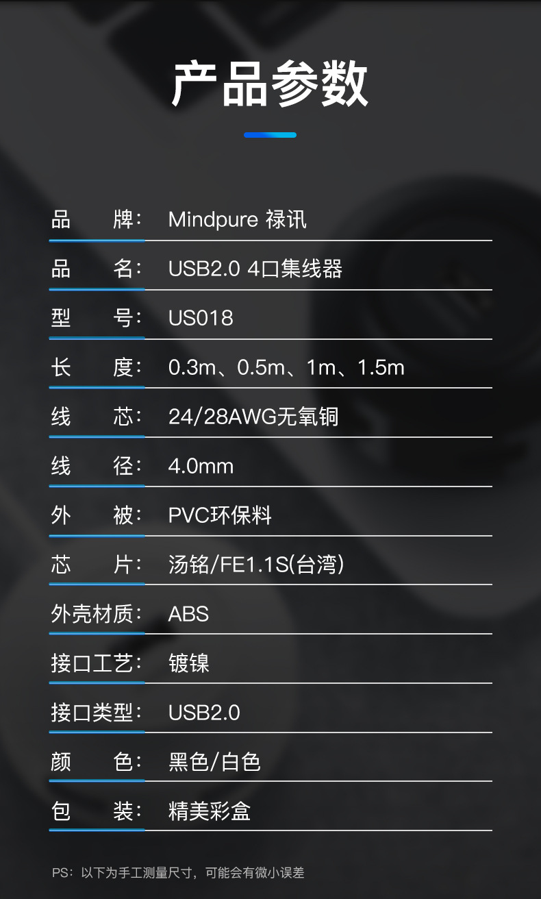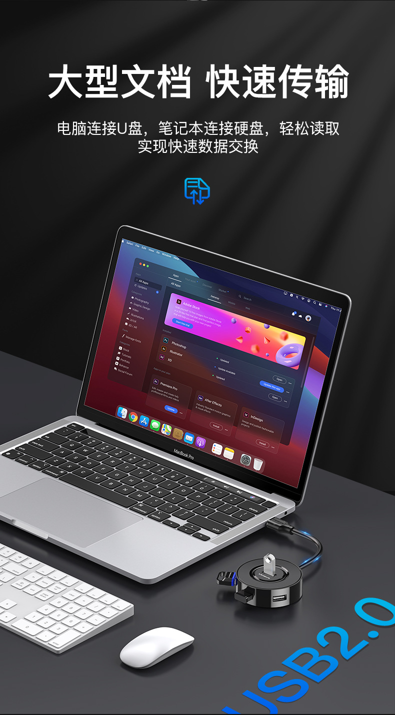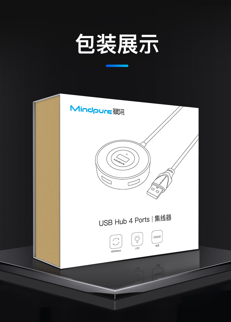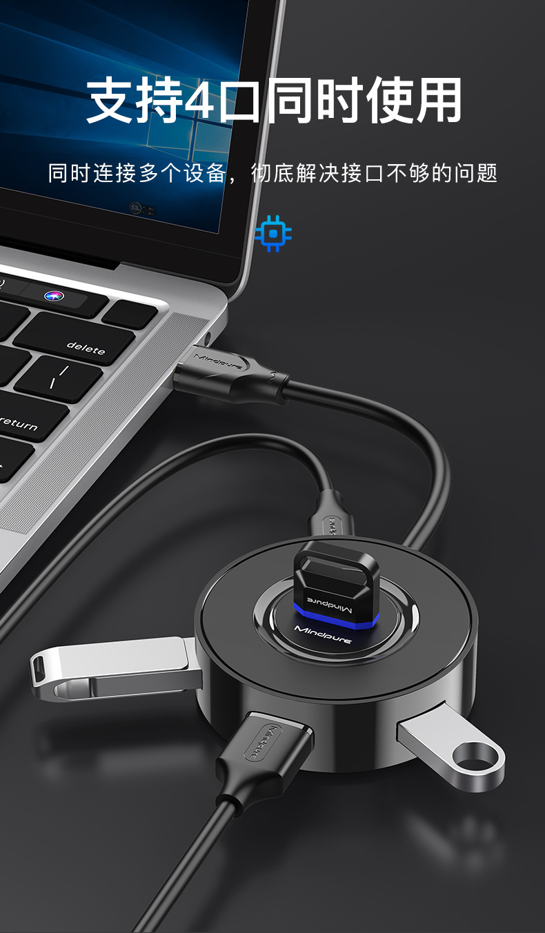 USB2.0 허브 1대4 포트 HUB 분배기 노트북 호스트 확장기 전원 공급 기능 포함 USB 확장 도크
