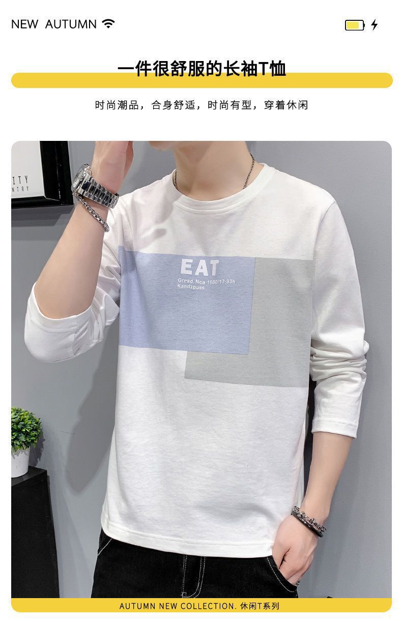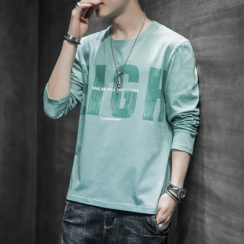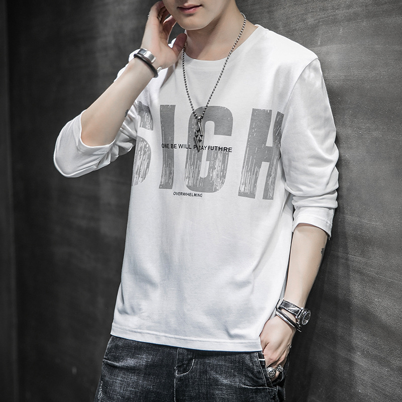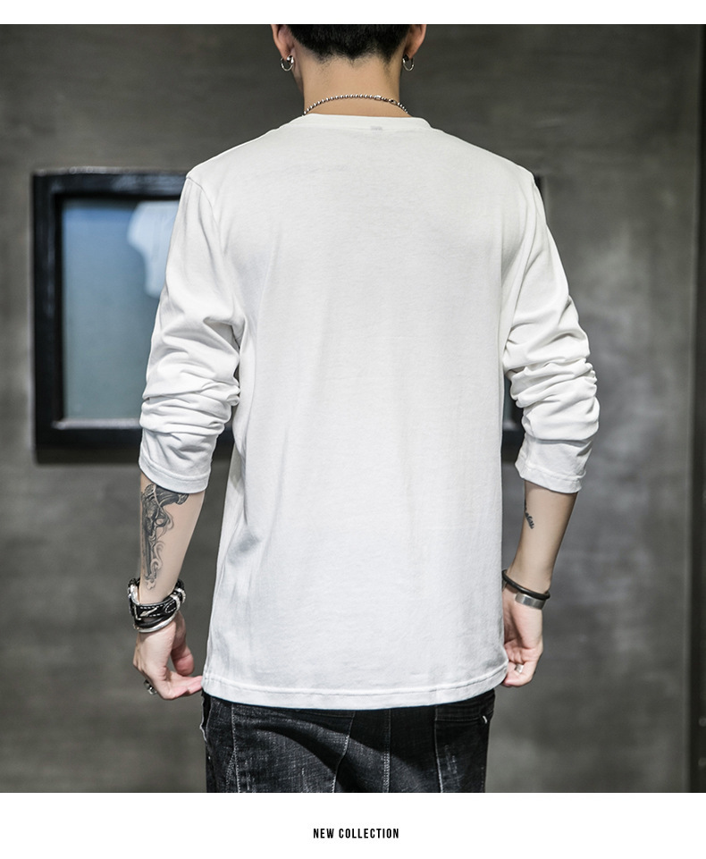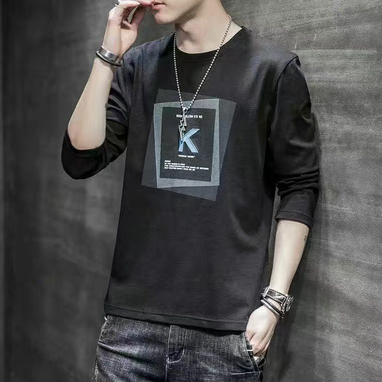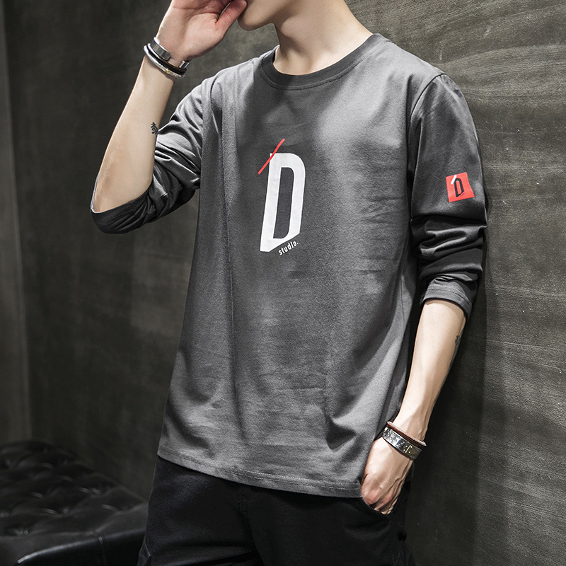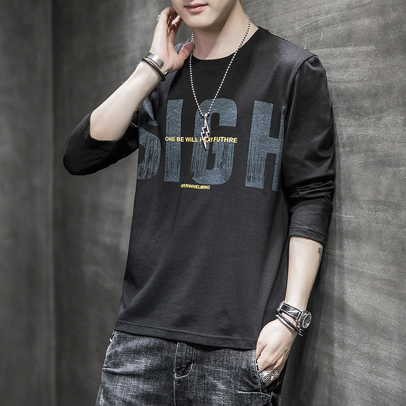 봄과 가을 긴팔 티셔츠 남성복 트렌디 한 캐주얼 라운드 넥 심플 탑 남성용 티셔츠 대외 무역스토어 가기