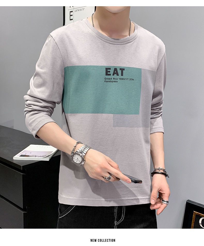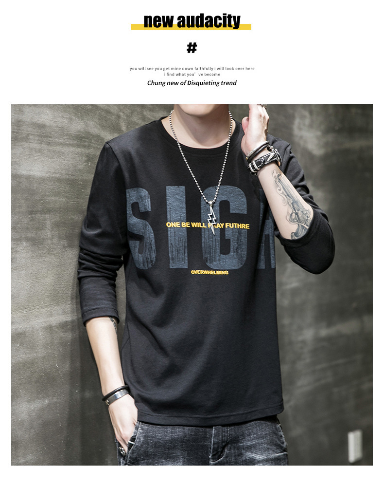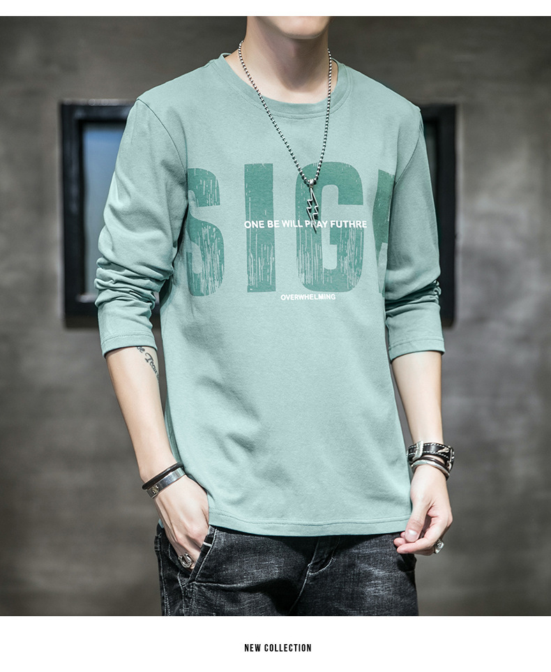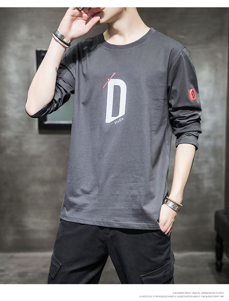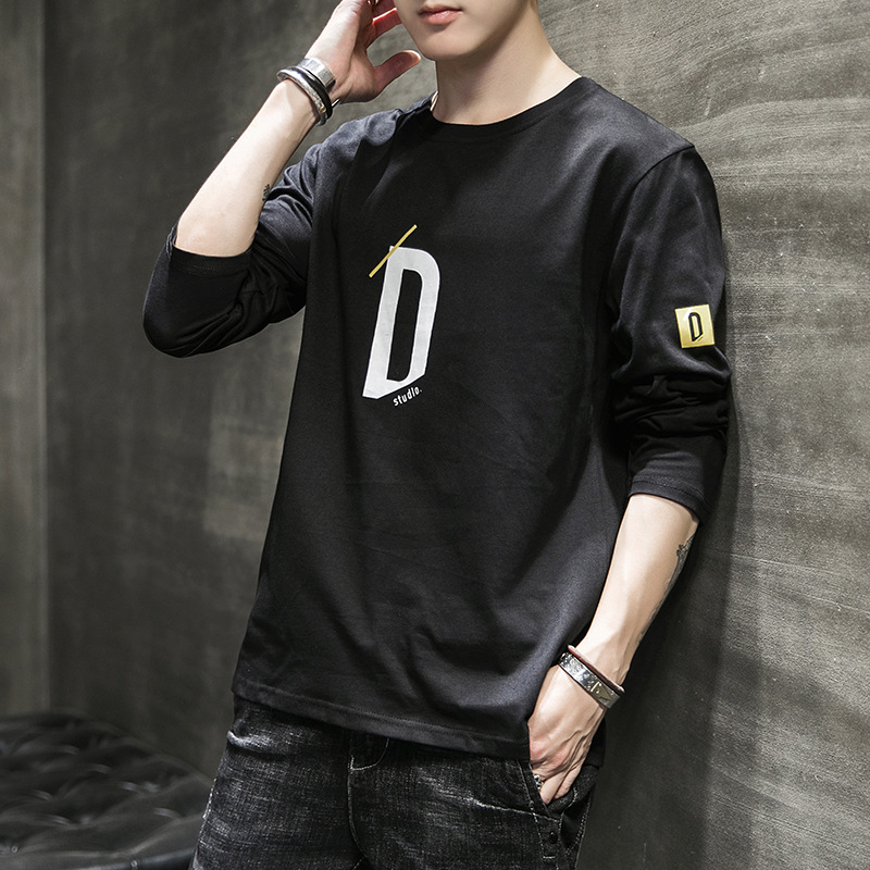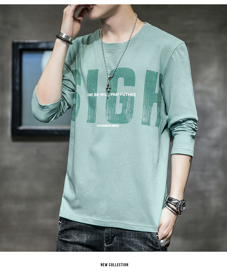 봄과 가을 긴팔 티셔츠 남성복 트렌디 한 캐주얼 라운드 넥 심플 탑 남성용 티셔츠 대외 무역스토어 가기