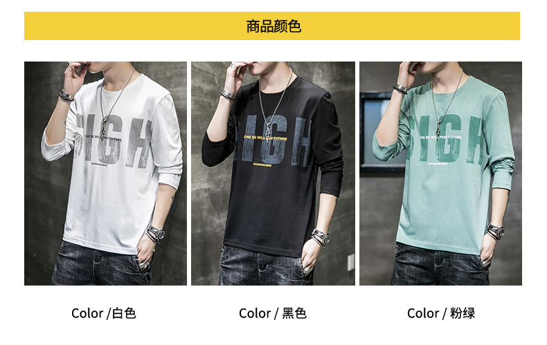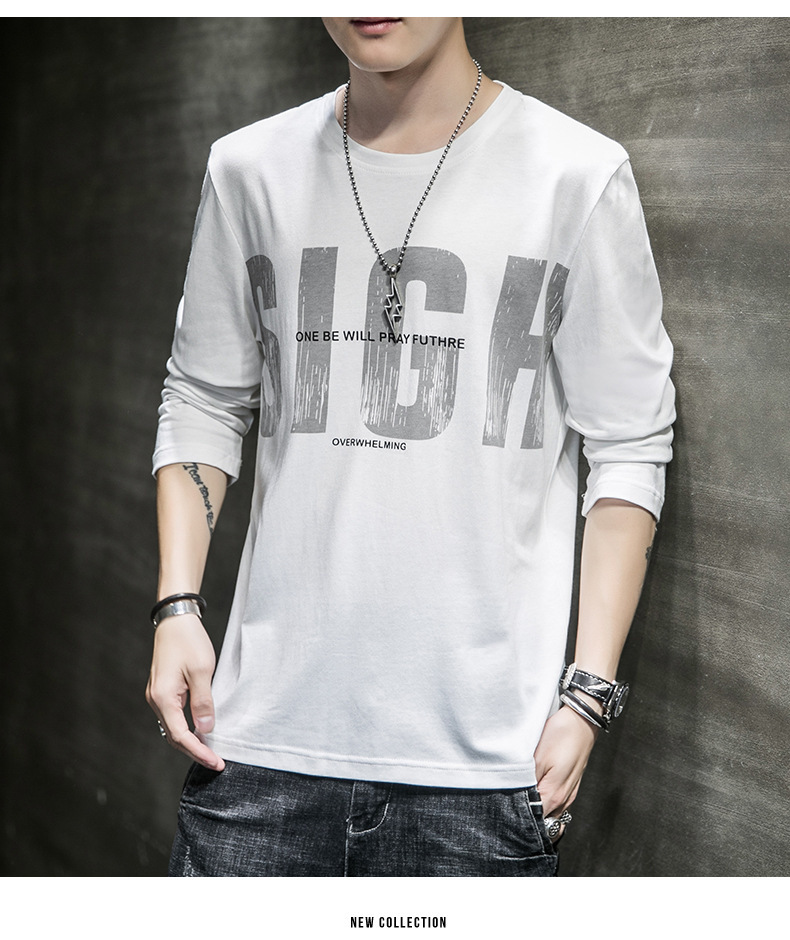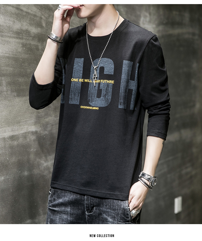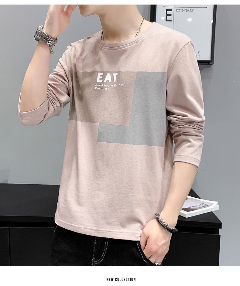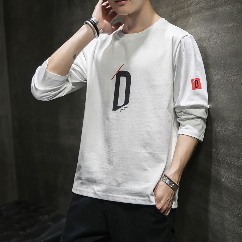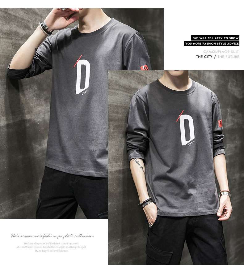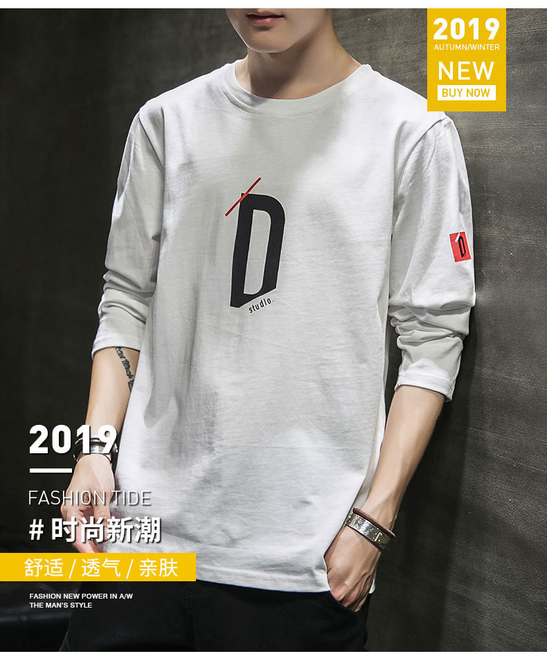 봄과 가을 긴팔 티셔츠 남성복 트렌디 한 캐주얼 라운드 넥 심플 탑 남성용 티셔츠 대외 무역스토어 가기