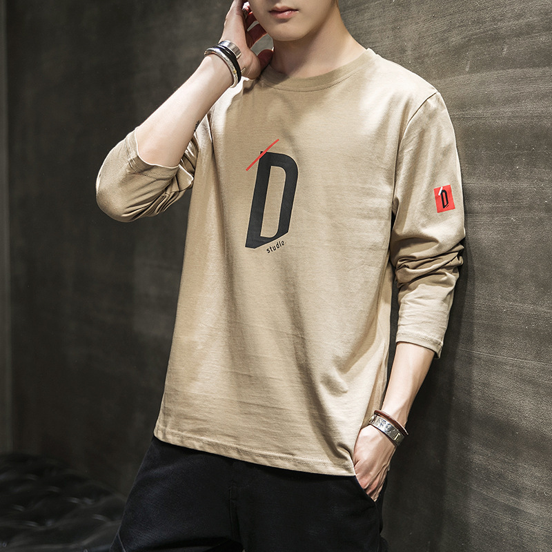 봄과 가을 긴팔 티셔츠 남성복 트렌디 한 캐주얼 라운드 넥 심플 탑 남성용 티셔츠 대외 무역