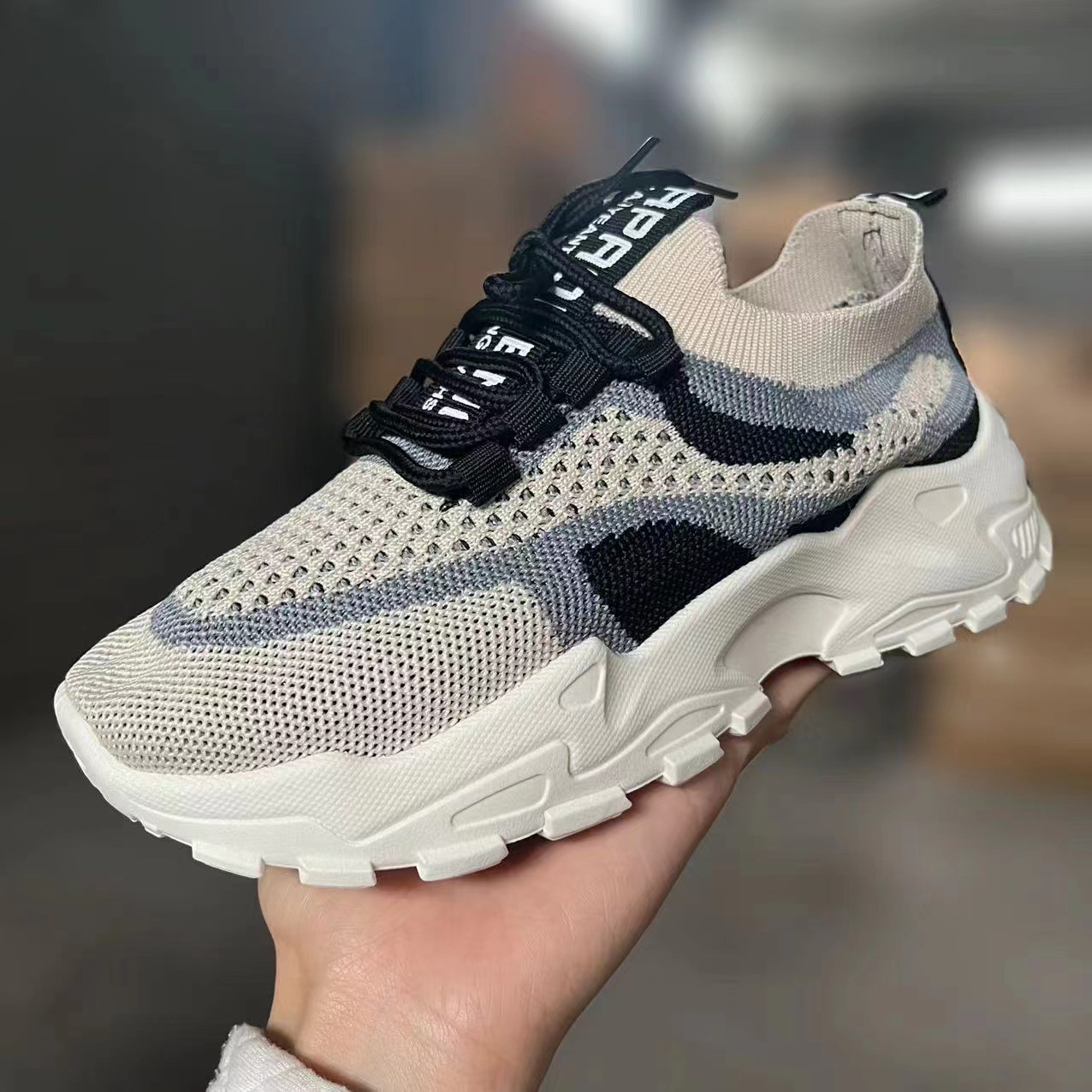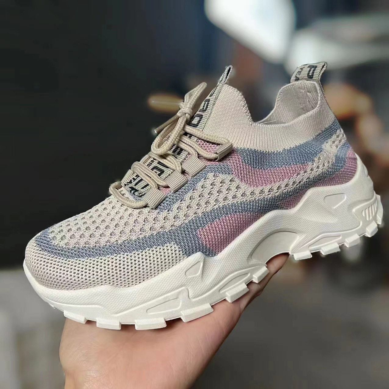 국경을 넘는 새로운 봄/여름 여성의 비행 짠 메쉬 운동화 두꺼운 밑창 경량 캐주얼 신발 운동화 학생 신발스토어 가기