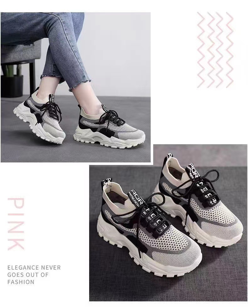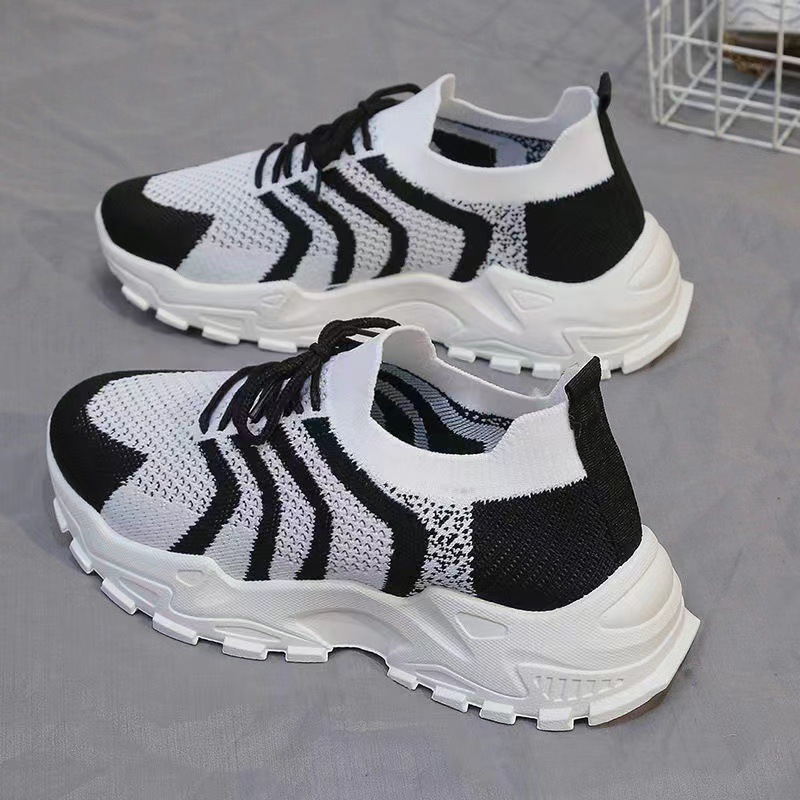 국경을 넘는 새로운 봄/여름 여성의 비행 짠 메쉬 운동화 두꺼운 밑창 경량 캐주얼 신발 운동화 학생 신발