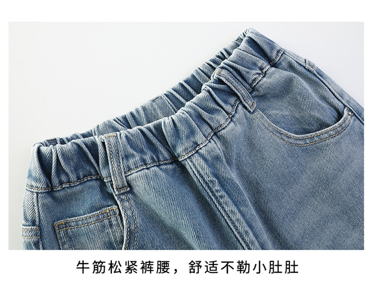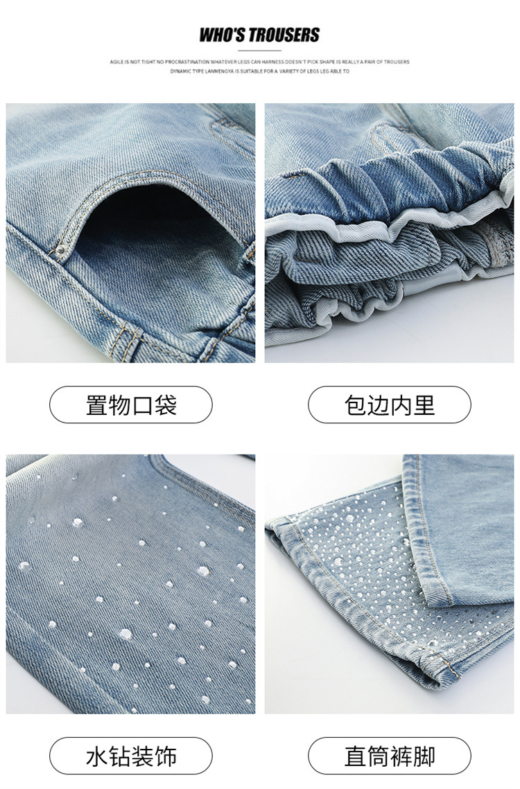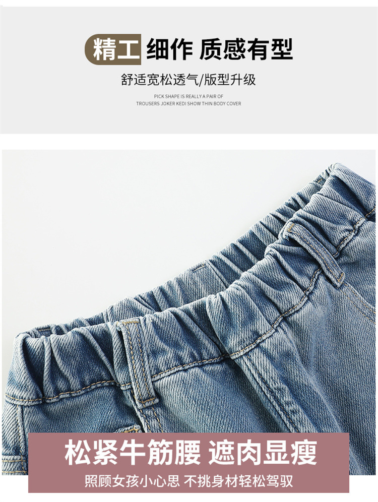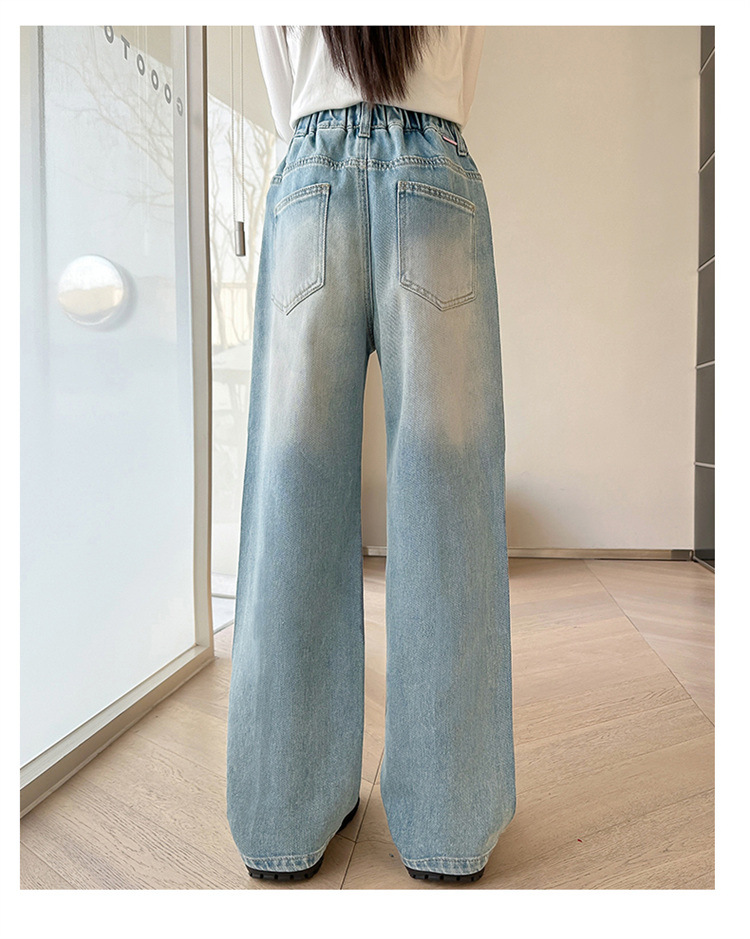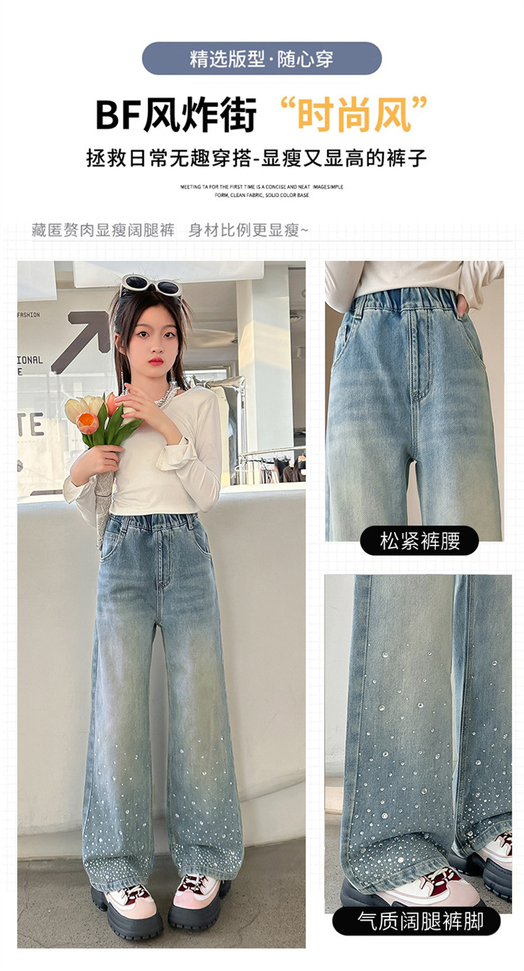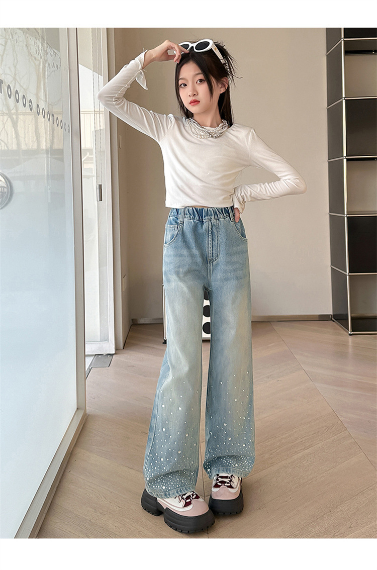 여아용 다이아몬드 장식 데님 팬츠 2025 봄 신상 아동용 봄 가을 루즈핏 와이드 팬츠 캐주얼 만능 스트레이트 팬츠스토어 가기