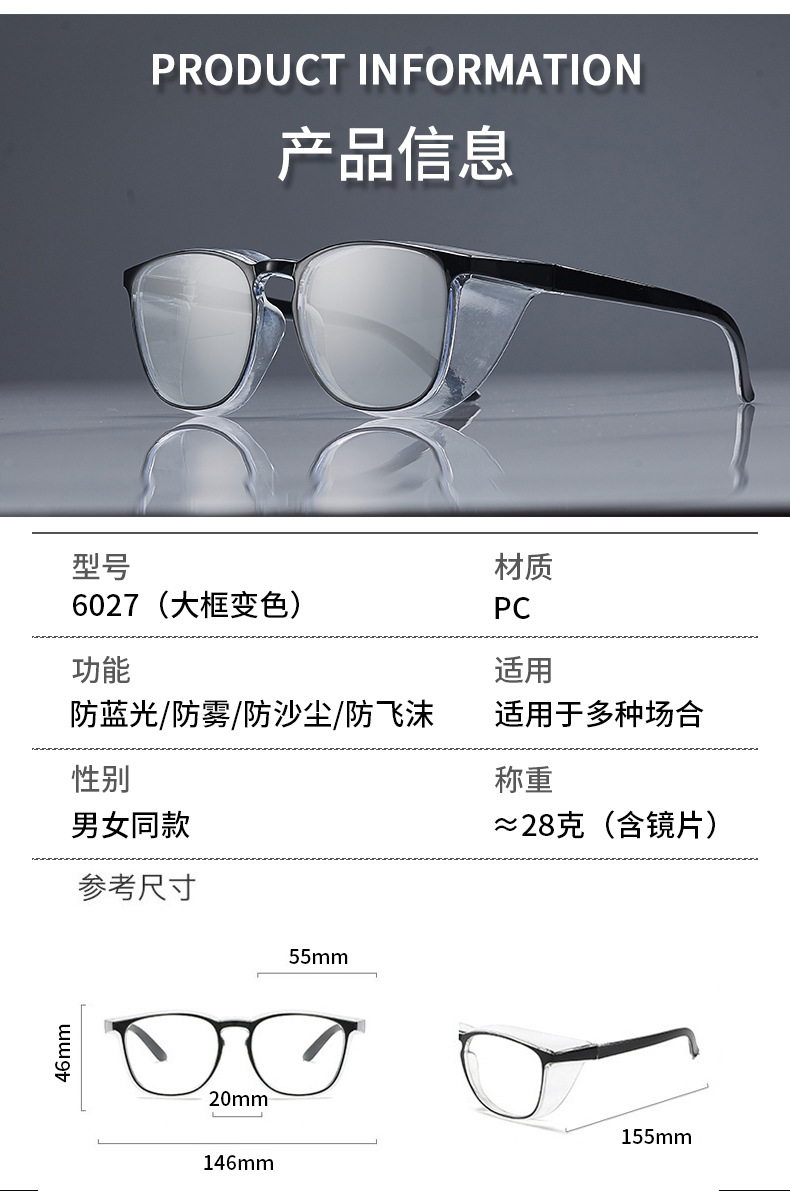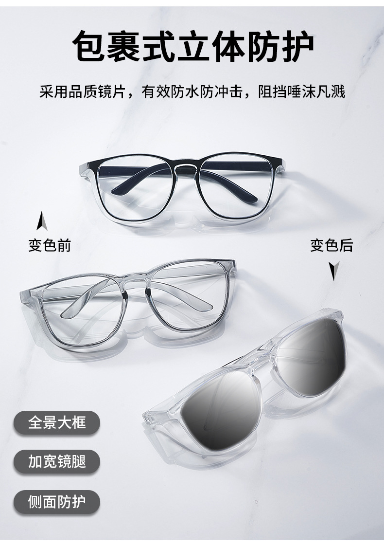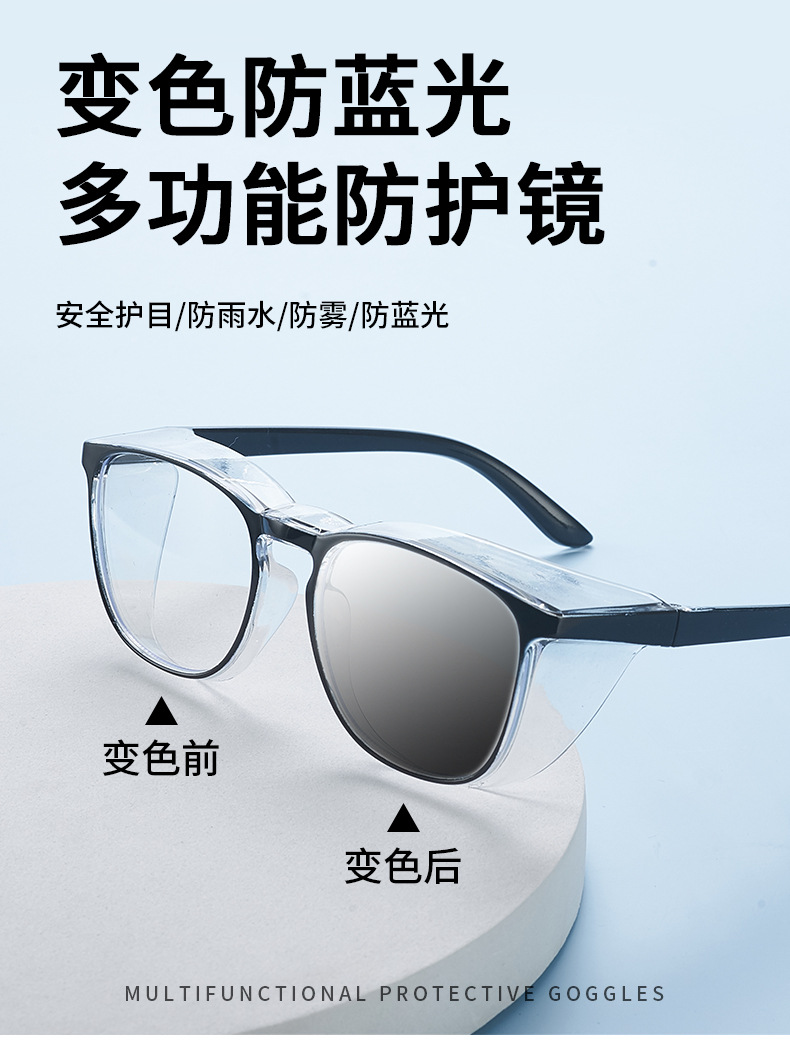 2024 새로운 색상 변경 안티 블루 라이트 완전히 밀폐 된 보호 안경 대형 프레임 꽃가루 먼지 고글스토어 가기