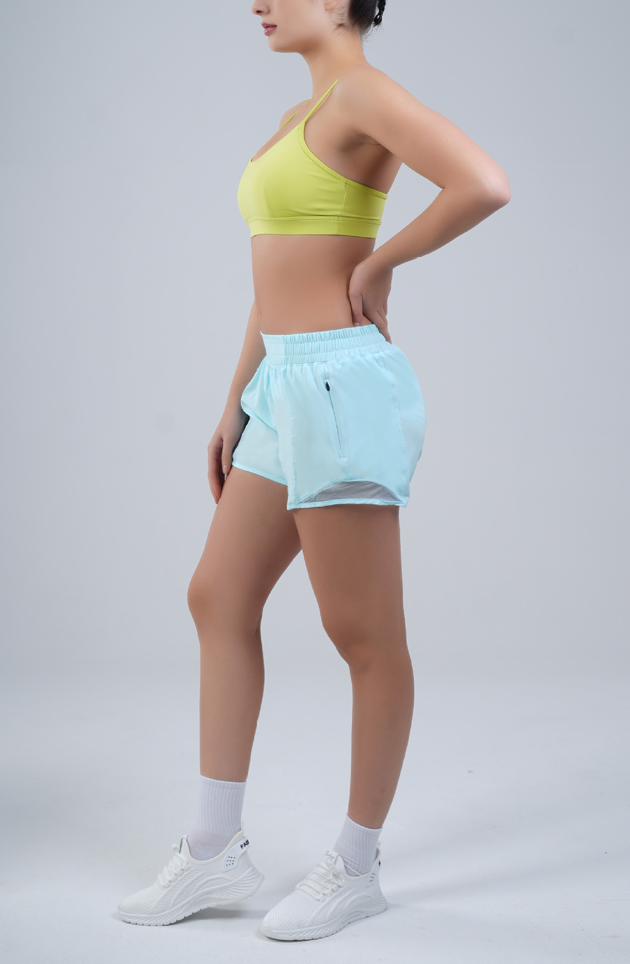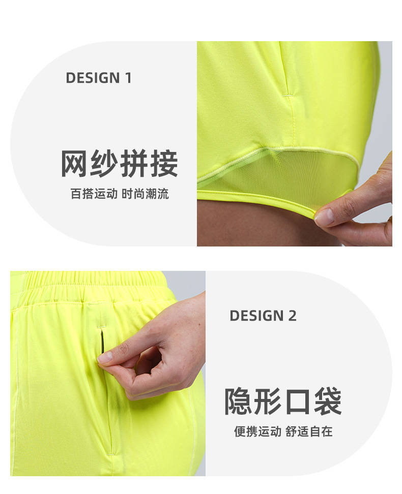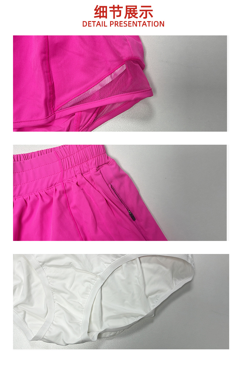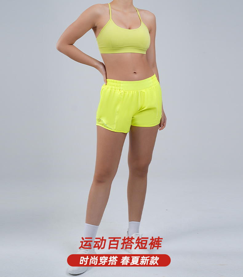 Lulu의 같은 스타일 스포츠 반바지 여성 누드 속건성 메쉬 통기성 가짜 투피스 요가 피트니스 반바지