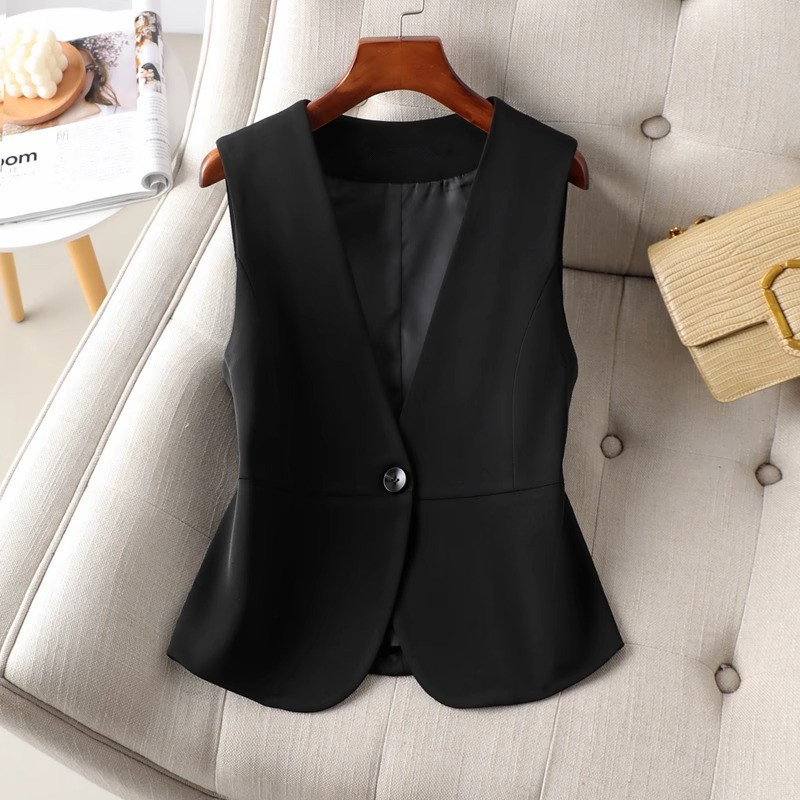 여성 조끼 2026년 신상 블랙 숏 스타일 정장 조끼 여성용 봄 가을 V넥 올해 유행하는 레이어드 조끼스토어 가기