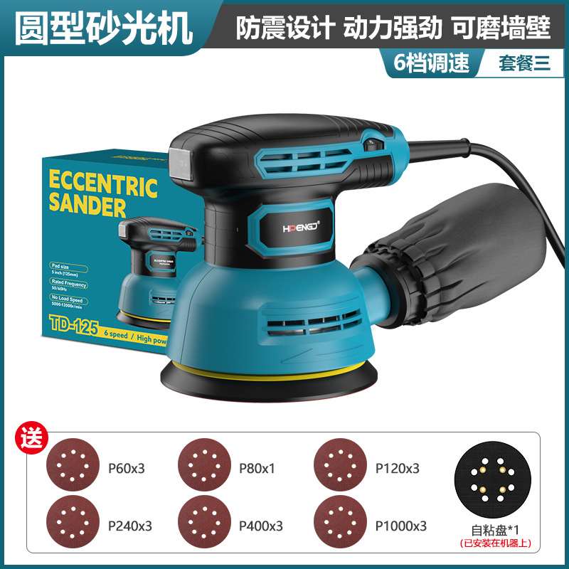 5인치 125 디스크 샌딩 머신, 6단 속도 조절 그라인더, 편심 페인트 광택기, 목공용 전동 목재 가구