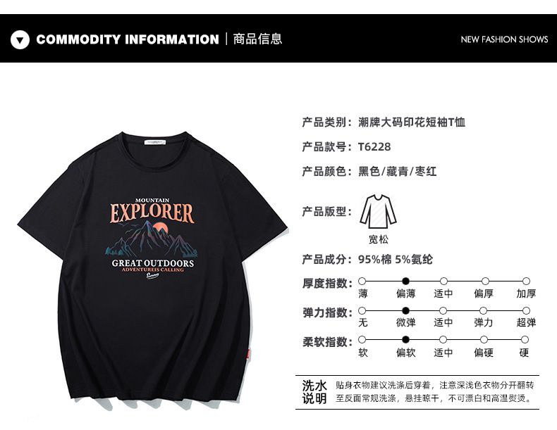 패션 브랜드 플러스 사이즈 프린트 티셔츠 여름 느슨한 플러스 사이즈 편지 프린트 지방 플러스 사이즈 티셔츠 바닥 셔츠 T6228스토어 가기
