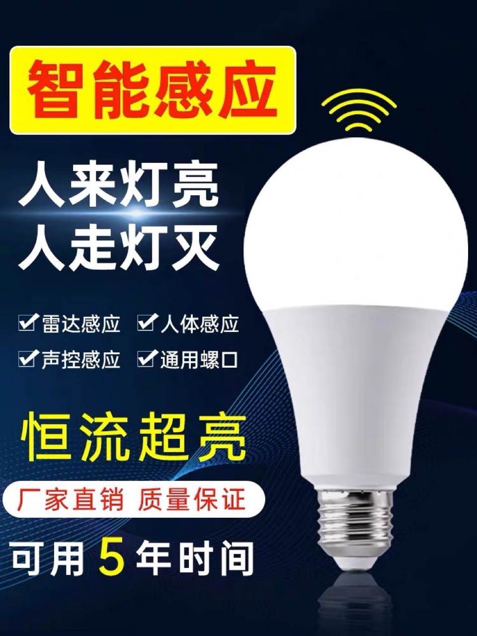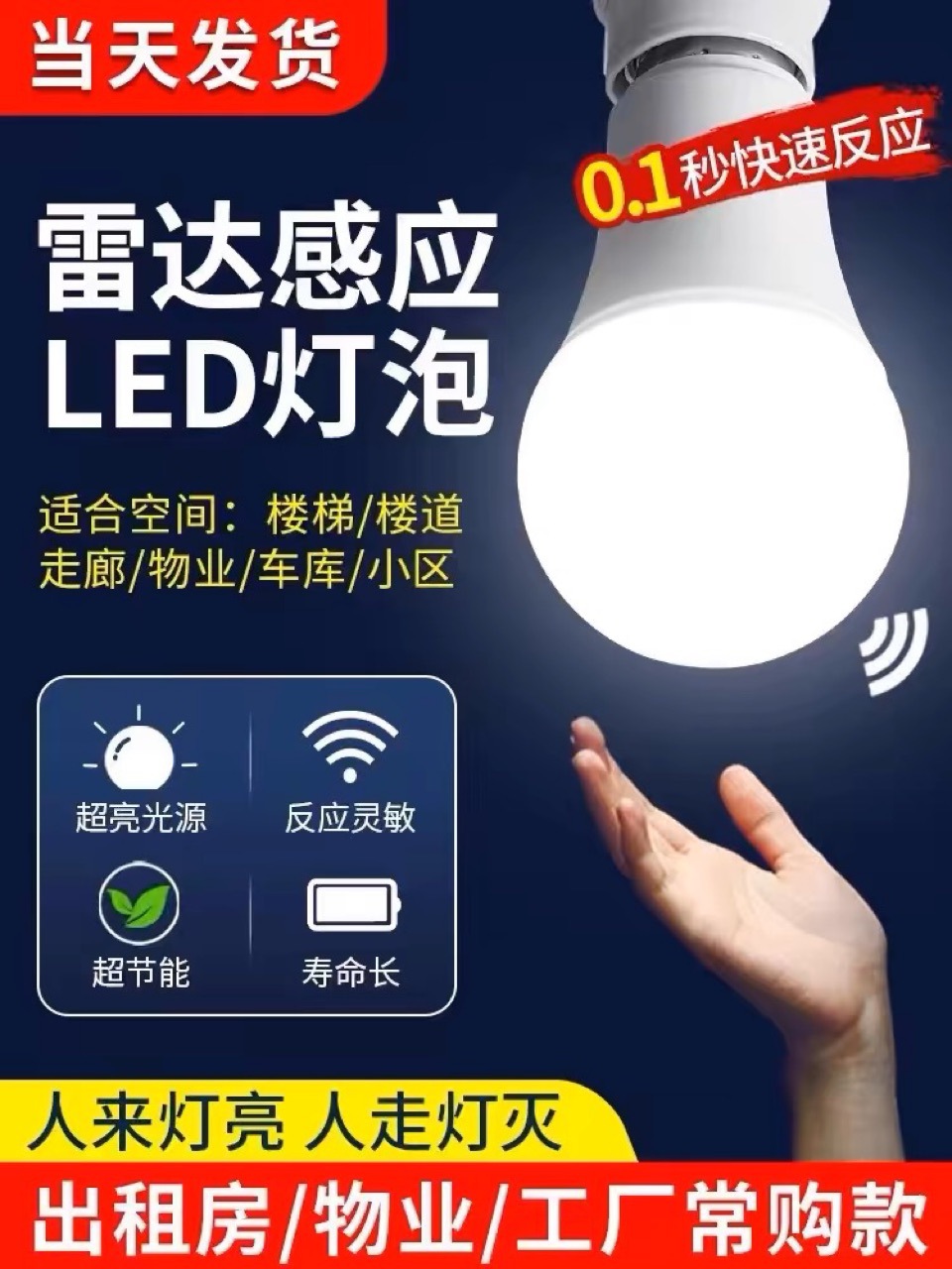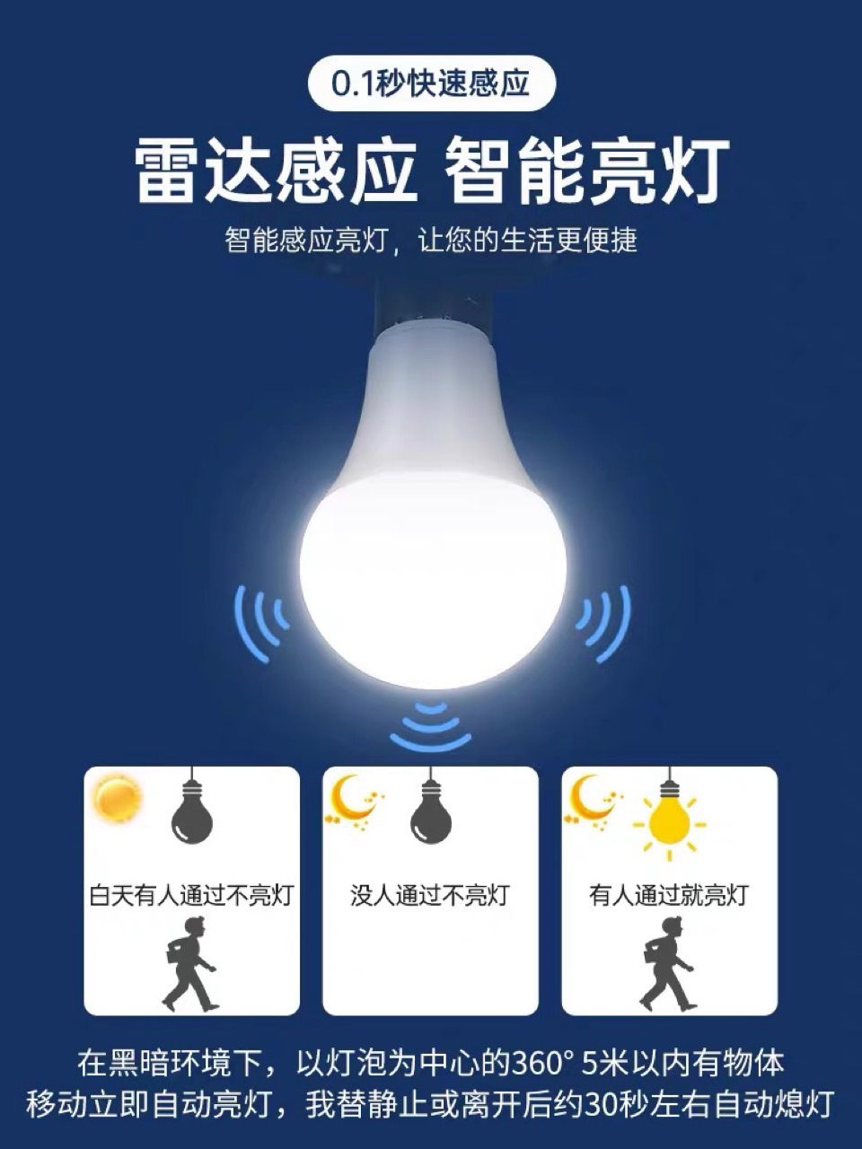 유도 전구 지능형 라이트 온, 라이트 온, 라이트 오프, 레이더 유도, 인체 유도 전구 9W스토어 가기