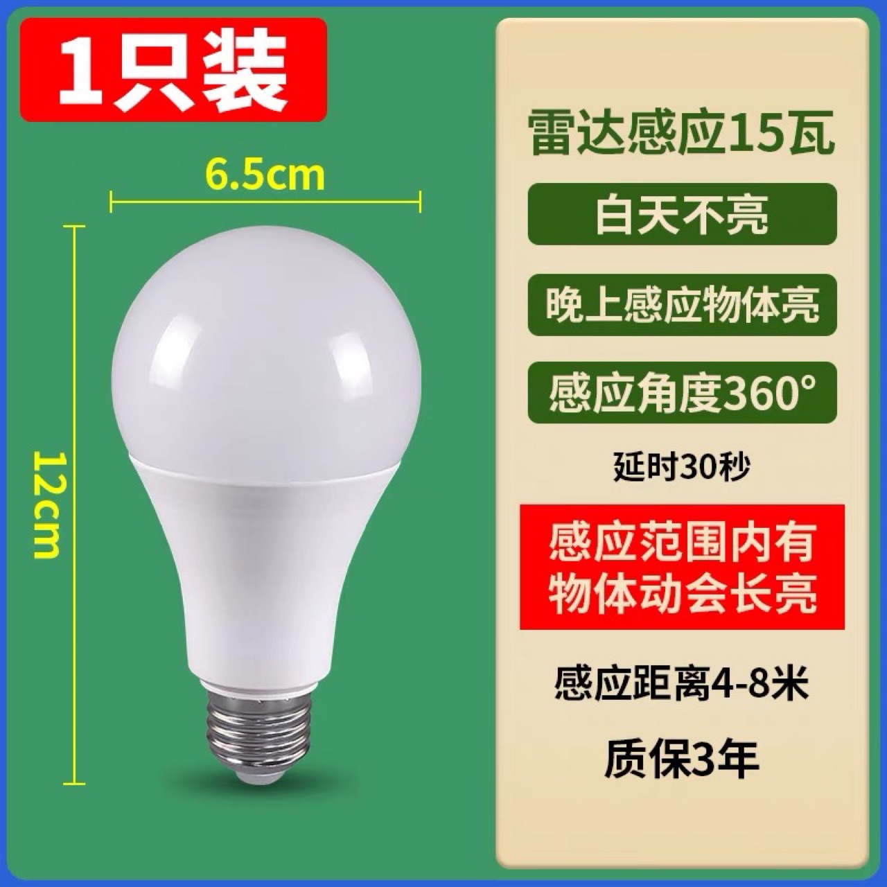 • A65 15W AC110-265V 雷达感应灯泡