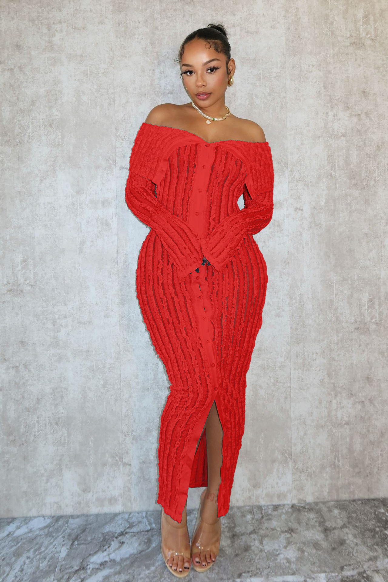 아마존 인기 유럽과 미국의 세련된 우아한 오프 넥 섹시한 엉덩이 치마 디자인 웨이브 패턴 긴 소매 원피스스토어 가기