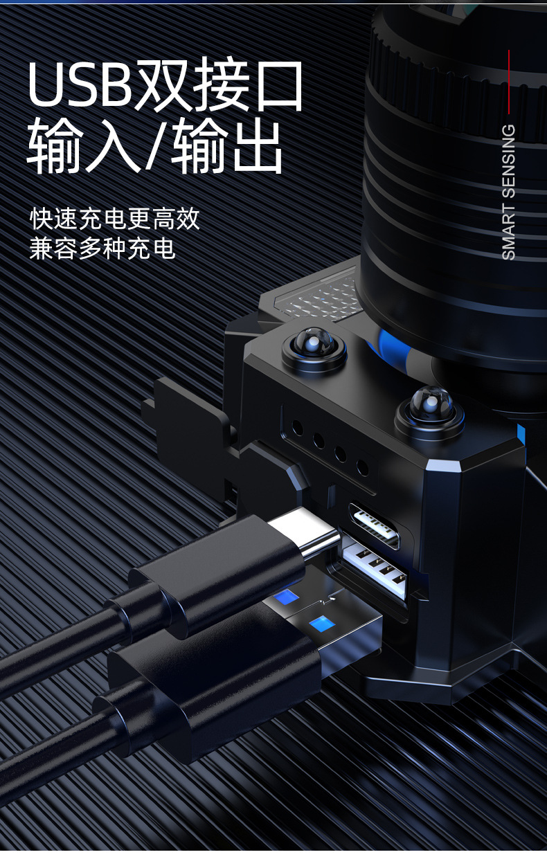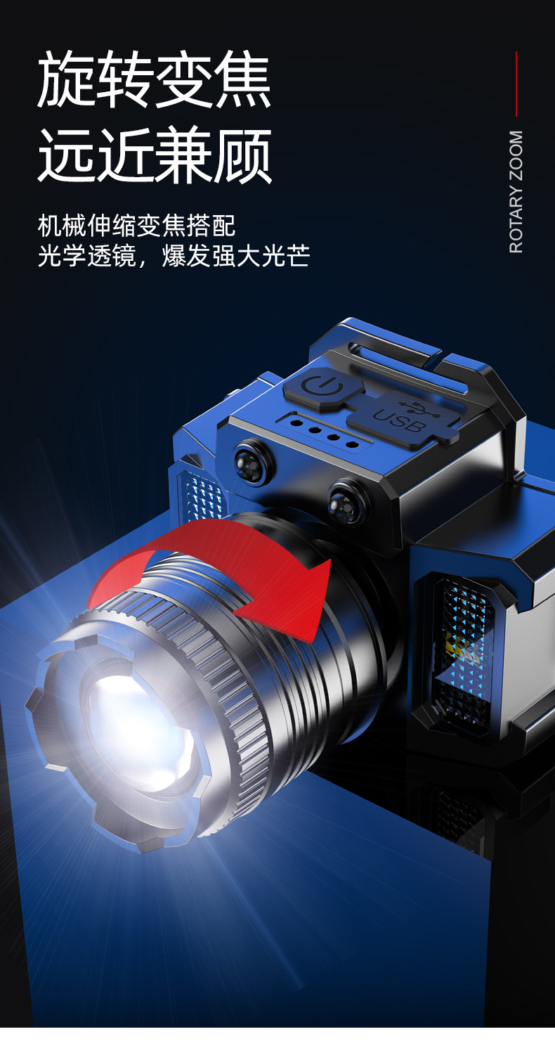 헤드램프, 야외용 충전식 헤드램프, 낚시 및 바다낚시용 특수 줌 기능 광부등, 야간낚시용 방수 강광 손전등