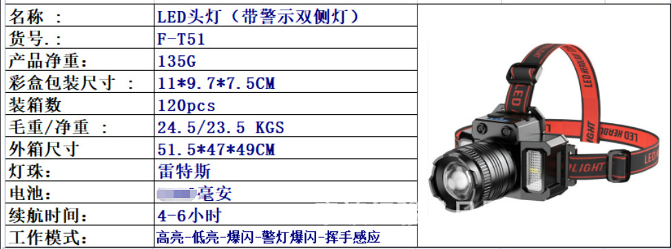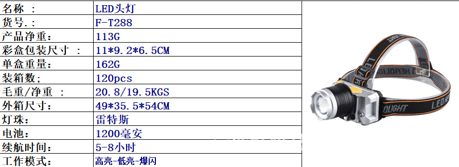 产品型号:T998大光杯头灯