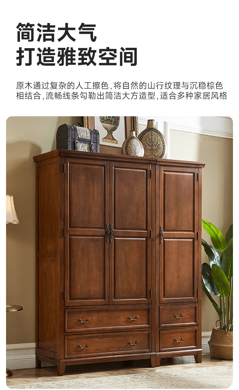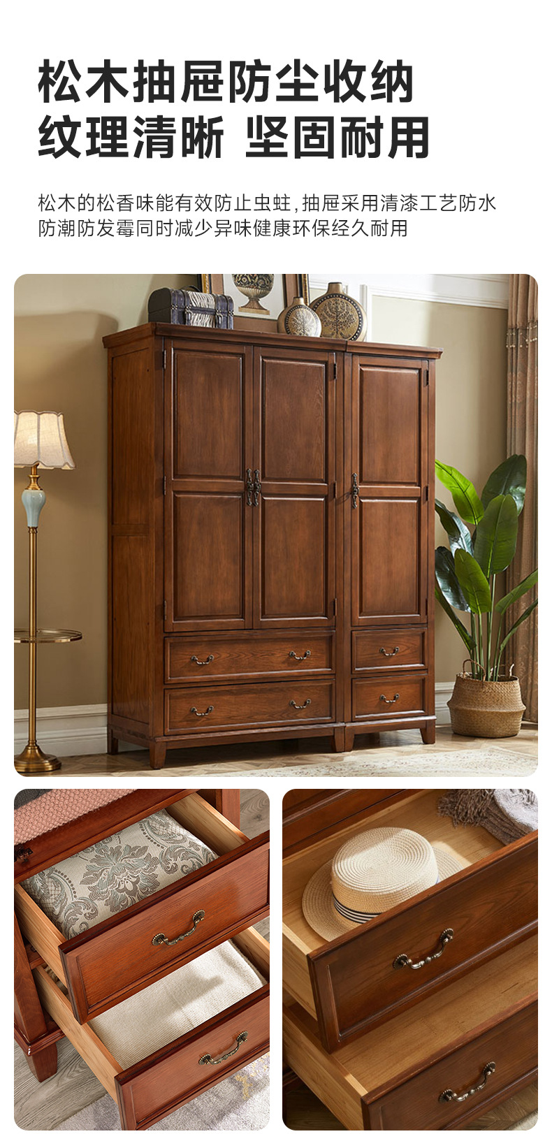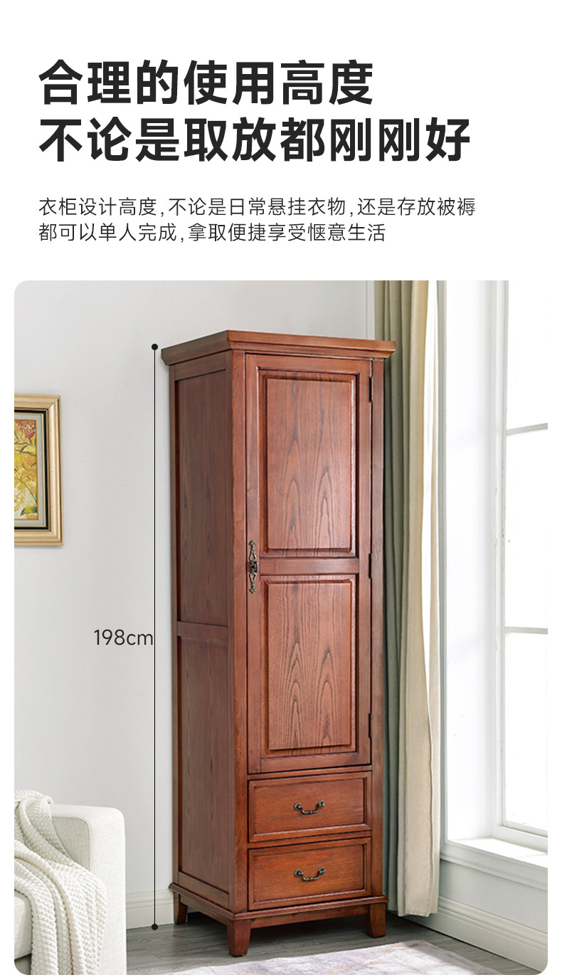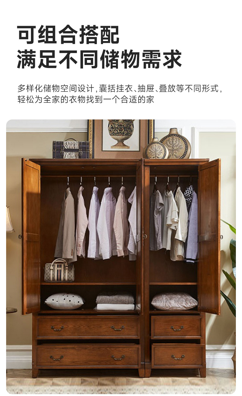 심플한 미국식 원목 옷장, 가정용 침실 소형 아파트용 걸이식 옷장, 싱글도어/더블도어 수납 옷장 세트스토어 가기