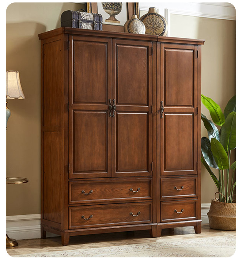 심플한 미국식 원목 옷장, 가정용 침실 소형 아파트용 걸이식 옷장, 싱글도어/더블도어 수납 옷장 세트