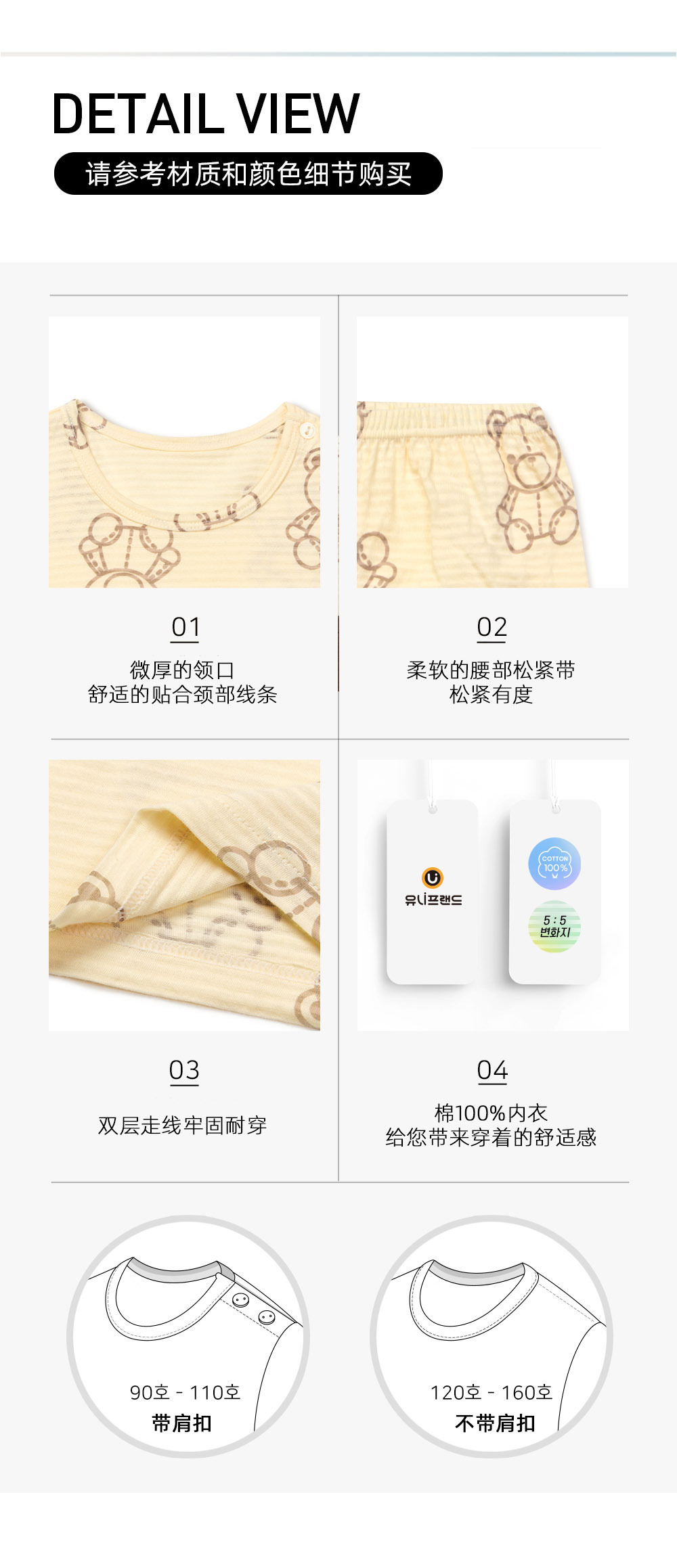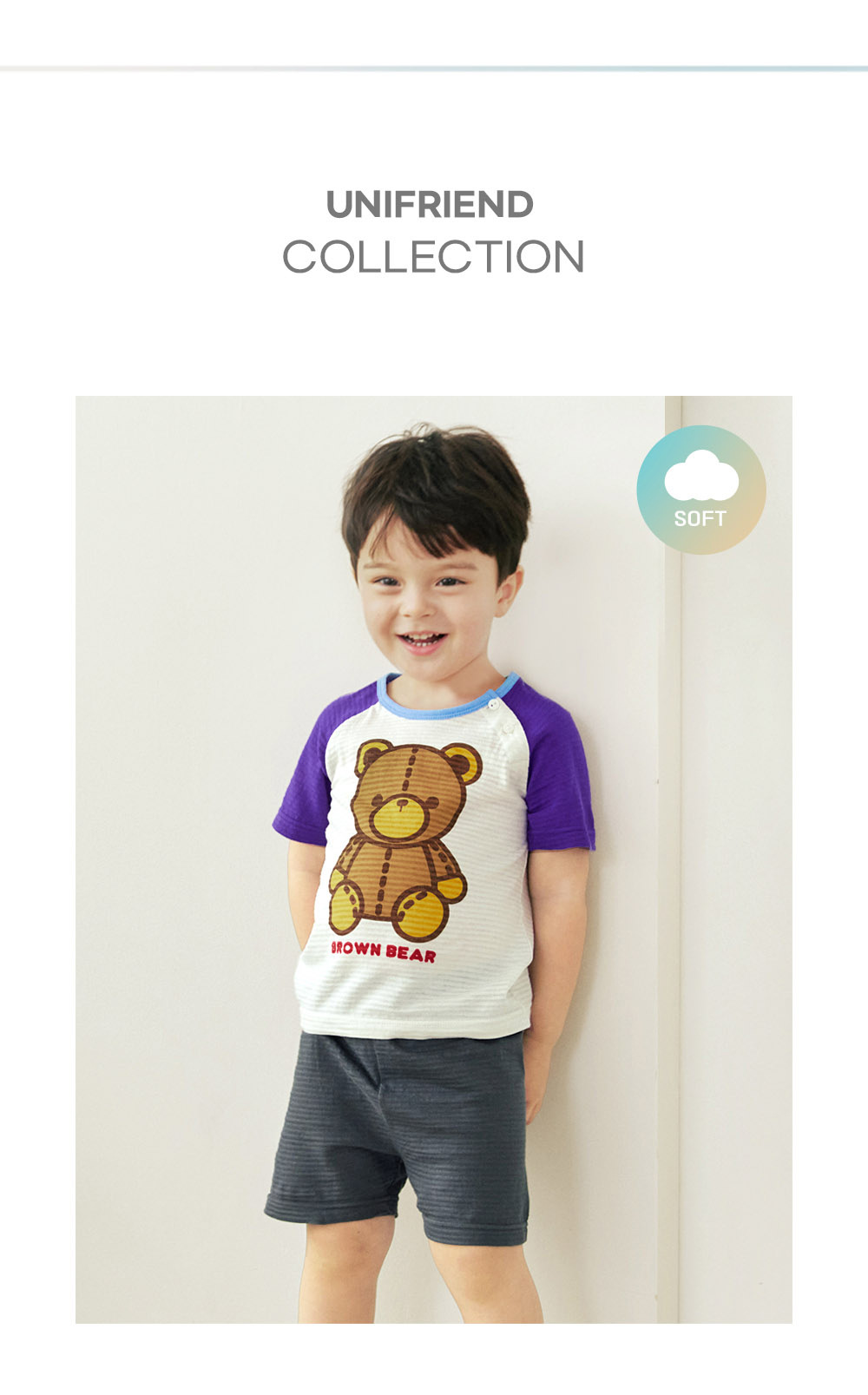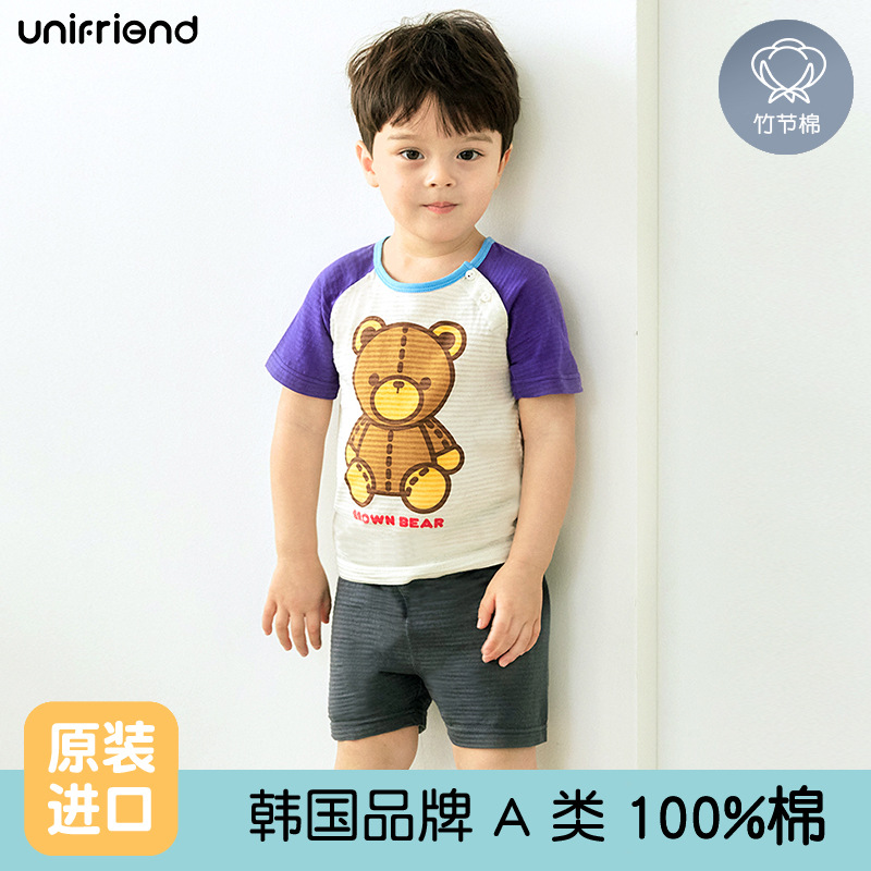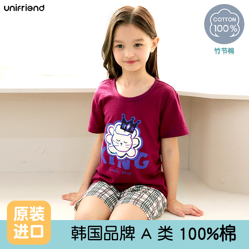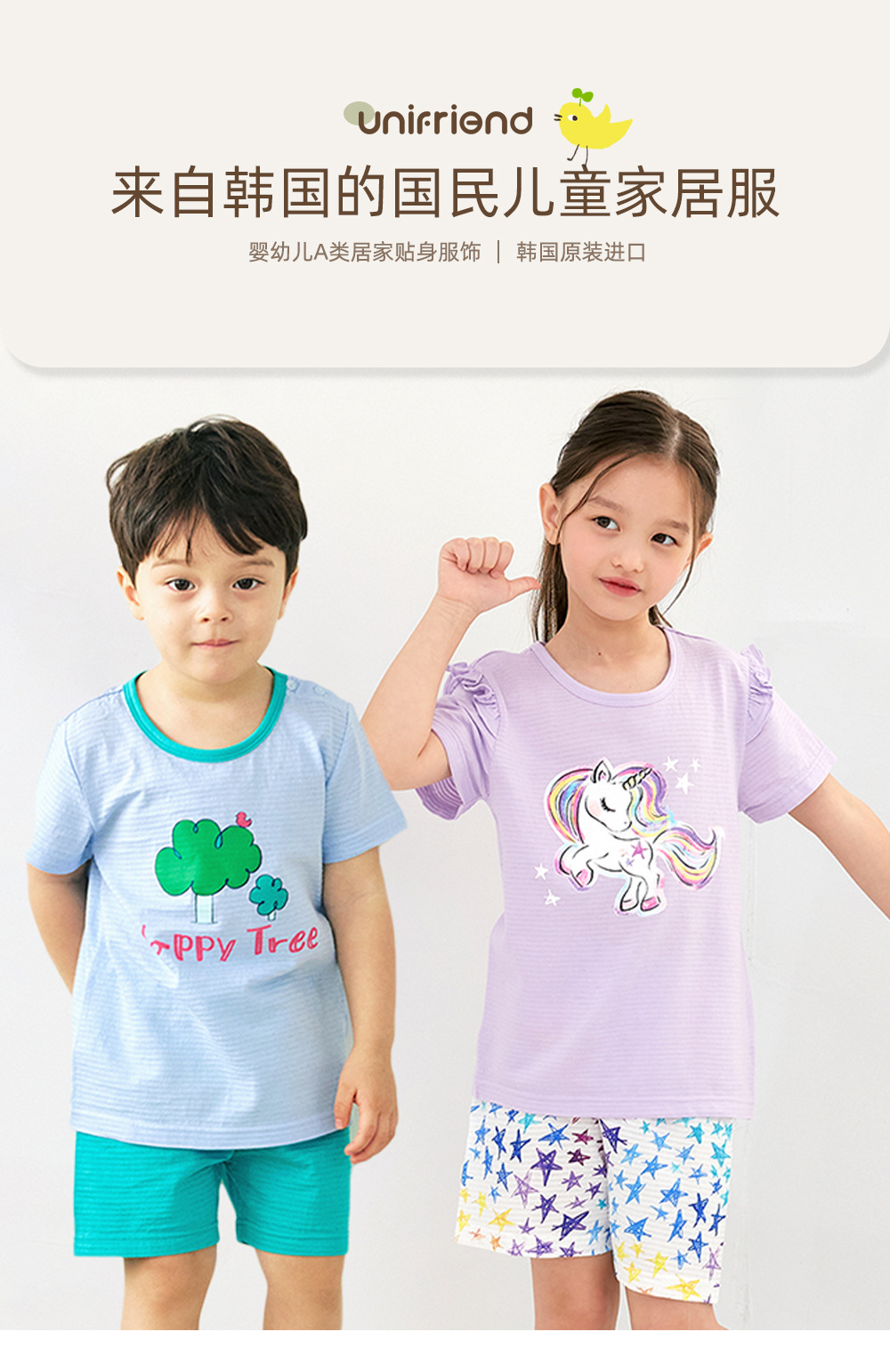 Unifriend 어린이 잠옷 세트 소녀 홈 면화 세트 아기 소년 잠옷 슬러브면 짧은 소매 클래스 A