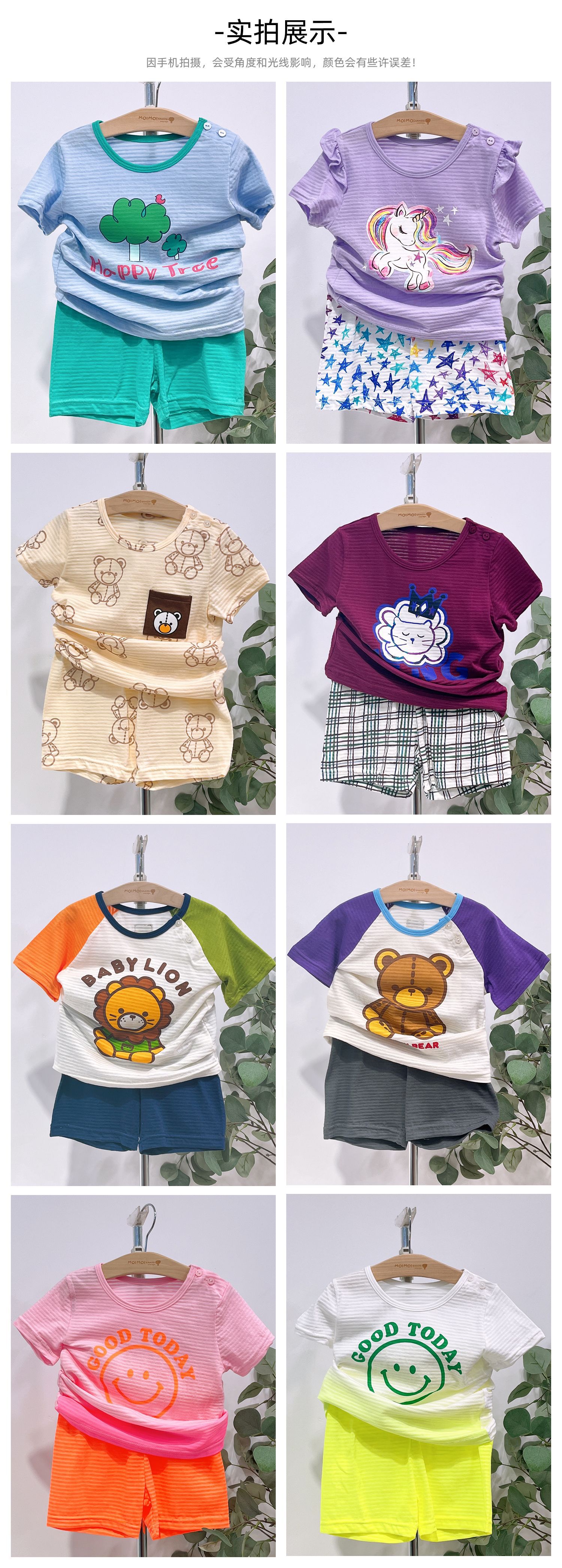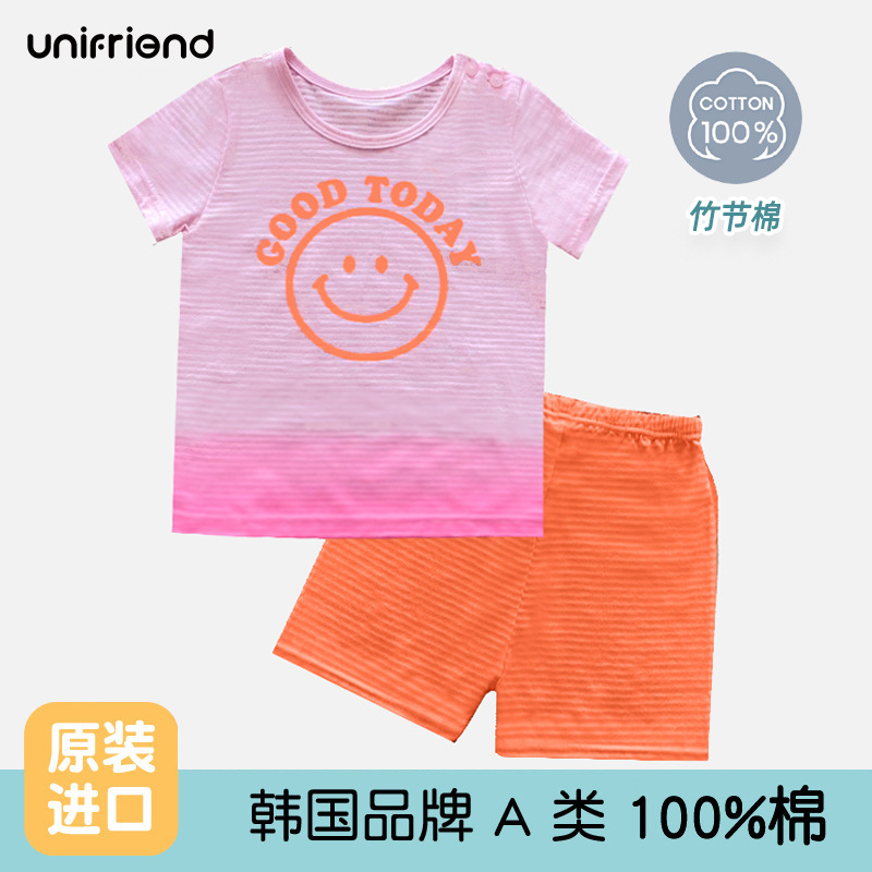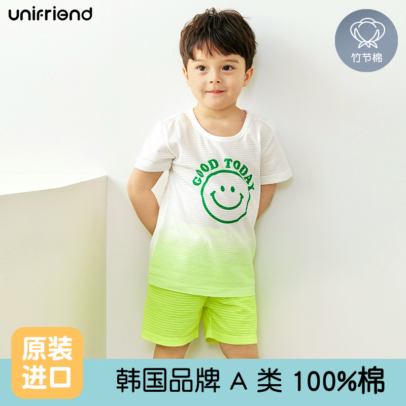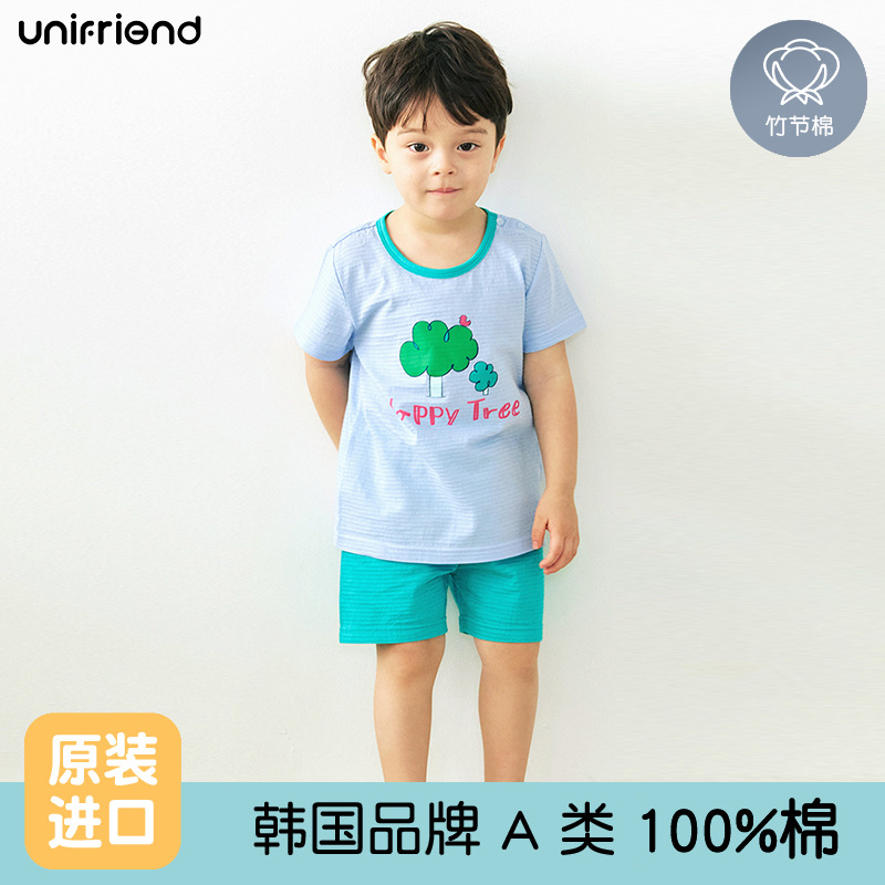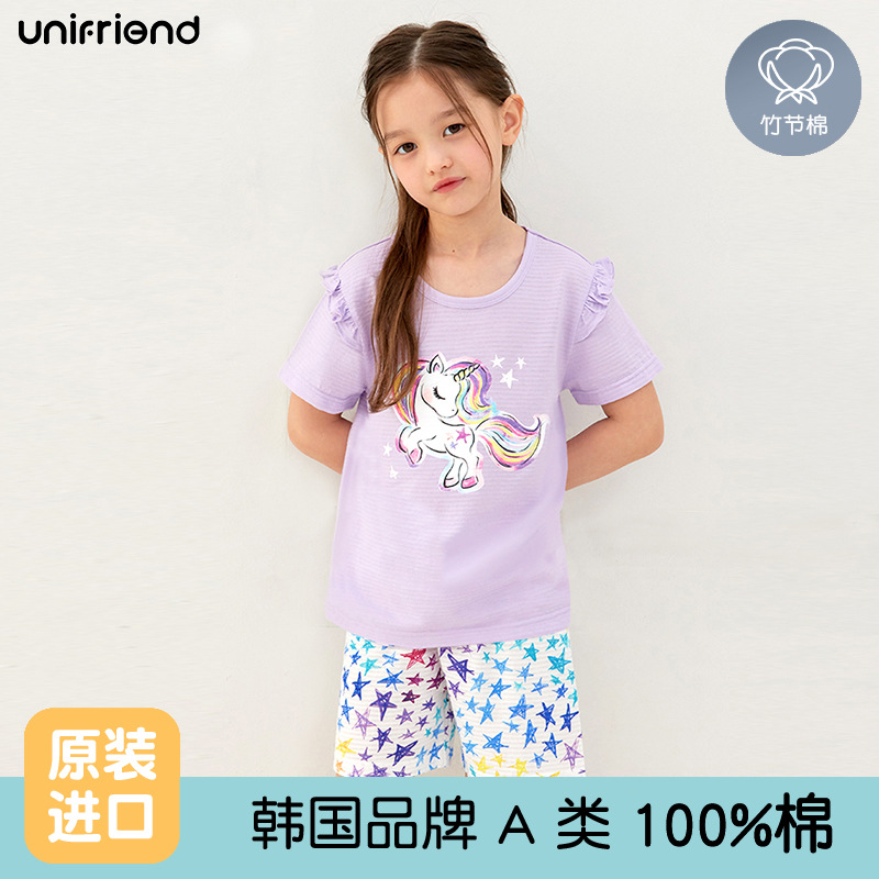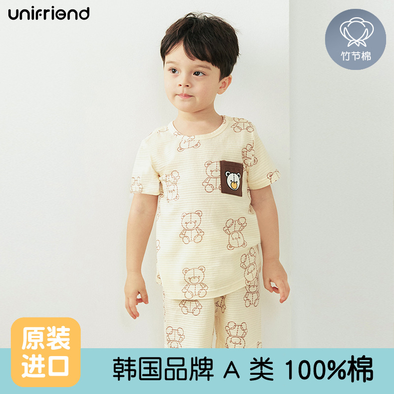Unifriend 어린이 잠옷 세트 소녀 홈 면화 세트 아기 소년 잠옷 슬러브면 짧은 소매 클래스 A스토어 가기
