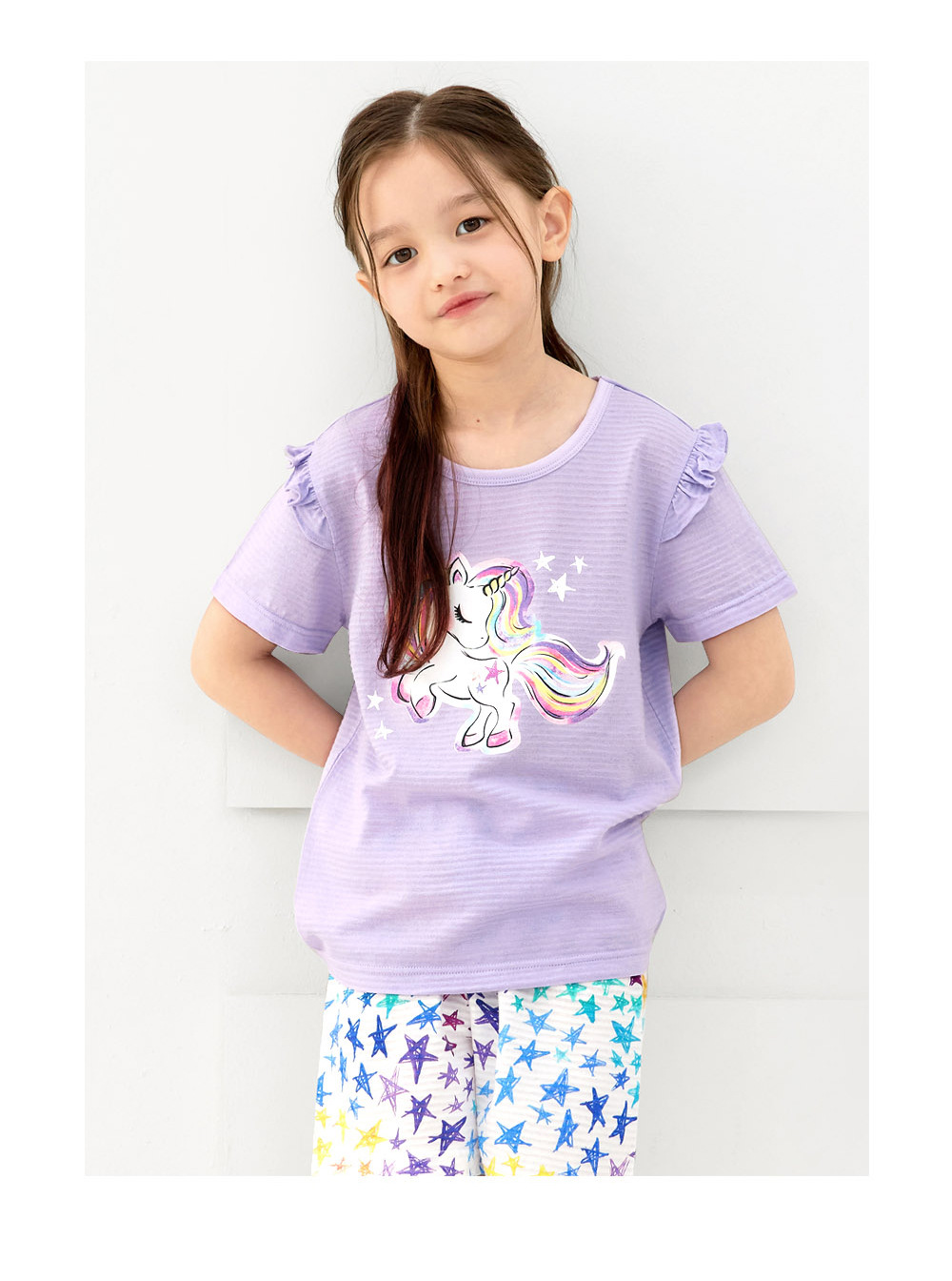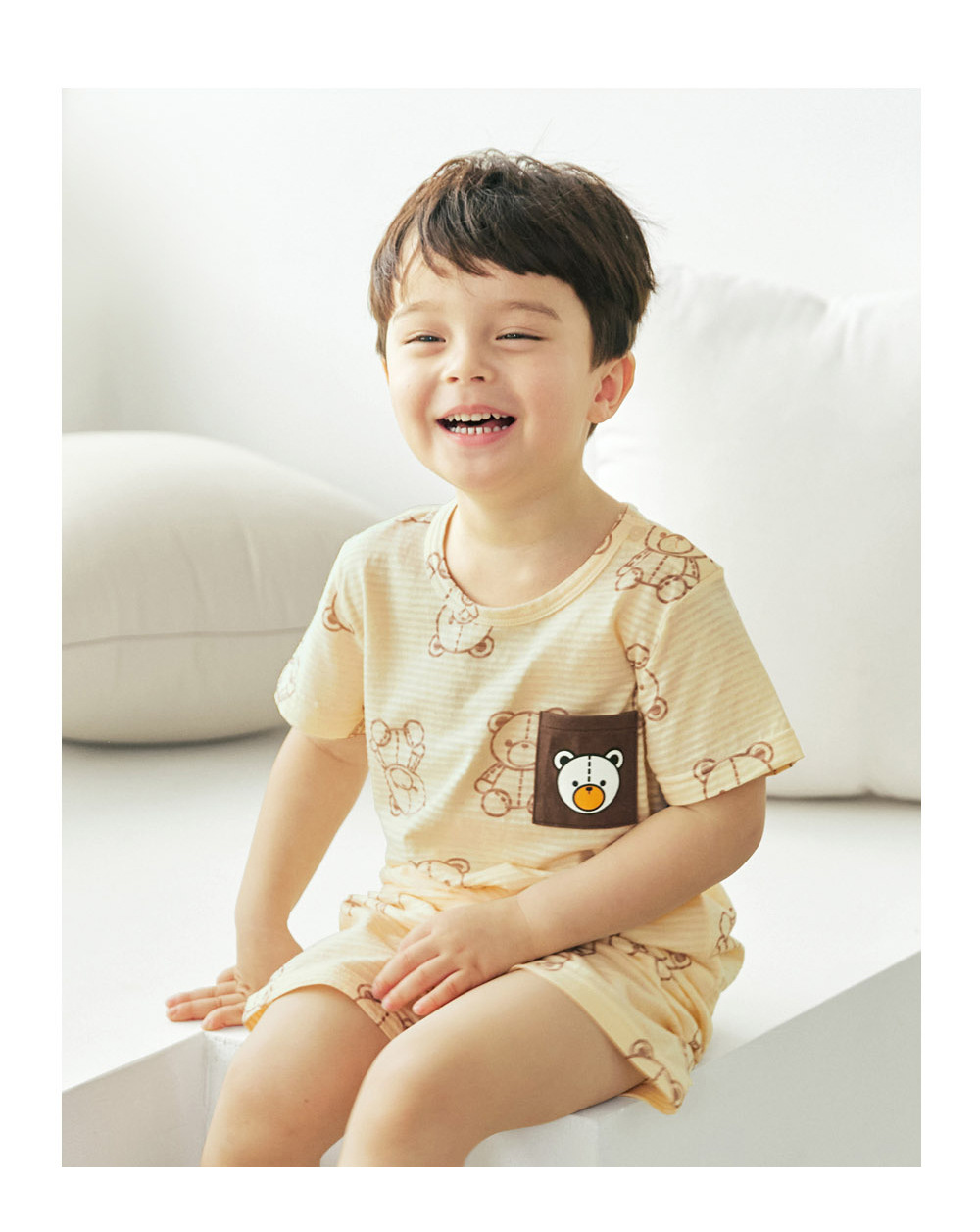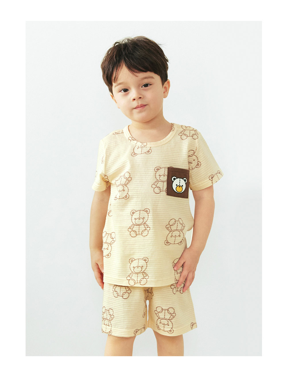 Unifriend 어린이 잠옷 세트 소녀 홈 면화 세트 아기 소년 잠옷 슬러브면 짧은 소매 클래스 A스토어 가기