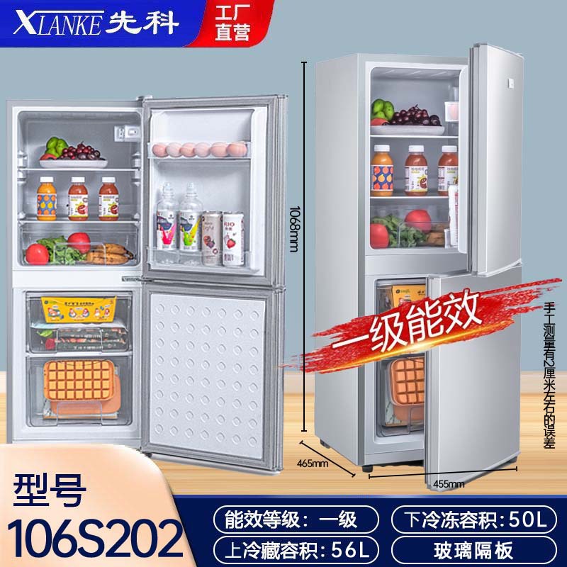 Xianke 냉장고 소형 가정용 임대 사무실 양문형 냉장고 1급 에너지 효율 대용량 냉장고