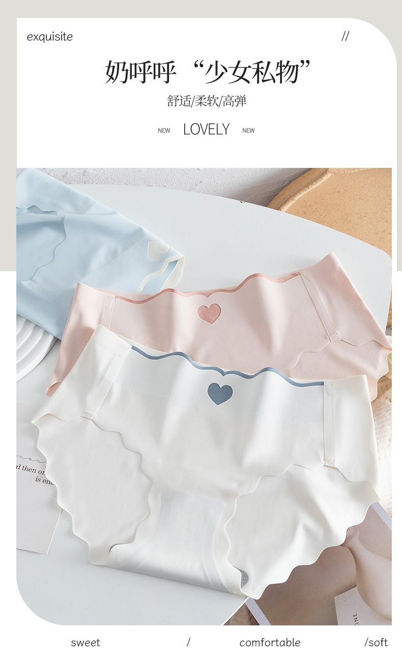 일본 소녀 원활한 얼음 실크 속옷 달콤하고 귀여운 중간 허리 팬티 사랑 순수 코튼 가랑이 대형 여름 얇은 스타일스토어 가기