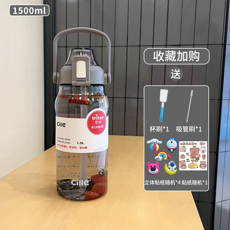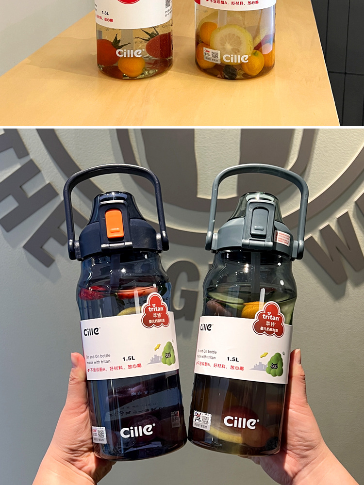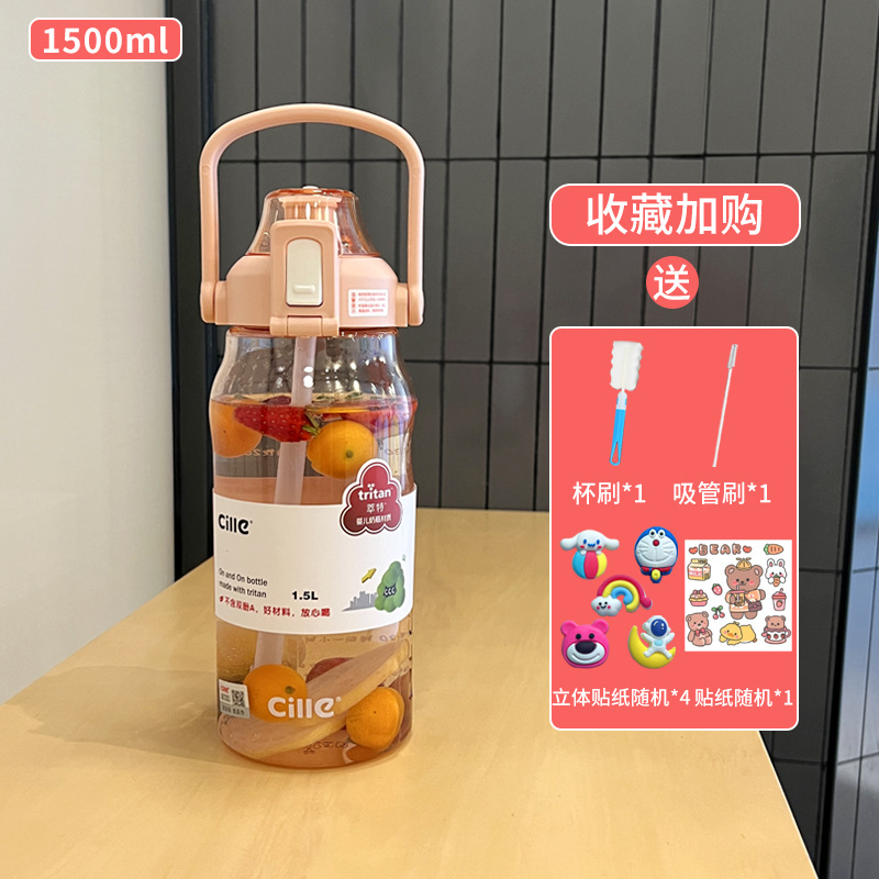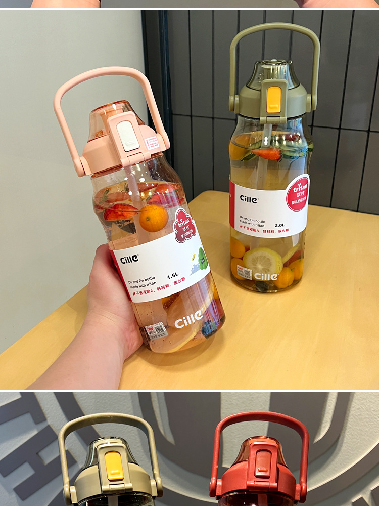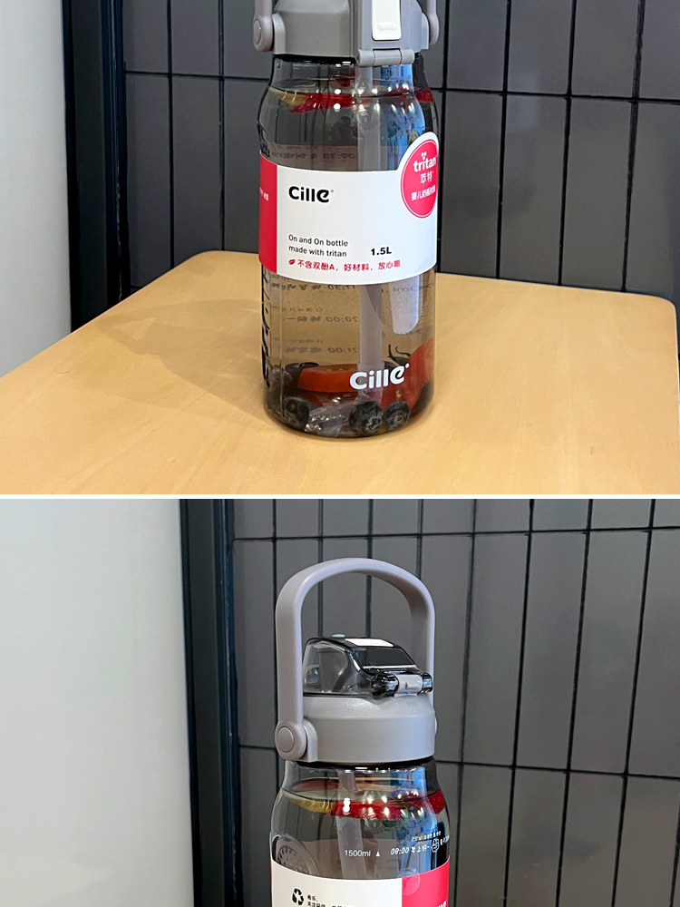 【국내제품】cille 대용량 물병 여성용 예쁜 디자인 인터넷 유명인 학생 스포츠 물병 빨대컵 스페이스 컵스토어 가기