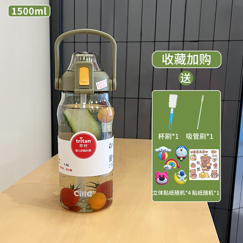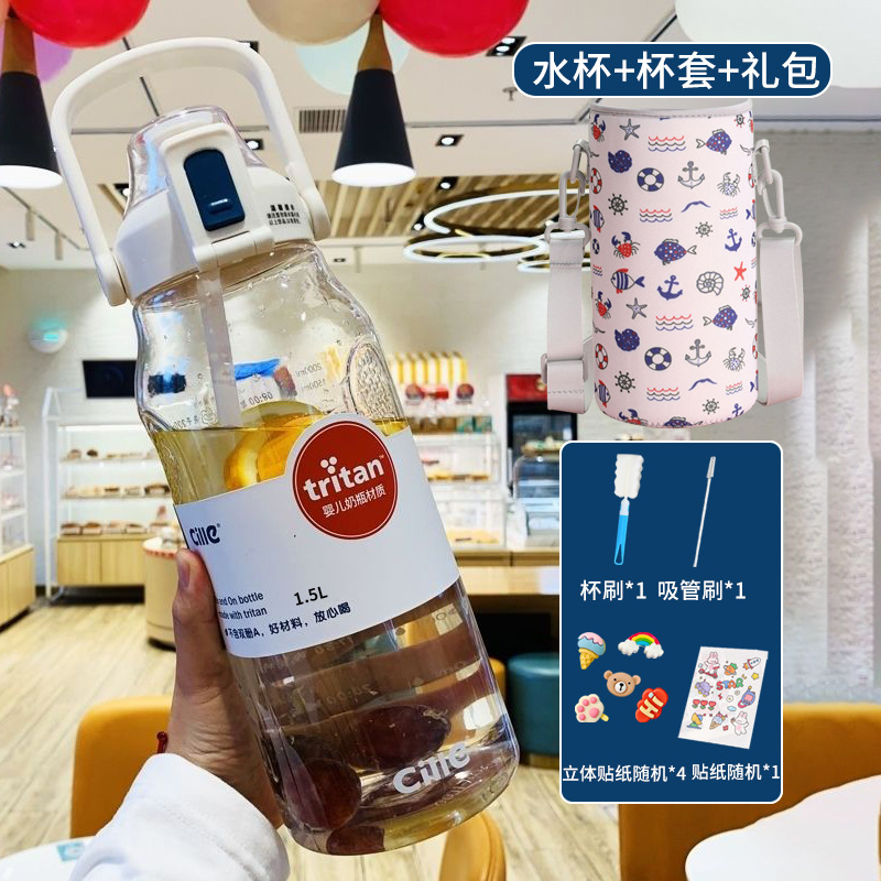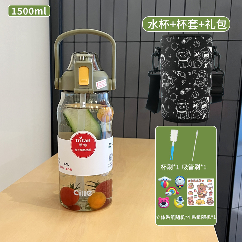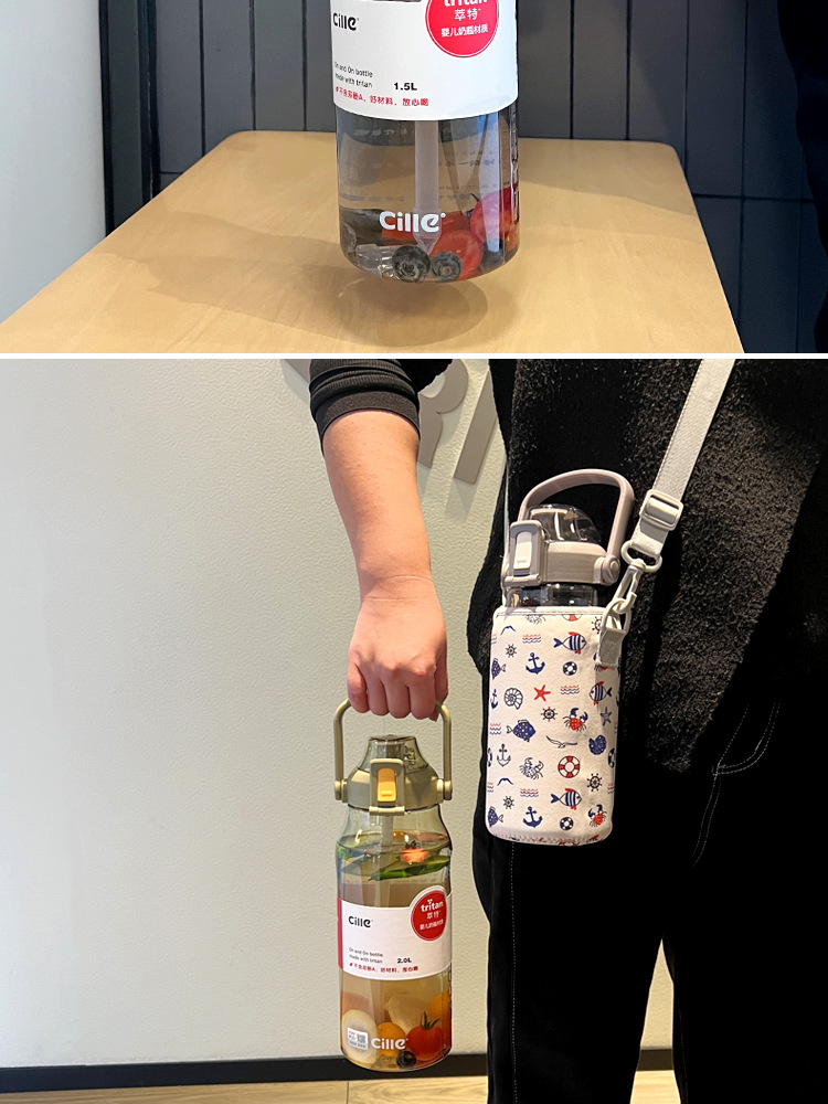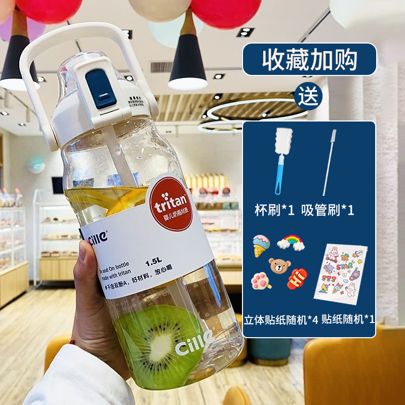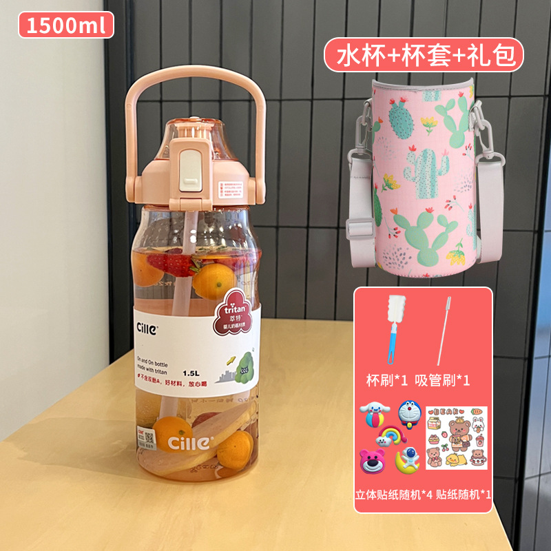 【국내제품】cille 대용량 물병 여성용 예쁜 디자인 인터넷 유명인 학생 스포츠 물병 빨대컵 스페이스 컵스토어 가기